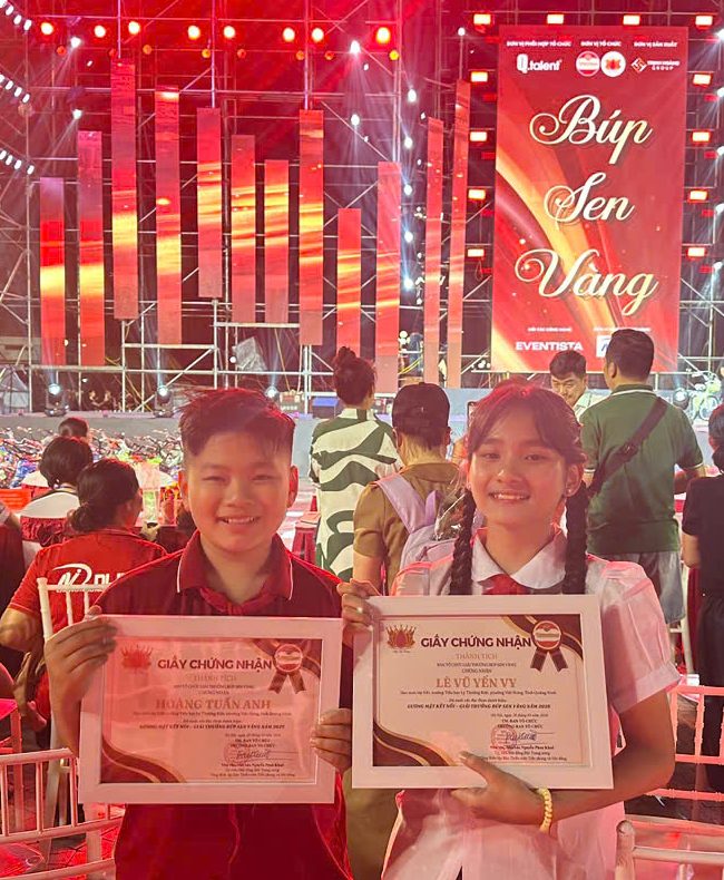 Vừa qua, Trường Tiểu học Lý Thường Kiệt vô cùng tự hào khi có hai em học sinh xuất sắc được vinh danh tại Giải thưởng “Búp Sen Vàng” cấp Quốc gia. Xin nhiệt liệt chúc mừng em Lê Vũ Yến Vy (tập thể lớp 5A1) và em Hoàng Tuấn...