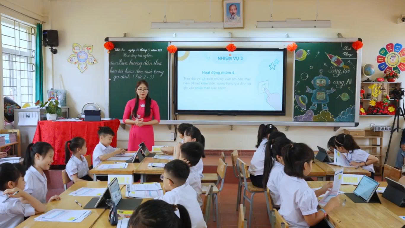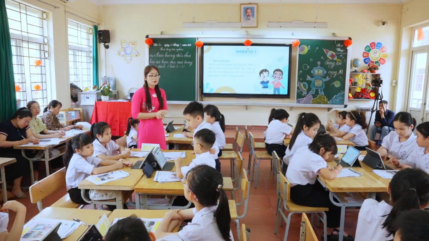 🔹 Hành trình tiếp cận công nghệ từ sớm Việc đưa AI vào không gian lớp học Tiểu học không chỉ là một bước tiến về mặt công nghệ mà còn là nỗ lực của ban giám hiệu cùng các thầy cô giáo nhằm trang bị cho các em những kỹ năng của thế kỷ 21. Những khái niệm tưởng chừng phức tạp đã được các thầy cô “mềm hóa”, biến thành các bài học sinh động, gần gũi.