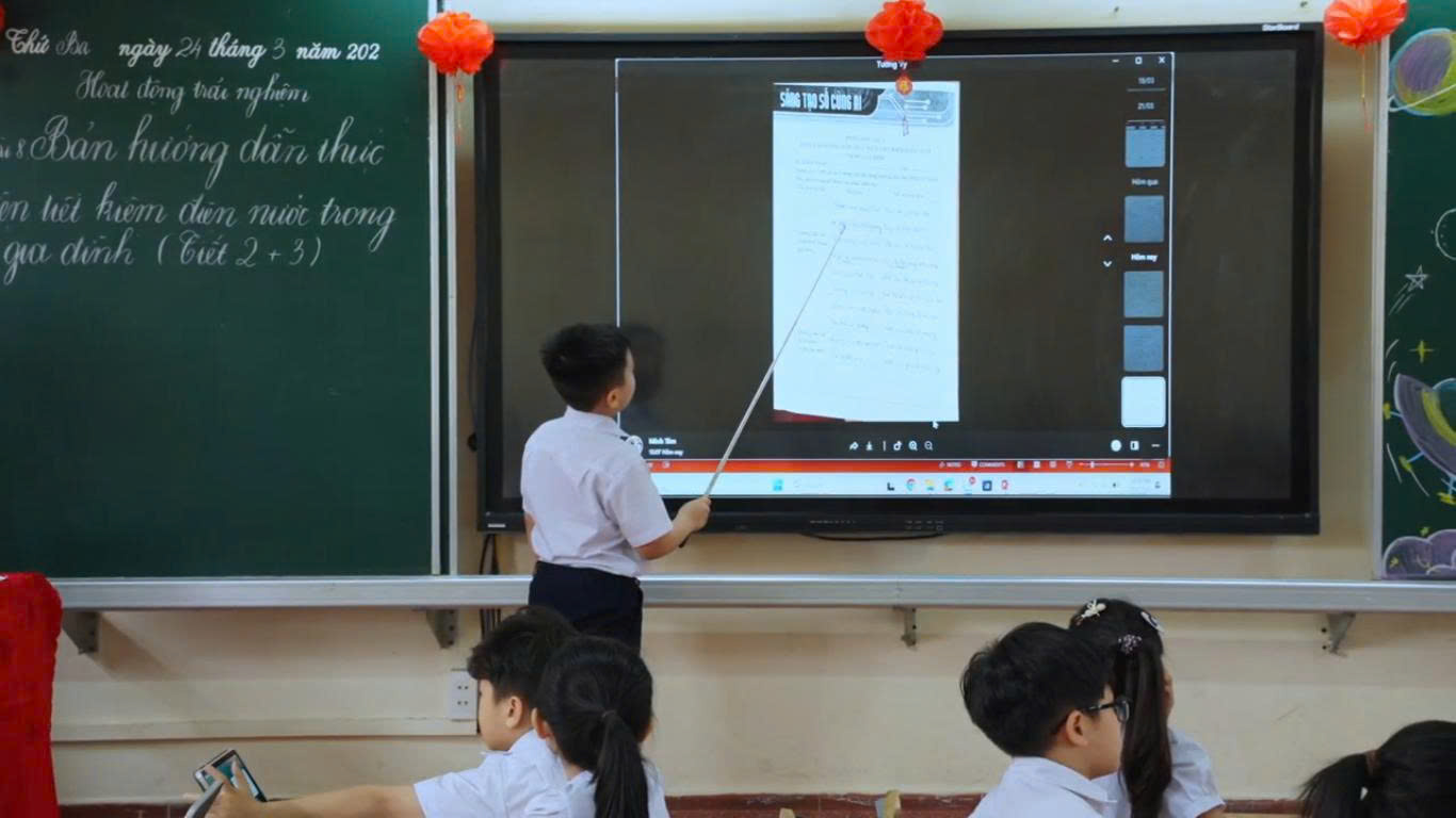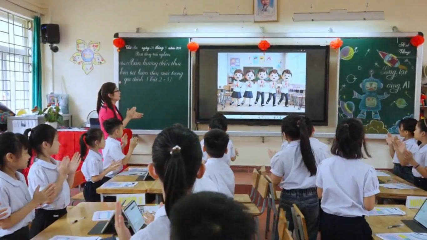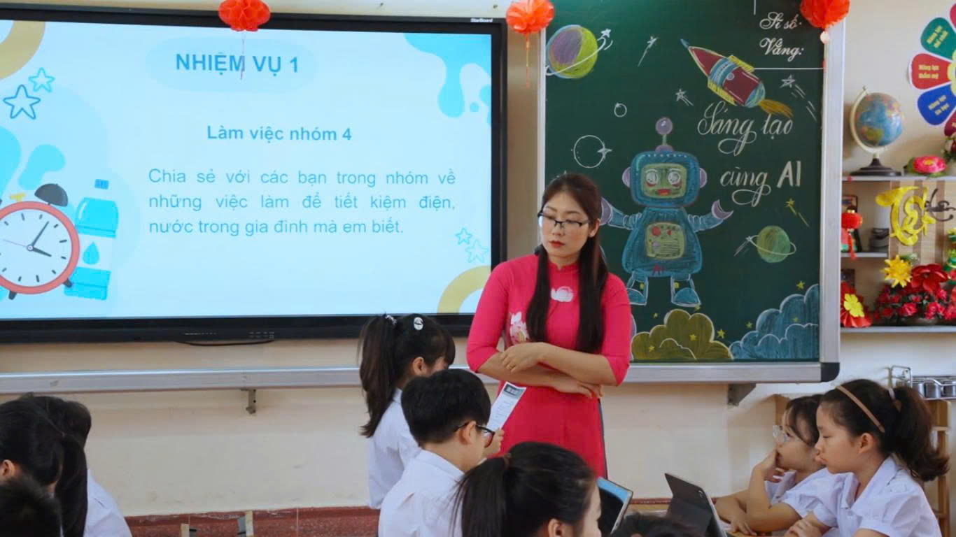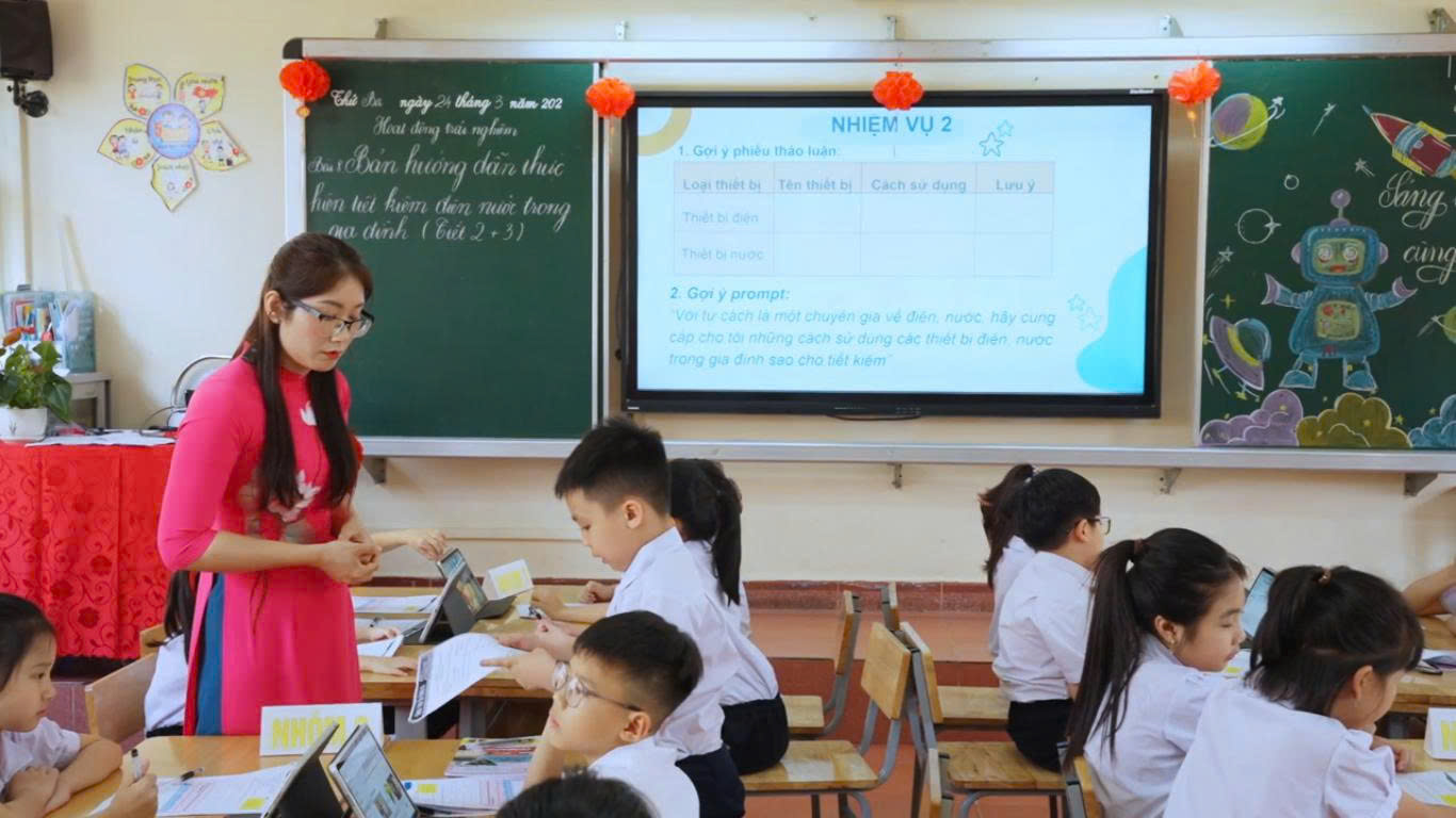 🔹 Hành trình tiếp cận công nghệ từ sớm Việc đưa AI vào không gian lớp học Tiểu học không chỉ là một bước tiến về mặt công nghệ mà còn là nỗ lực của ban giám hiệu cùng các thầy cô giáo nhằm trang bị cho các em những kỹ năng của thế kỷ 21. Những khái niệm tưởng chừng phức tạp đã được các thầy cô “mềm hóa”, biến thành các bài học sinh động, gần gũi.