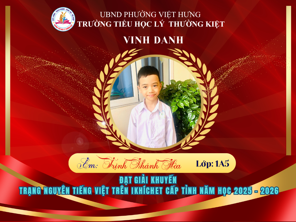 🌟 BẢNG VÀNG RỰC RỠ: CHÚC MỪNG 58 HỌC SINH TRƯỜNG TIỂU HỌC LÝ THƯỜNG KIỆT ĐẠT GIẢI TẠI KỲ THI HỘI TRẠNG NGUYÊN TIẾNG VIỆT CẤP TỈNH 🌟