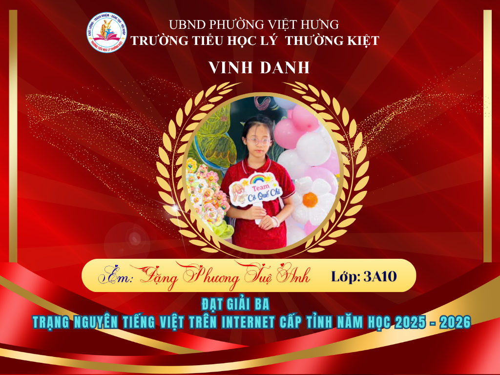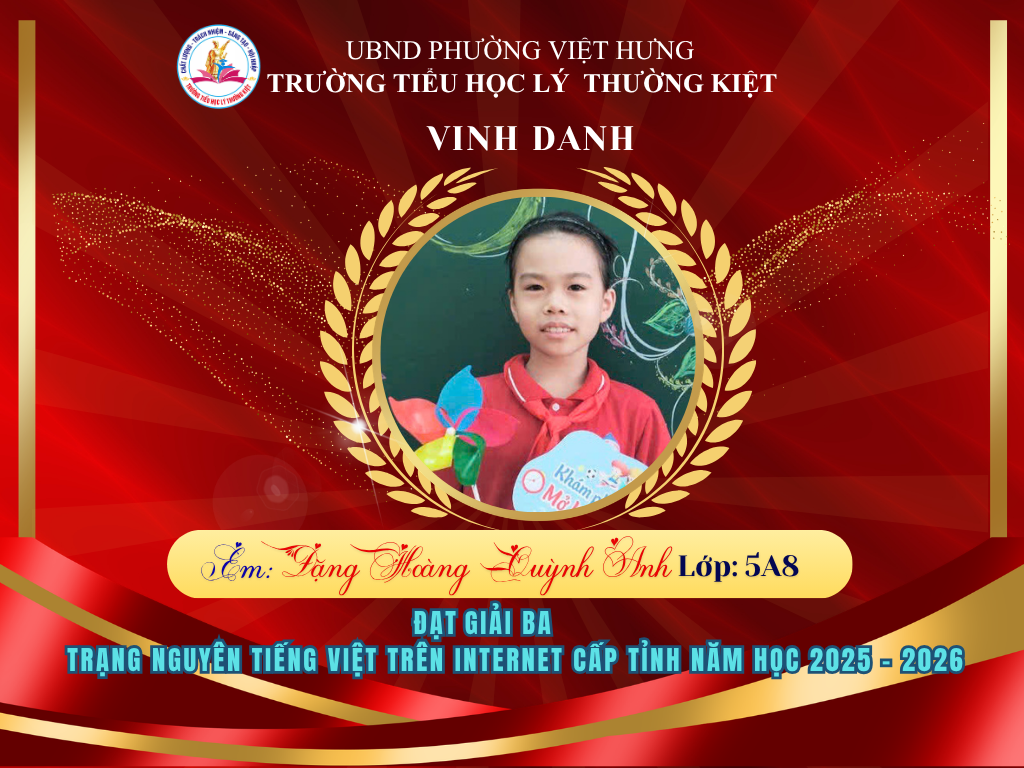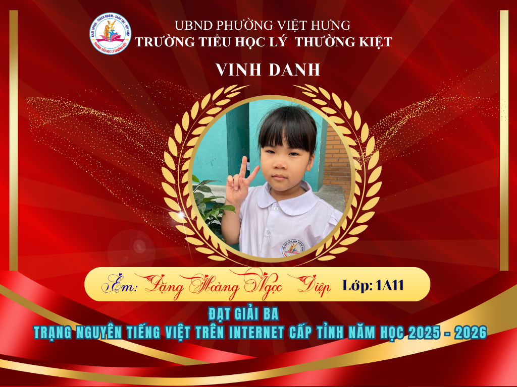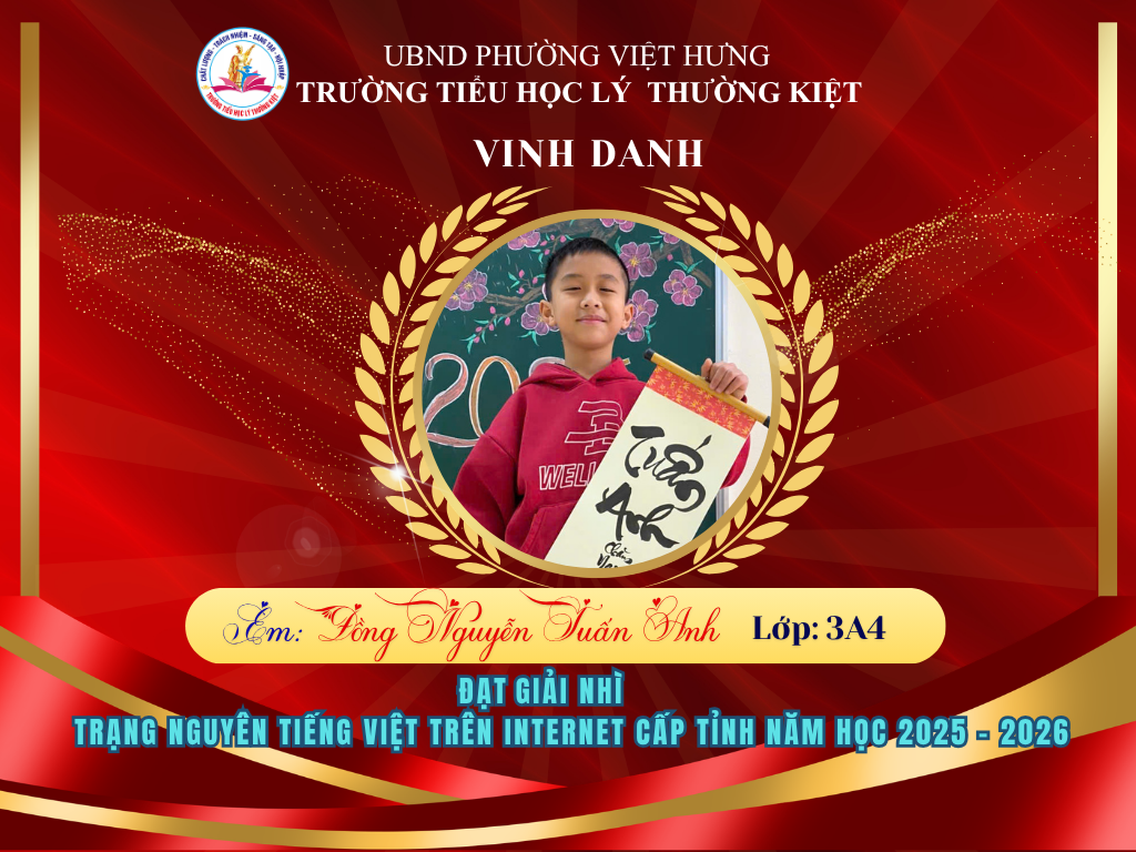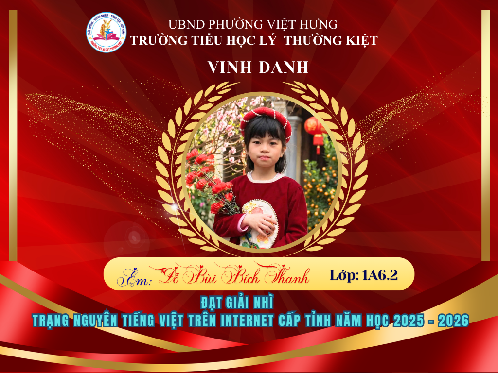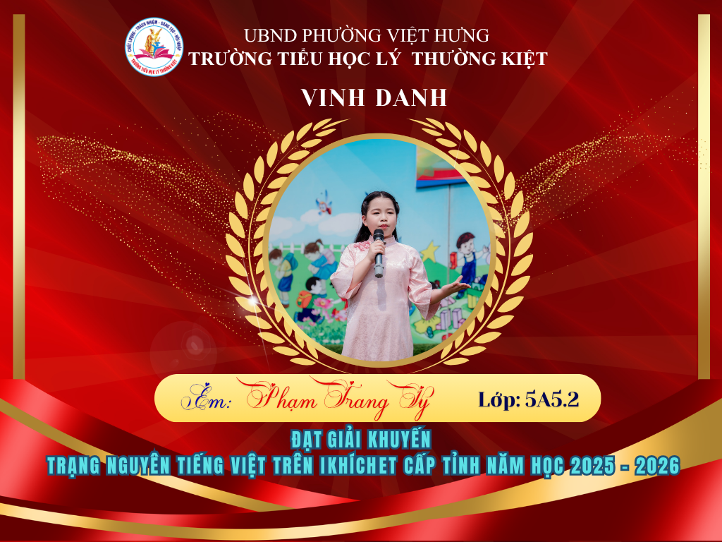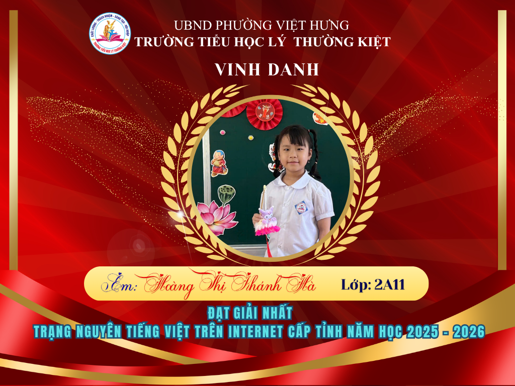 🌟 BẢNG VÀNG RỰC RỠ: CHÚC MỪNG 58 HỌC SINH TRƯỜNG TIỂU HỌC LÝ THƯỜNG KIỆT ĐẠT GIẢI TẠI KỲ THI HỘI TRẠNG NGUYÊN TIẾNG VIỆT CẤP TỈNH 🌟