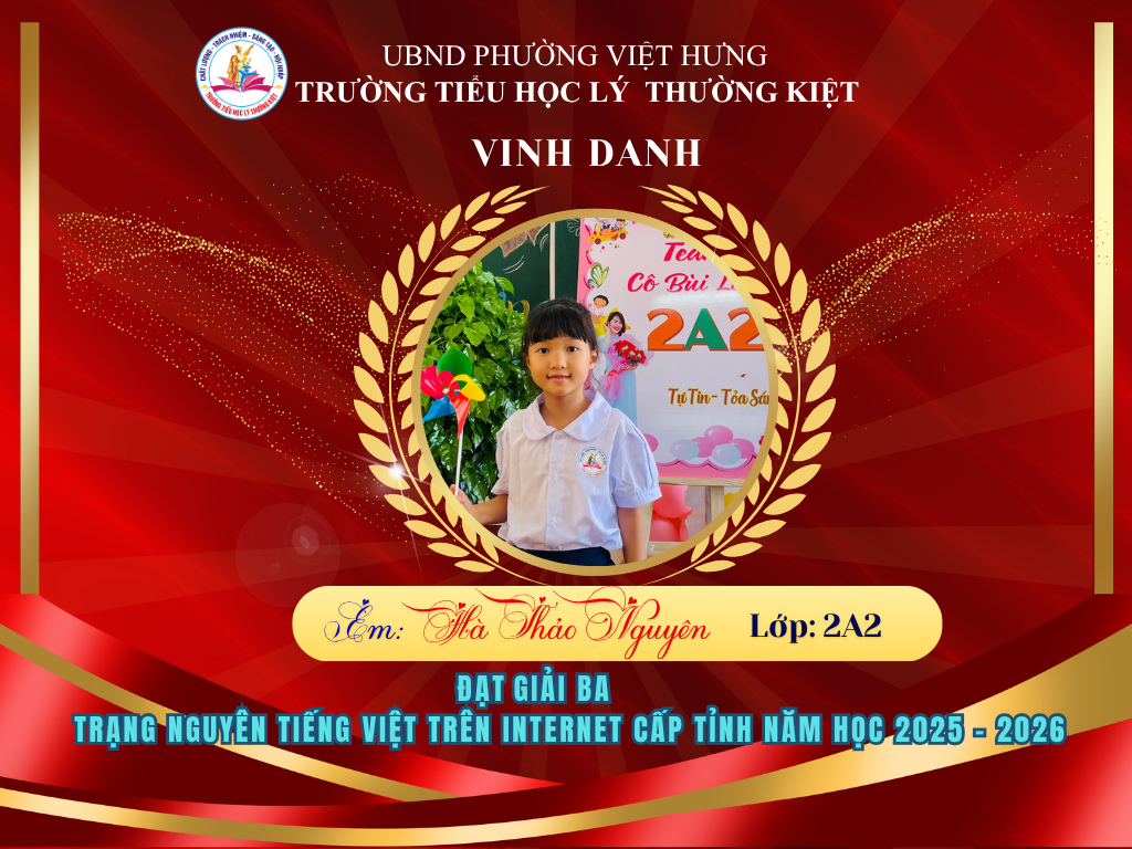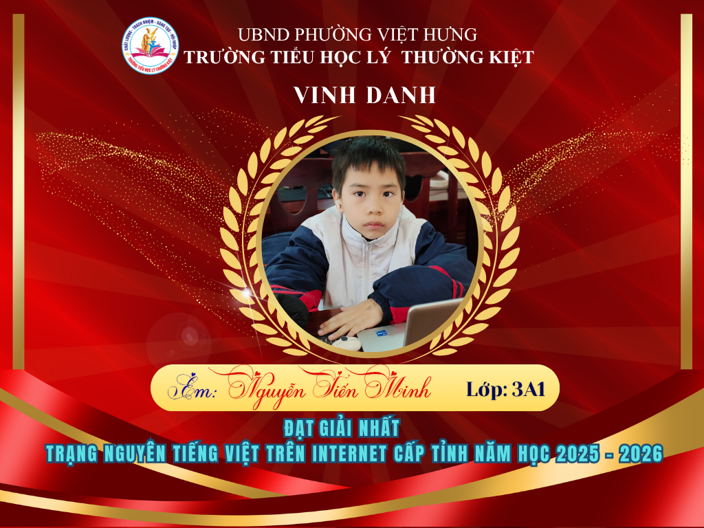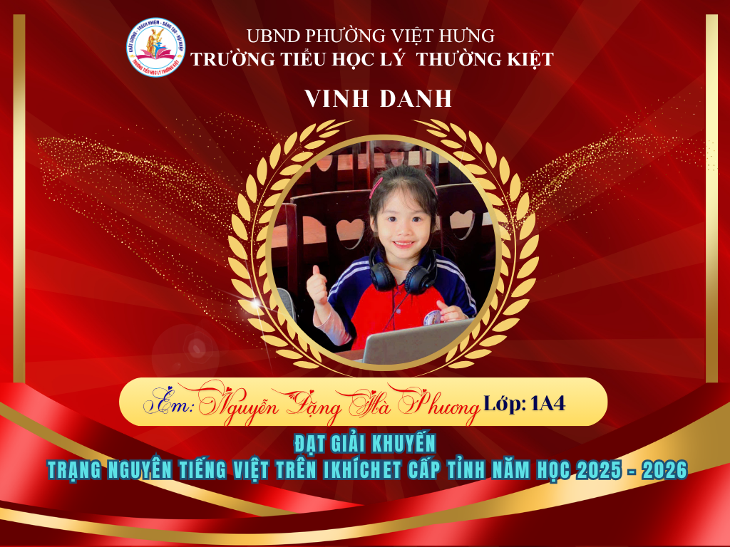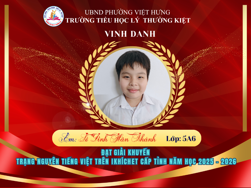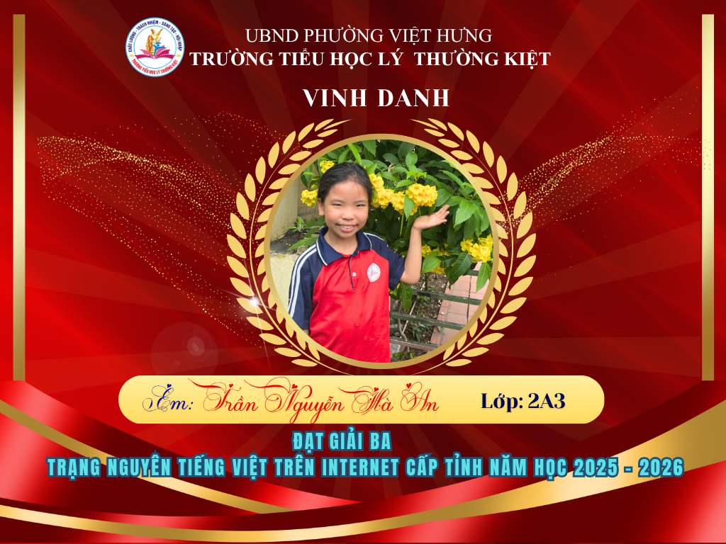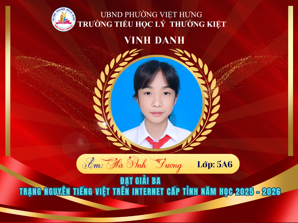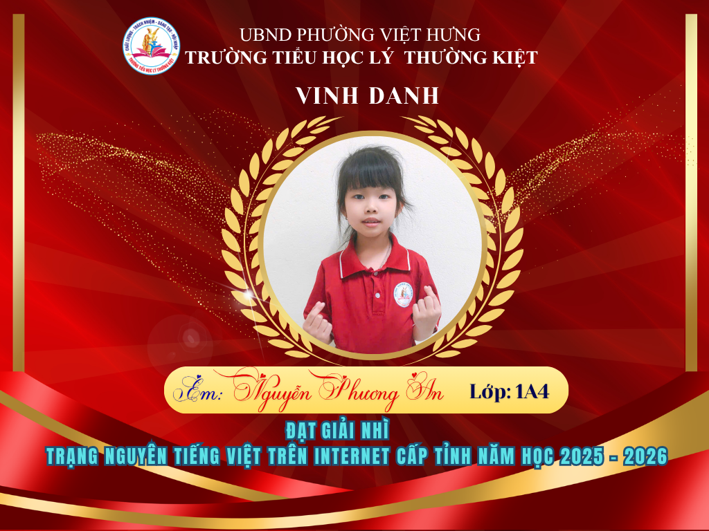 🌟 BẢNG VÀNG RỰC RỠ: CHÚC MỪNG 58 HỌC SINH TRƯỜNG TIỂU HỌC LÝ THƯỜNG KIỆT ĐẠT GIẢI TẠI KỲ THI HỘI TRẠNG NGUYÊN TIẾNG VIỆT CẤP TỈNH 🌟