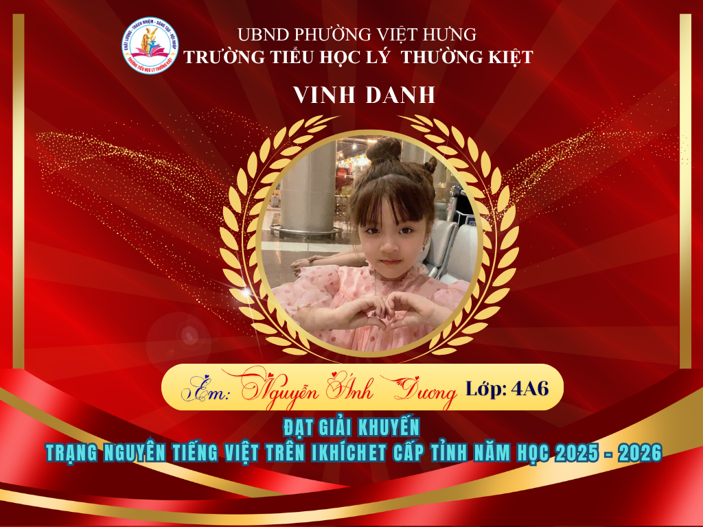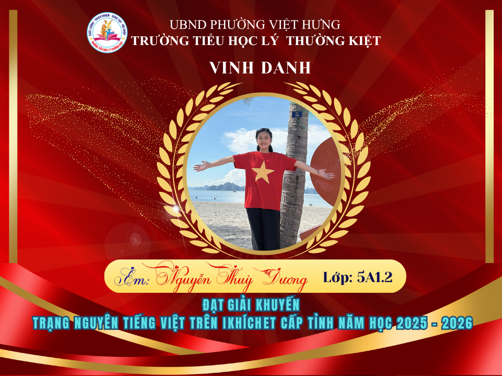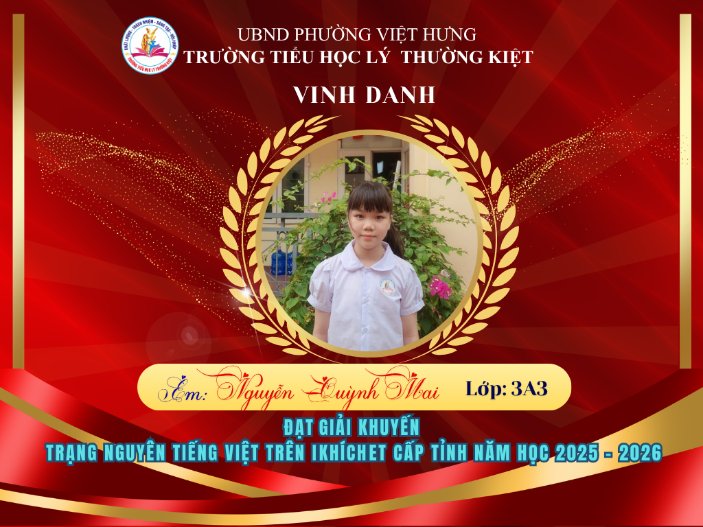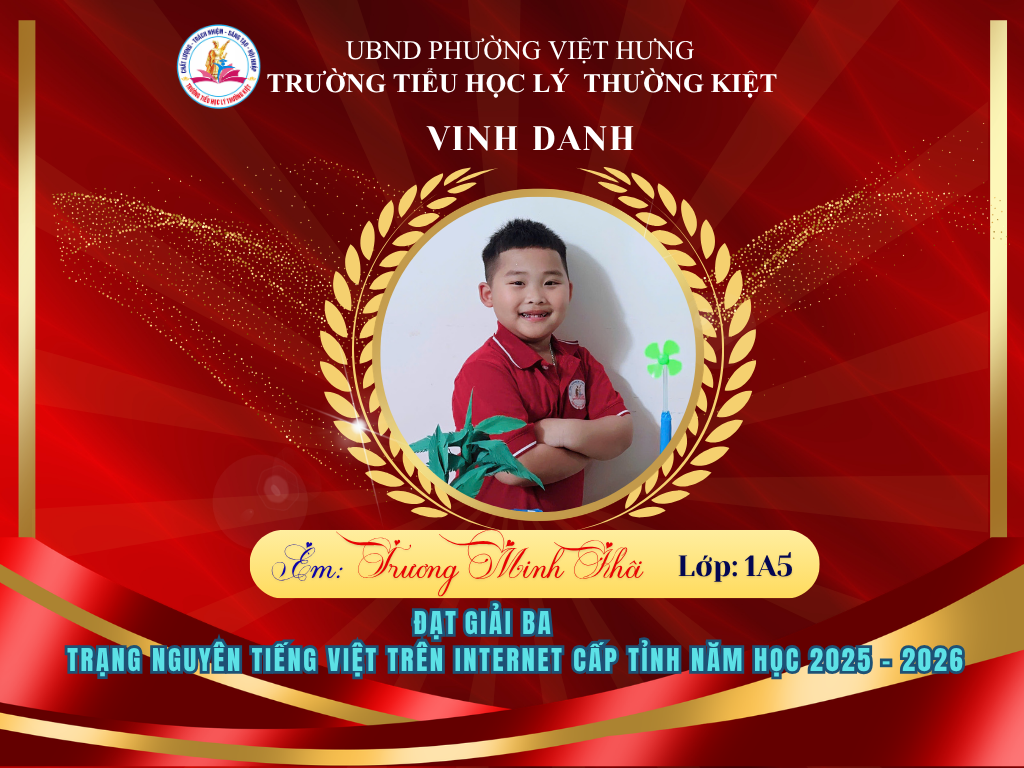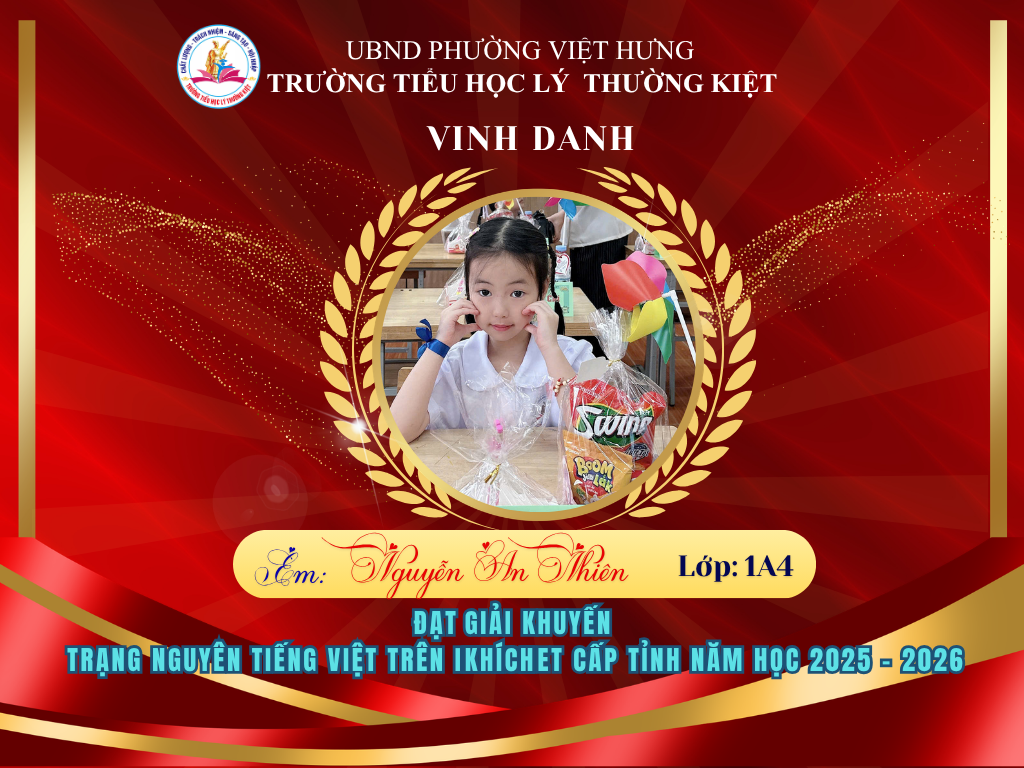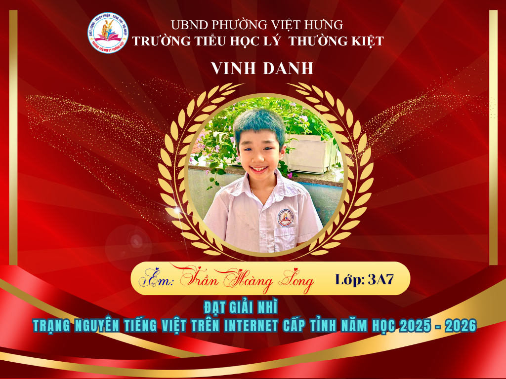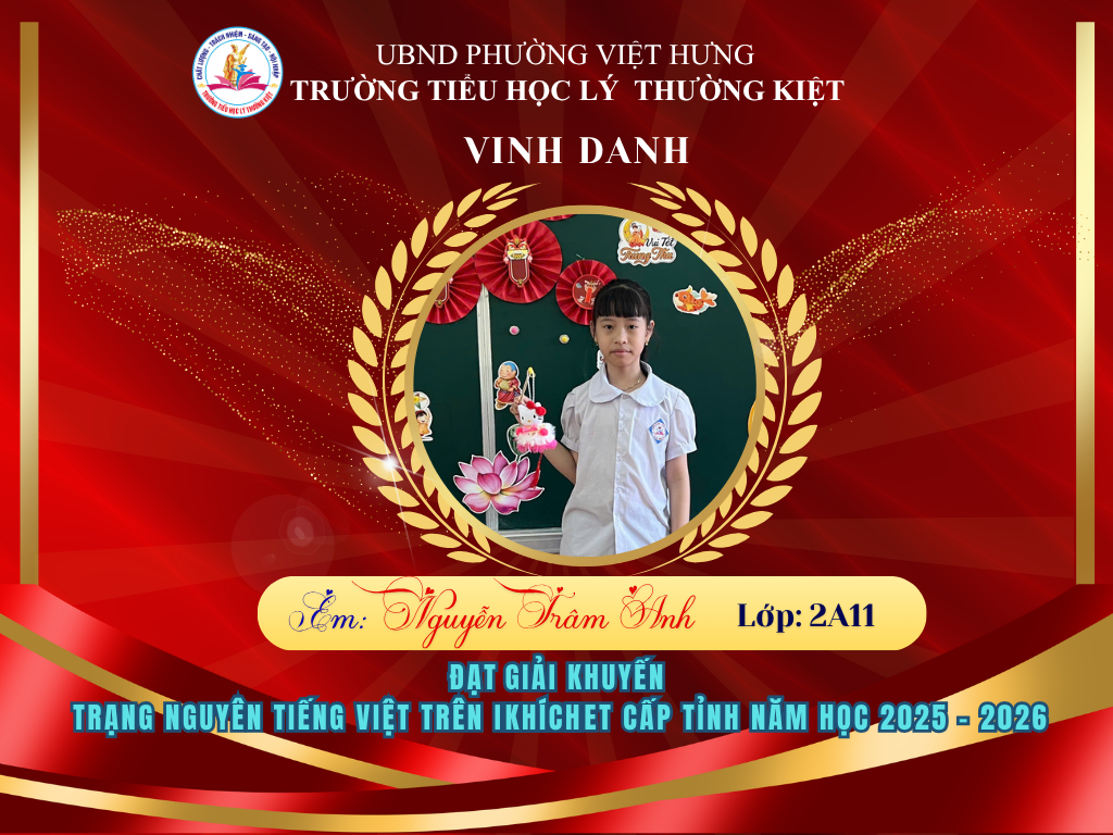 🌟 BẢNG VÀNG RỰC RỠ: CHÚC MỪNG 58 HỌC SINH TRƯỜNG TIỂU HỌC LÝ THƯỜNG KIỆT ĐẠT GIẢI TẠI KỲ THI HỘI TRẠNG NGUYÊN TIẾNG VIỆT CẤP TỈNH 🌟