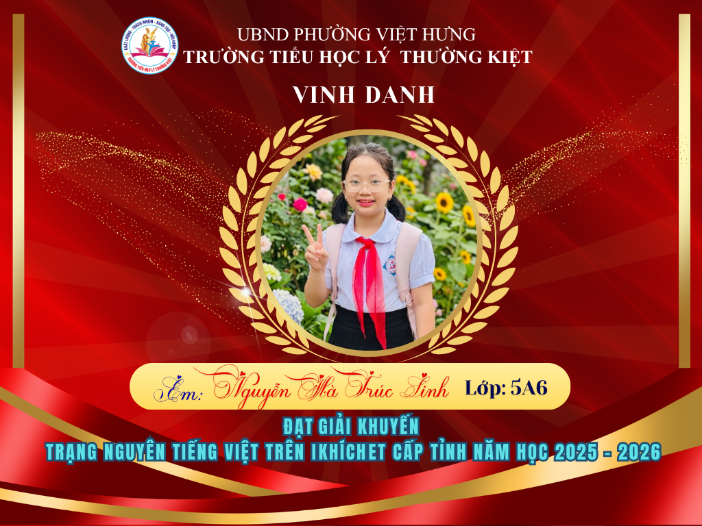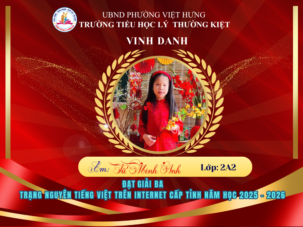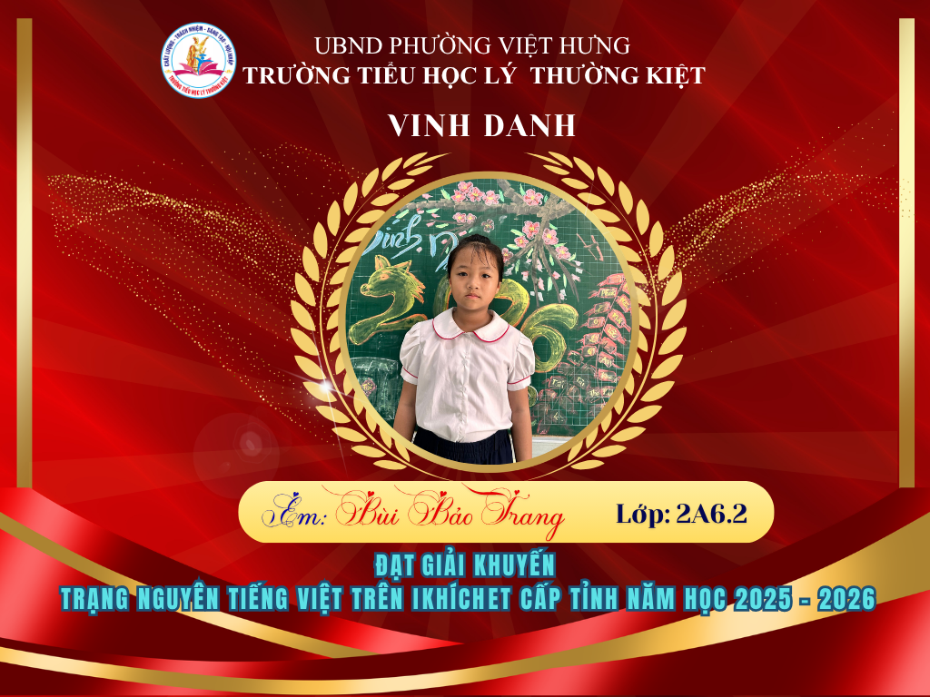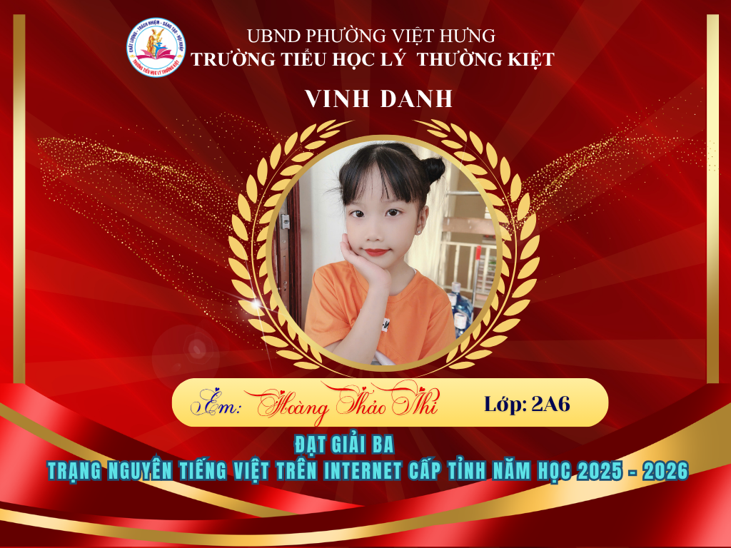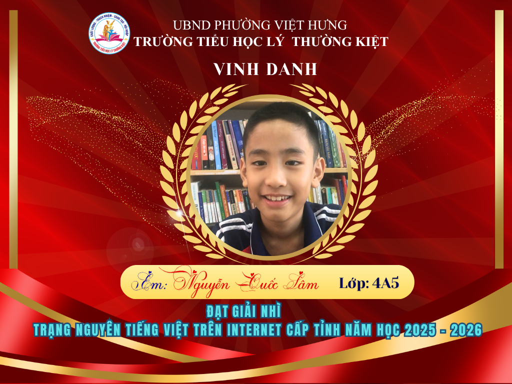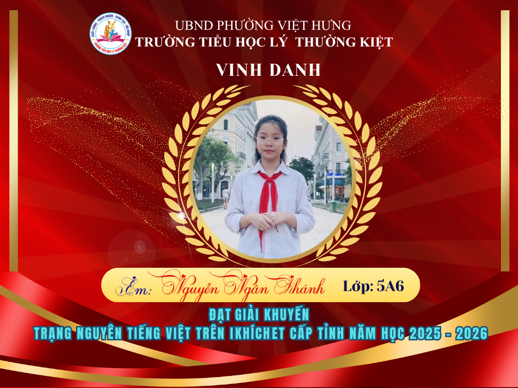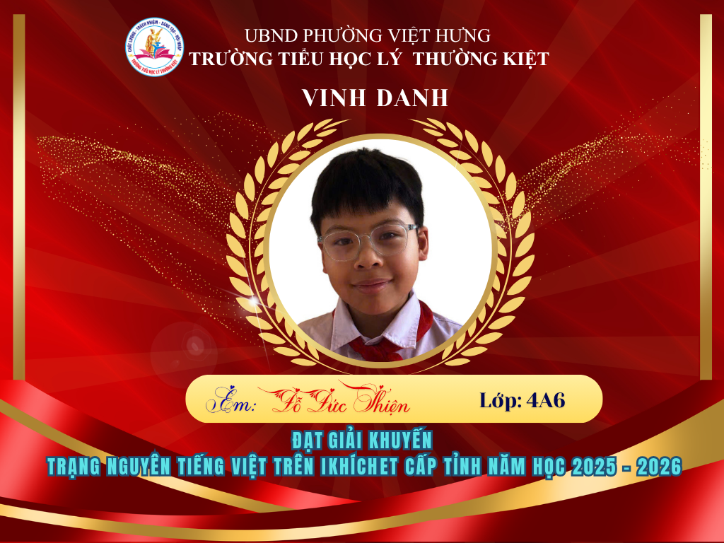 🌟 BẢNG VÀNG RỰC RỠ: CHÚC MỪNG 58 HỌC SINH TRƯỜNG TIỂU HỌC LÝ THƯỜNG KIỆT ĐẠT GIẢI TẠI KỲ THI HỘI TRẠNG NGUYÊN TIẾNG VIỆT CẤP TỈNH 🌟