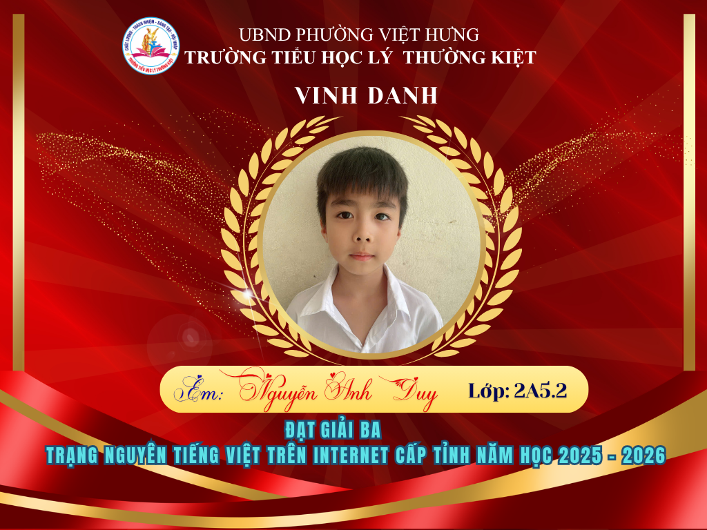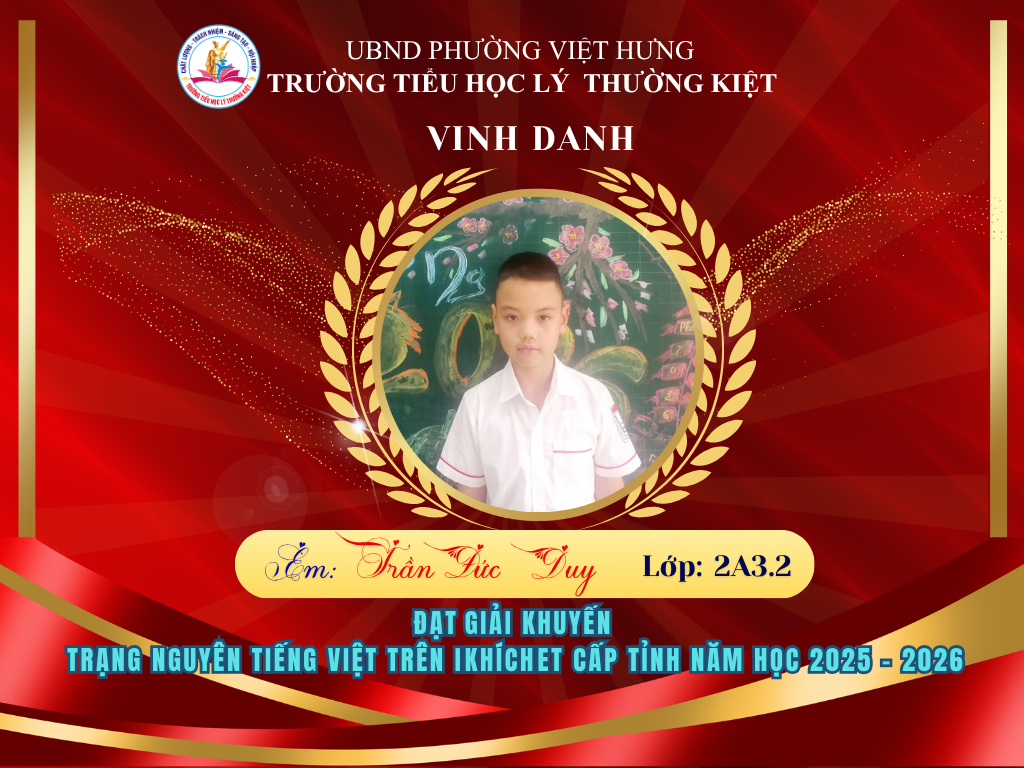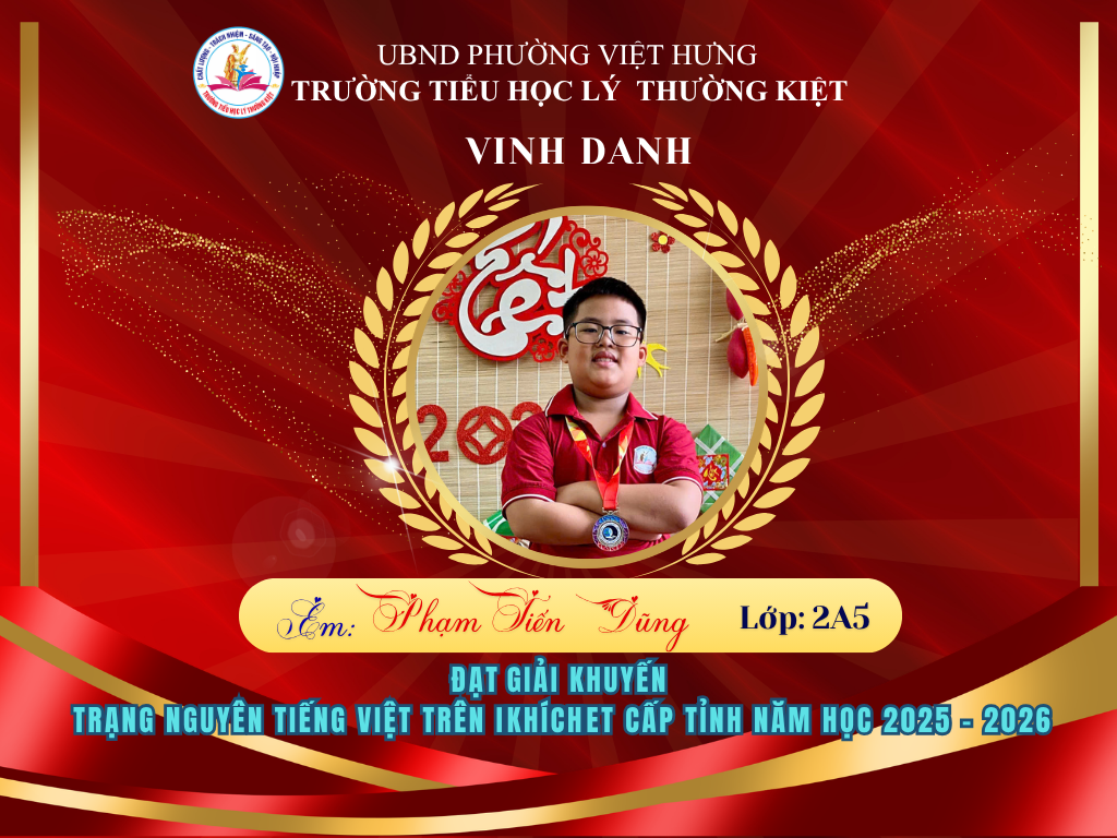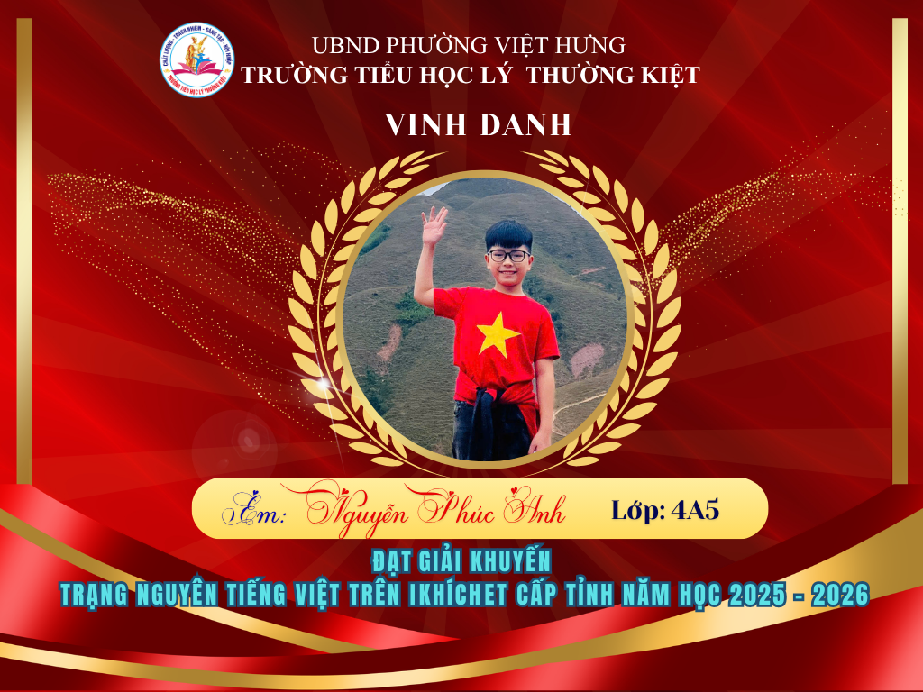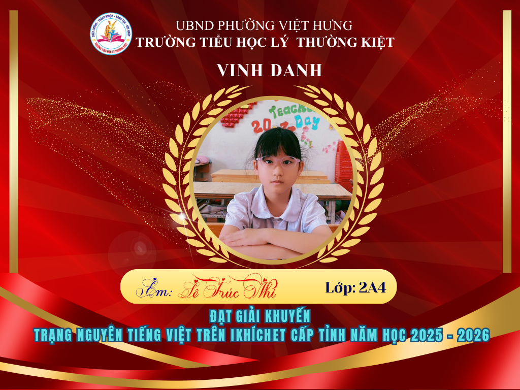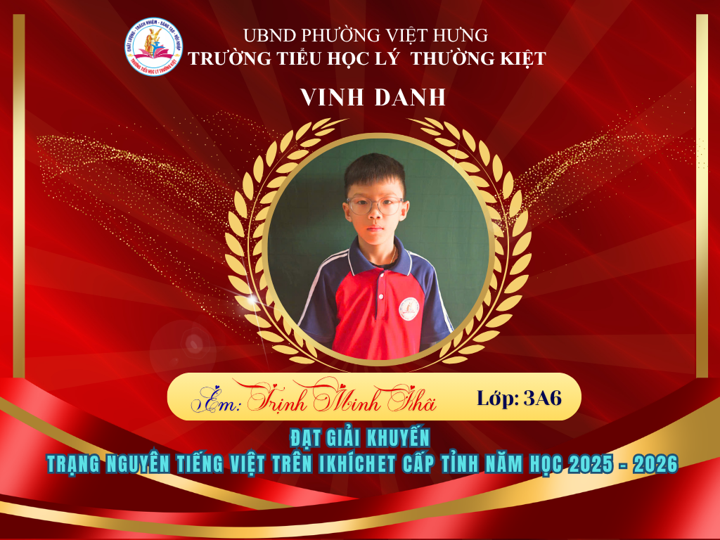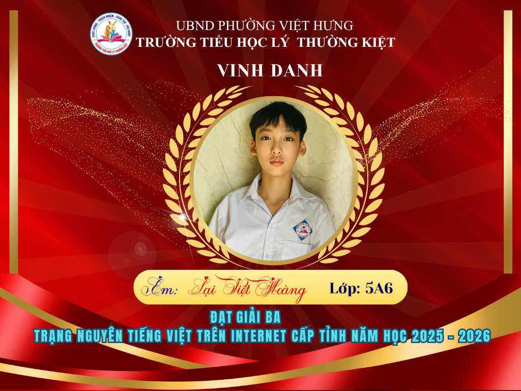 🌟 BẢNG VÀNG RỰC RỠ: CHÚC MỪNG 58 HỌC SINH TRƯỜNG TIỂU HỌC LÝ THƯỜNG KIỆT ĐẠT GIẢI TẠI KỲ THI HỘI TRẠNG NGUYÊN TIẾNG VIỆT CẤP TỈNH 🌟