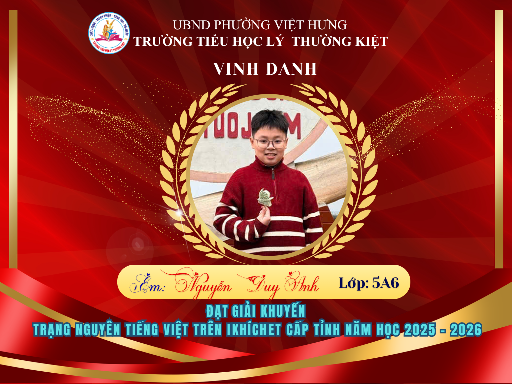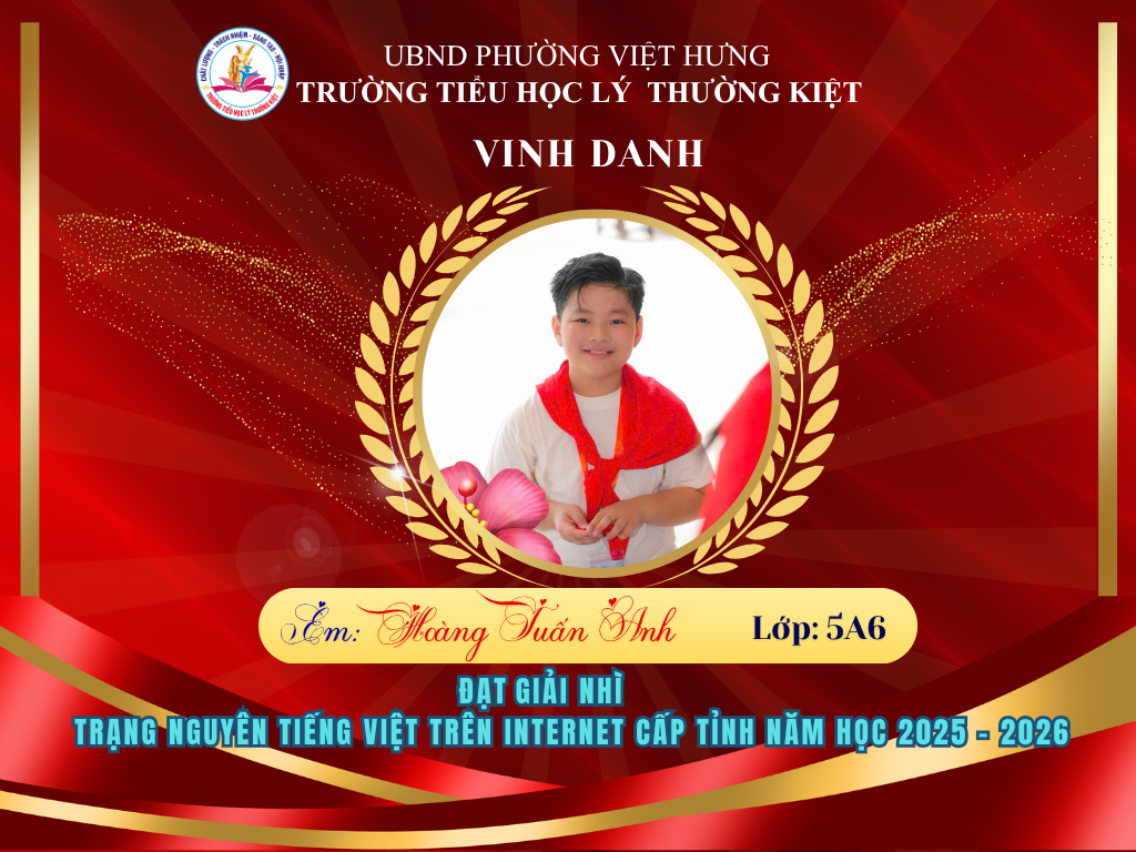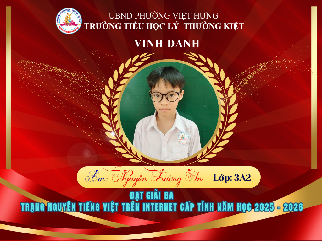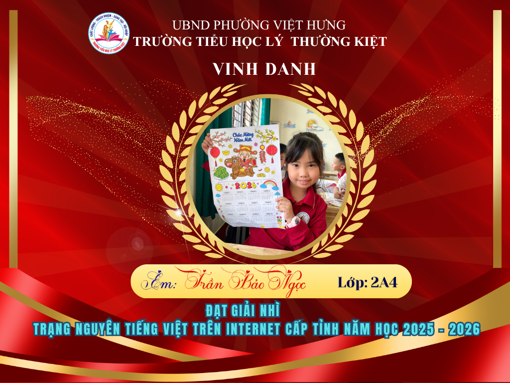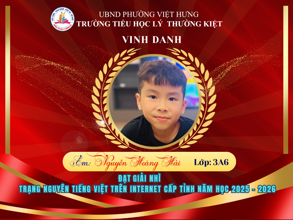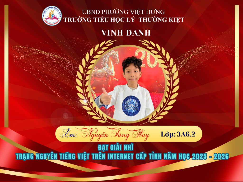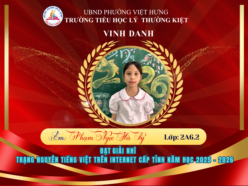 Vượt qua nhiều thử thách, 58 học sinh ưu tú của Trường Tiểu học Lý Thường Kiệt đã xuất sắc ghi tên mình lên bảng vàng tại vòng thi Hội sân chơi Trạng Nguyên Tiếng Việt cấp Tỉnh năm học 2025-2026. Đây là niềm tự hào to lớn, khẳng định chất lượng giáo dục và tinh thần hiếu học không ngừng nghỉ của thầy và trò nhà trường.