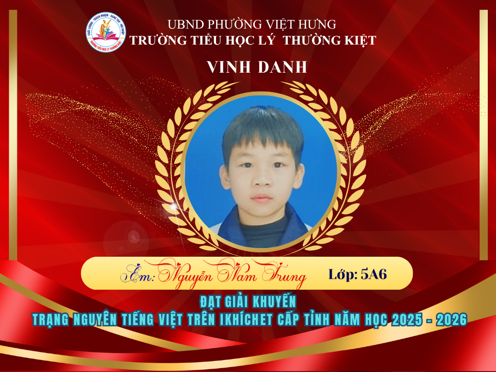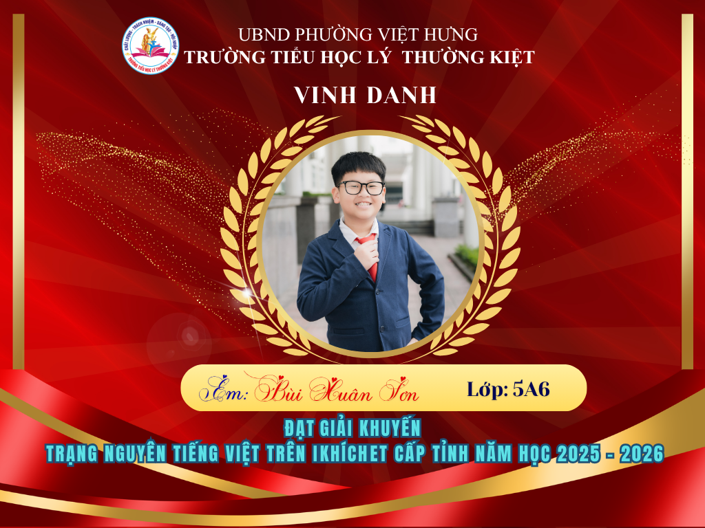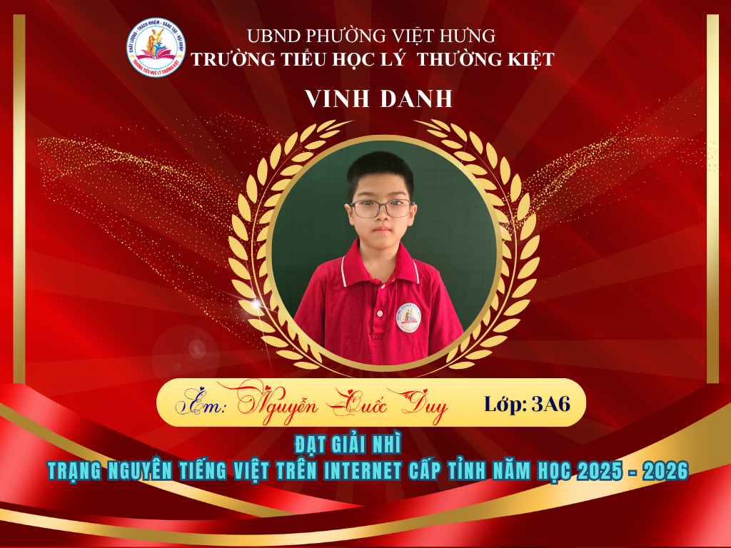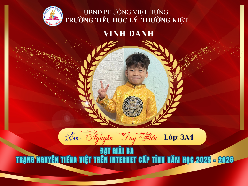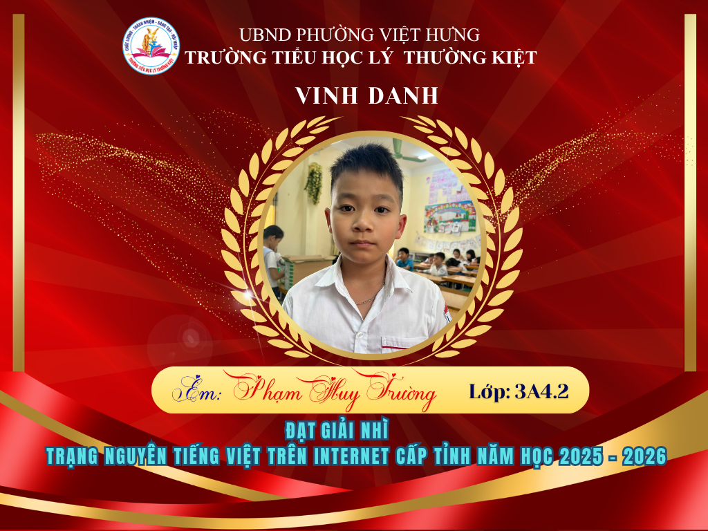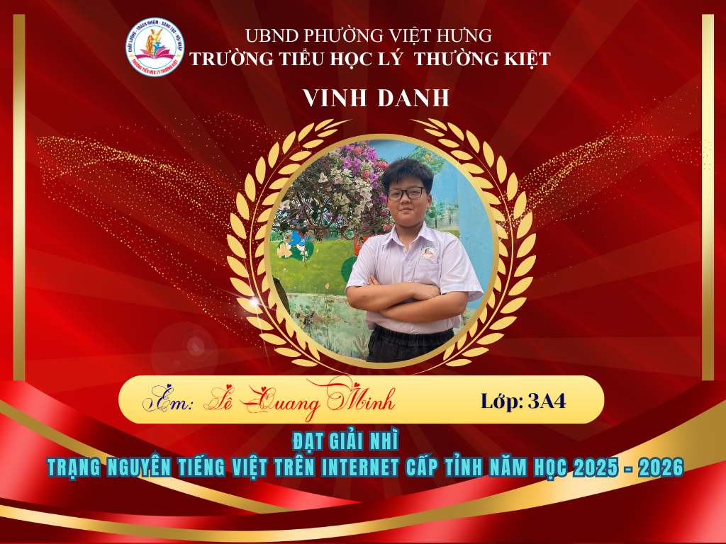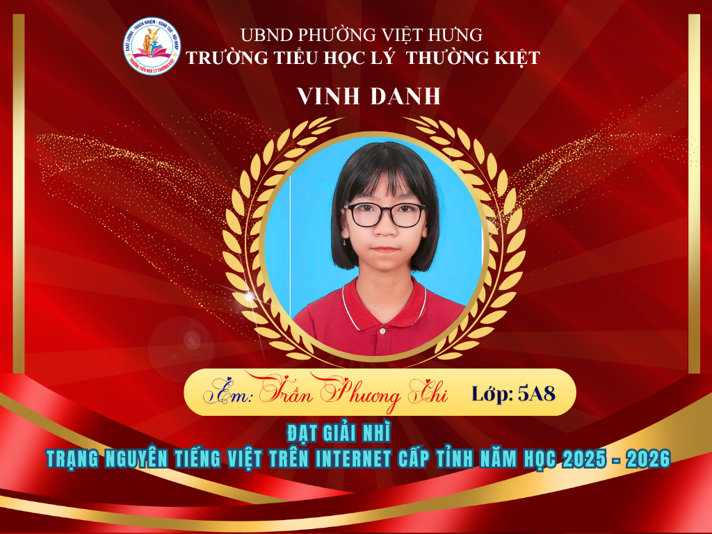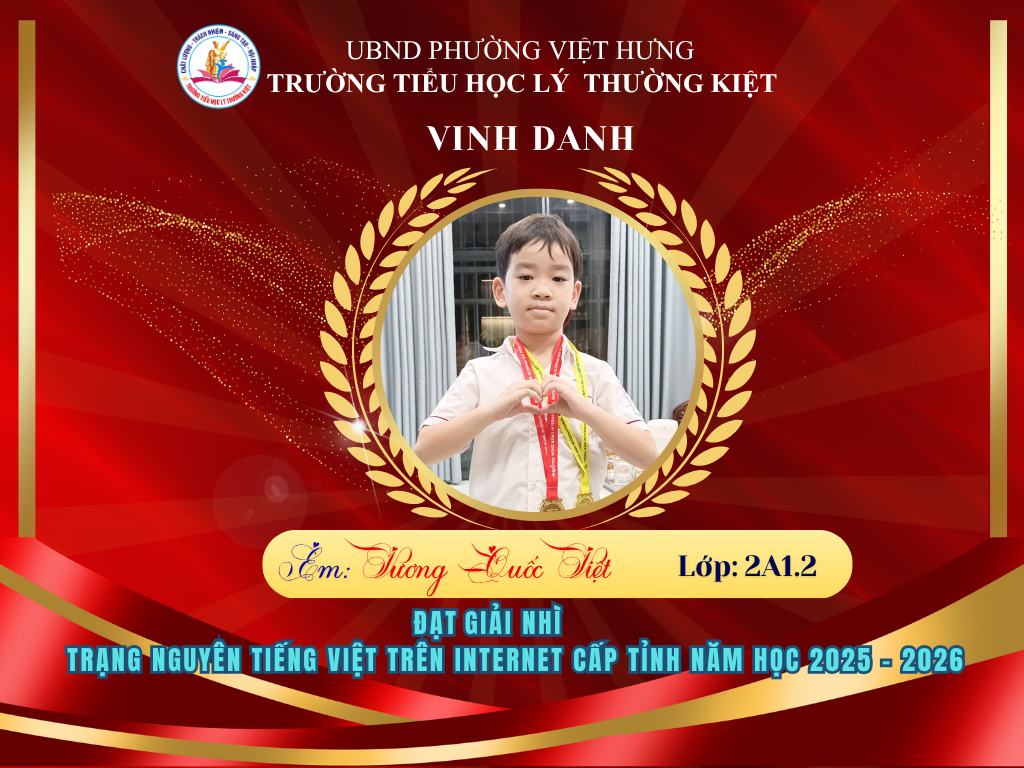 Vượt qua nhiều thử thách, 58 học sinh ưu tú của Trường Tiểu học Lý Thường Kiệt đã xuất sắc ghi tên mình lên bảng vàng tại vòng thi Hội sân chơi Trạng Nguyên Tiếng Việt cấp Tỉnh năm học 2025-2026. Đây là niềm tự hào to lớn, khẳng định chất lượng giáo dục và tinh thần hiếu học không ngừng nghỉ của thầy và trò nhà trường.