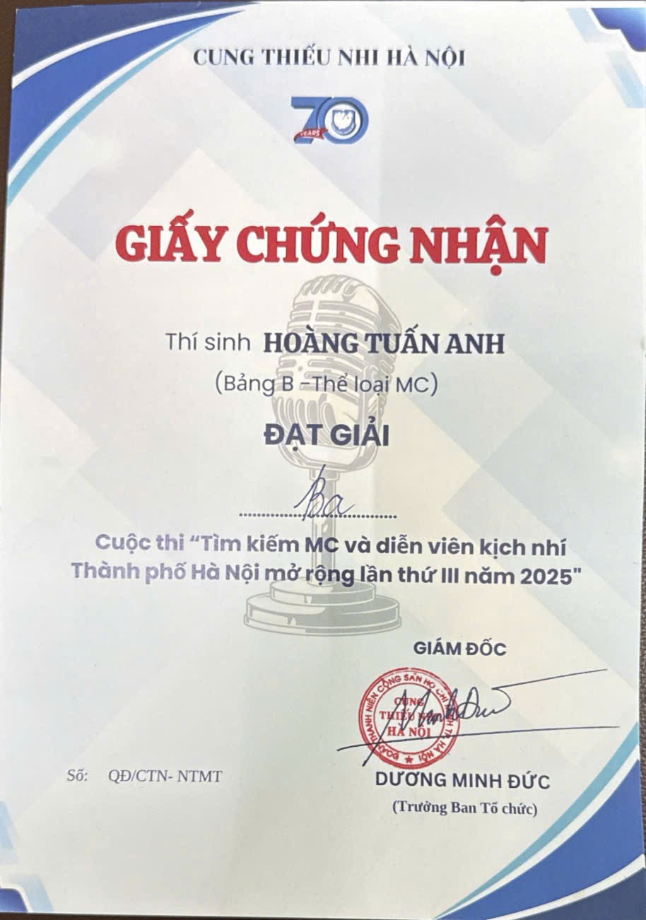 Đạt giải 3 cuộc thi “Tìm kiếm MC và diễn viên kịch nhí Hà Nội mở rộng lần thứ 3 năm 2025”