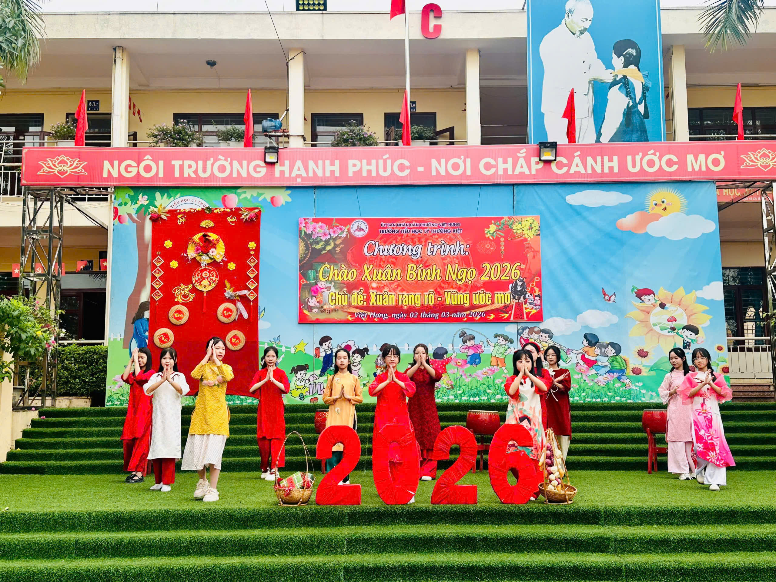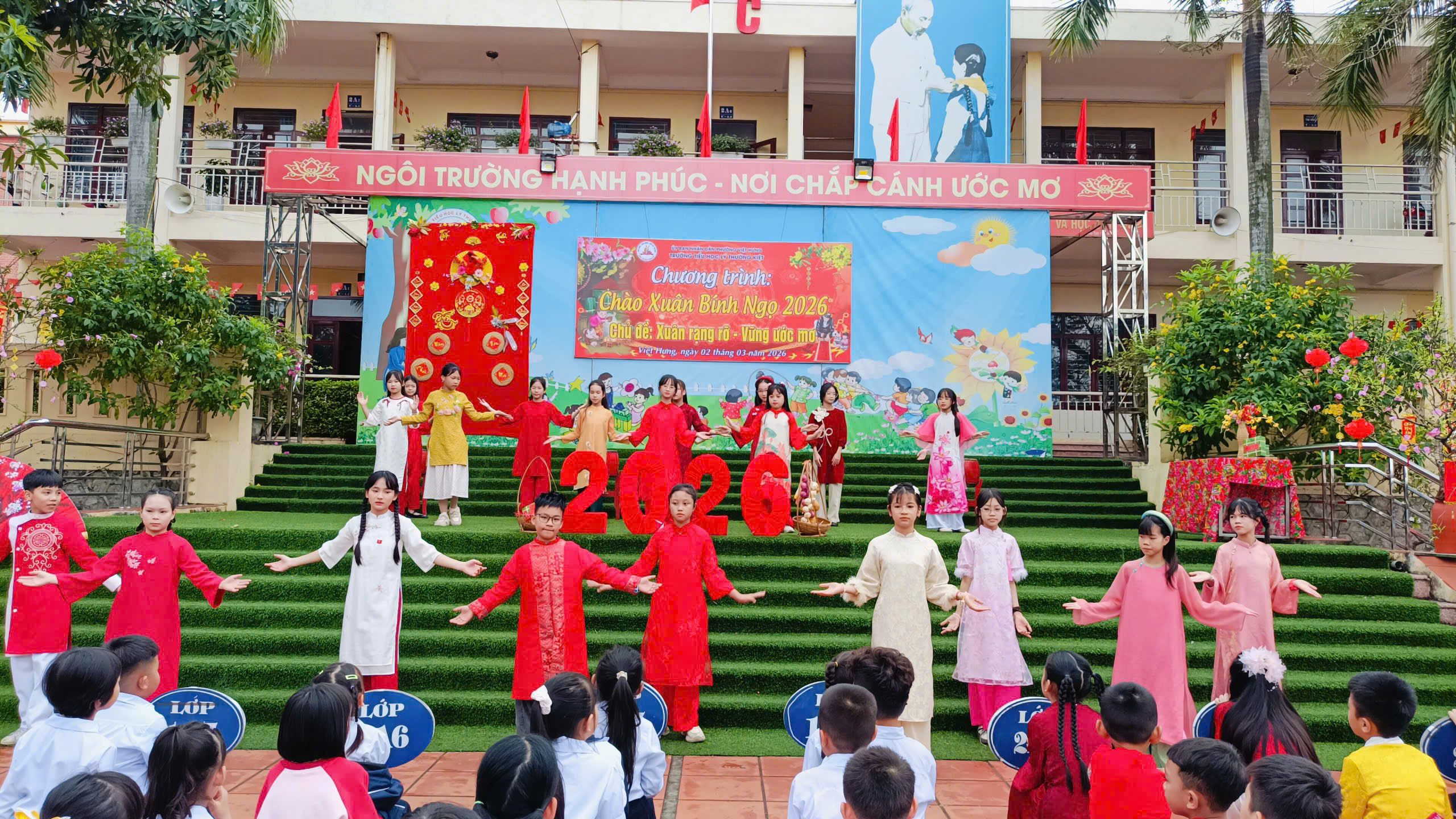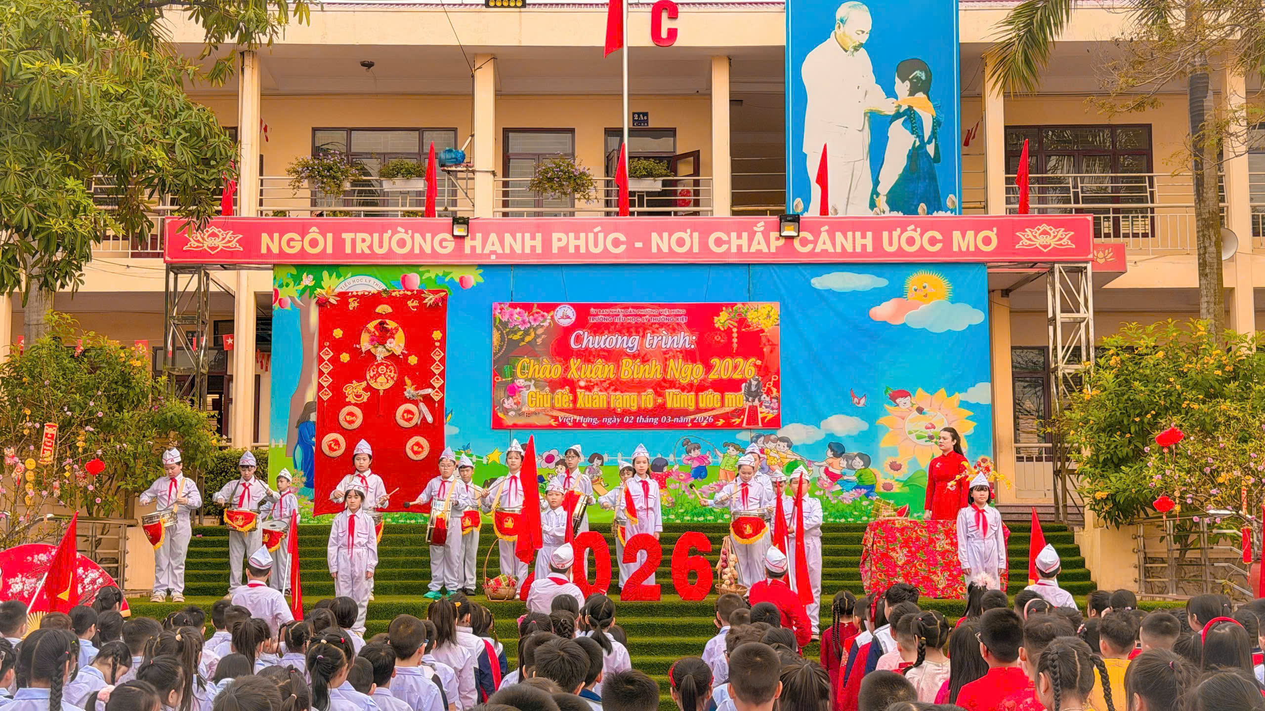 Sáng nay, Trường Tiểu học Lý Thường Kiệt đã tưng bừng tổ chức Lễ chào cờ đầu xuân và chuỗi hoạt động trải nghiệm tập thể với chủ đề “Xuân rạng rỡ – vững ước mơ”. Sự kiện diễn ra đồng loạt tại 3 cơ sở, mang đến bầu không khí vui tươi, phấn khởi để thầy và trò cùng khởi đầu một chặng đường học tập mới tràn đầy năng lượng.