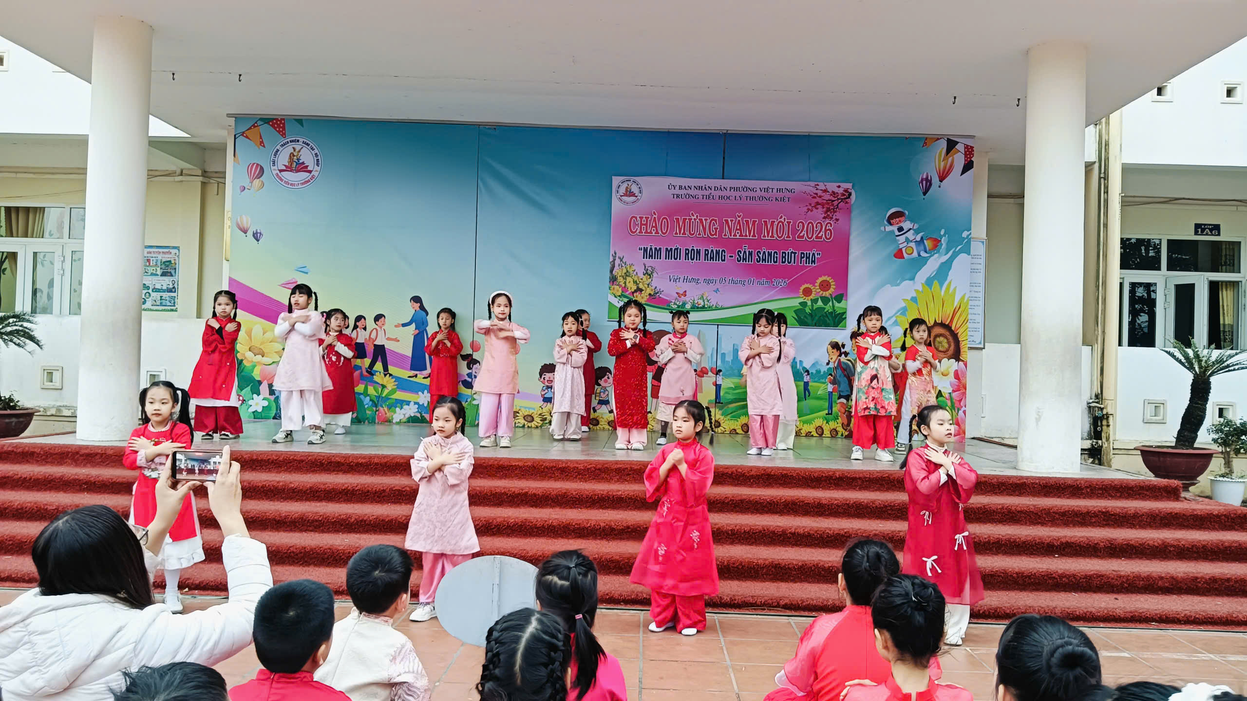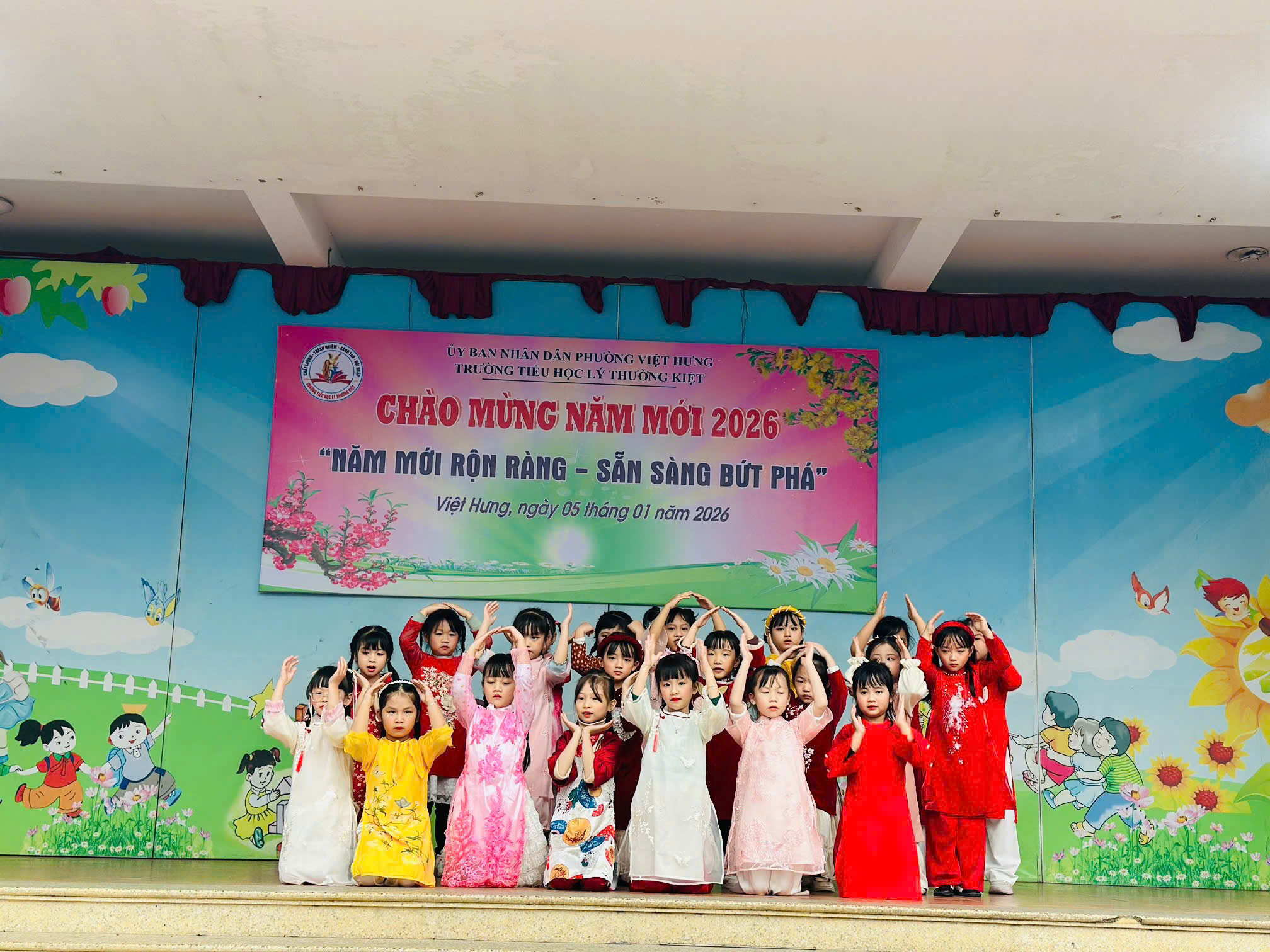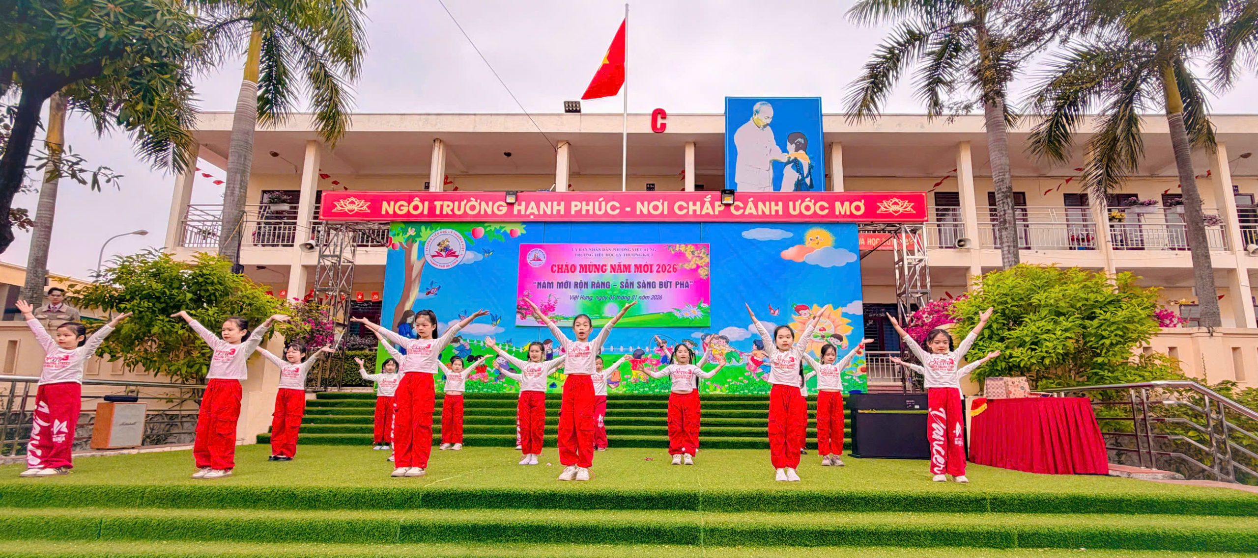 Trong không khí hân hoan chào đón năm mới 2026, thầy cô và các em học sinh trường Tiểu học Lý Thường Kiệt đã cùng nhau tham gia chương trình chào mừng năm mới với chủ đề “Năm mới rộn ràng – Sẵn sàng bứt phá”. Chương trình diễn ra trong bầu không khí vui tươi, phấn khởi, mở ra một năm mới tràn đầy niềm tin, khát vọng và quyết tâm đổi mới.