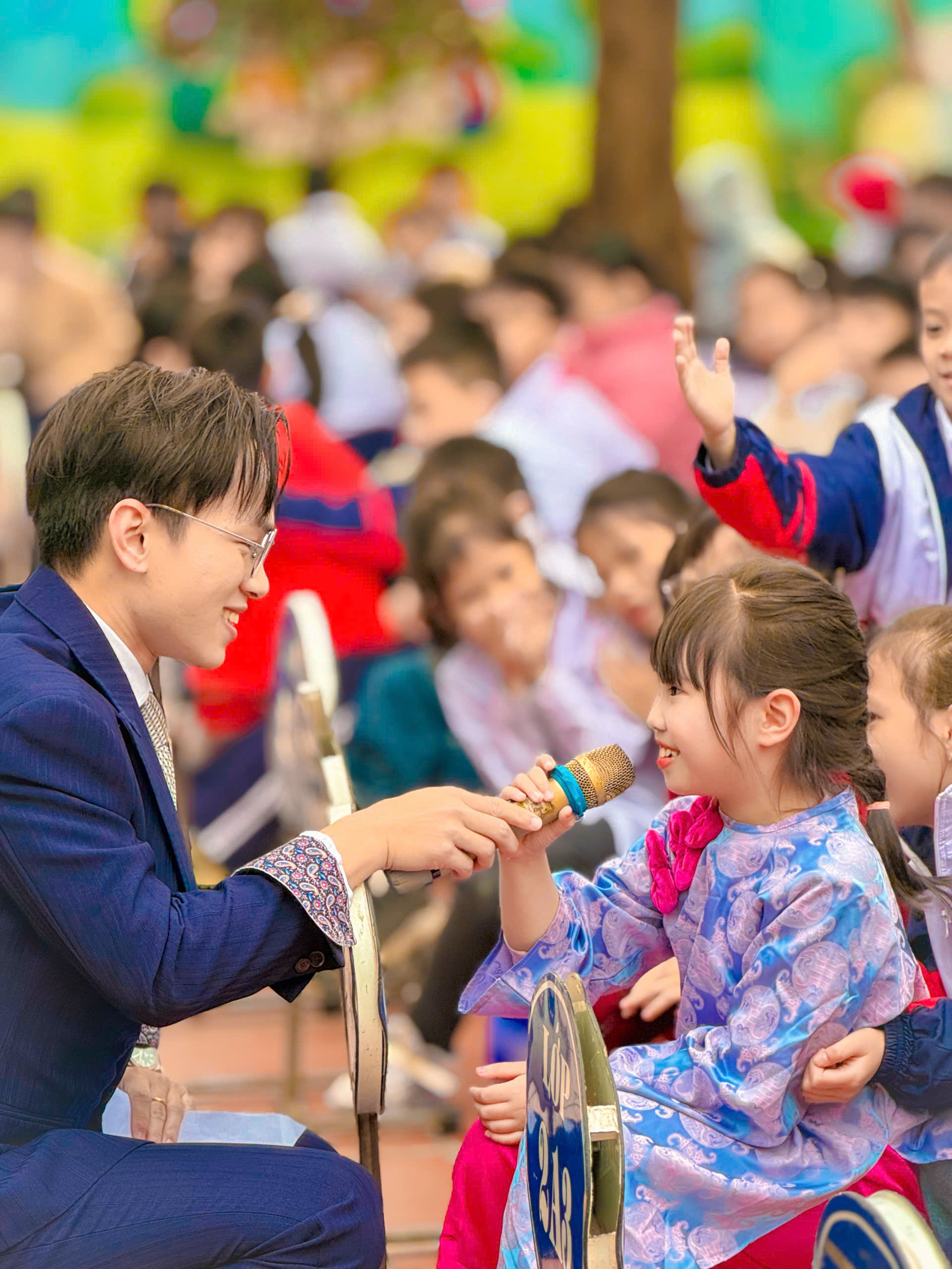 Điểm nhấn đặc biệt của chương trình là phần giao lưu, vấn đáp giữa MC và các em học sinh. Với những câu hỏi gần gũi xoay quanh ước mơ, mục tiêu và quyết tâm trong năm 2026, các em đã tự tin chia sẻ suy nghĩ của mình. Những lời nói mộc mạc, hồn nhiên nhưng chứa đựng khát vọng vươn lên, mong muốn học tập tốt hơn, rèn luyện bản thân tốt hơn đã tạo nên nhiều cảm xúc tích cực và tiếp thêm động lực cho toàn thể học sinh.