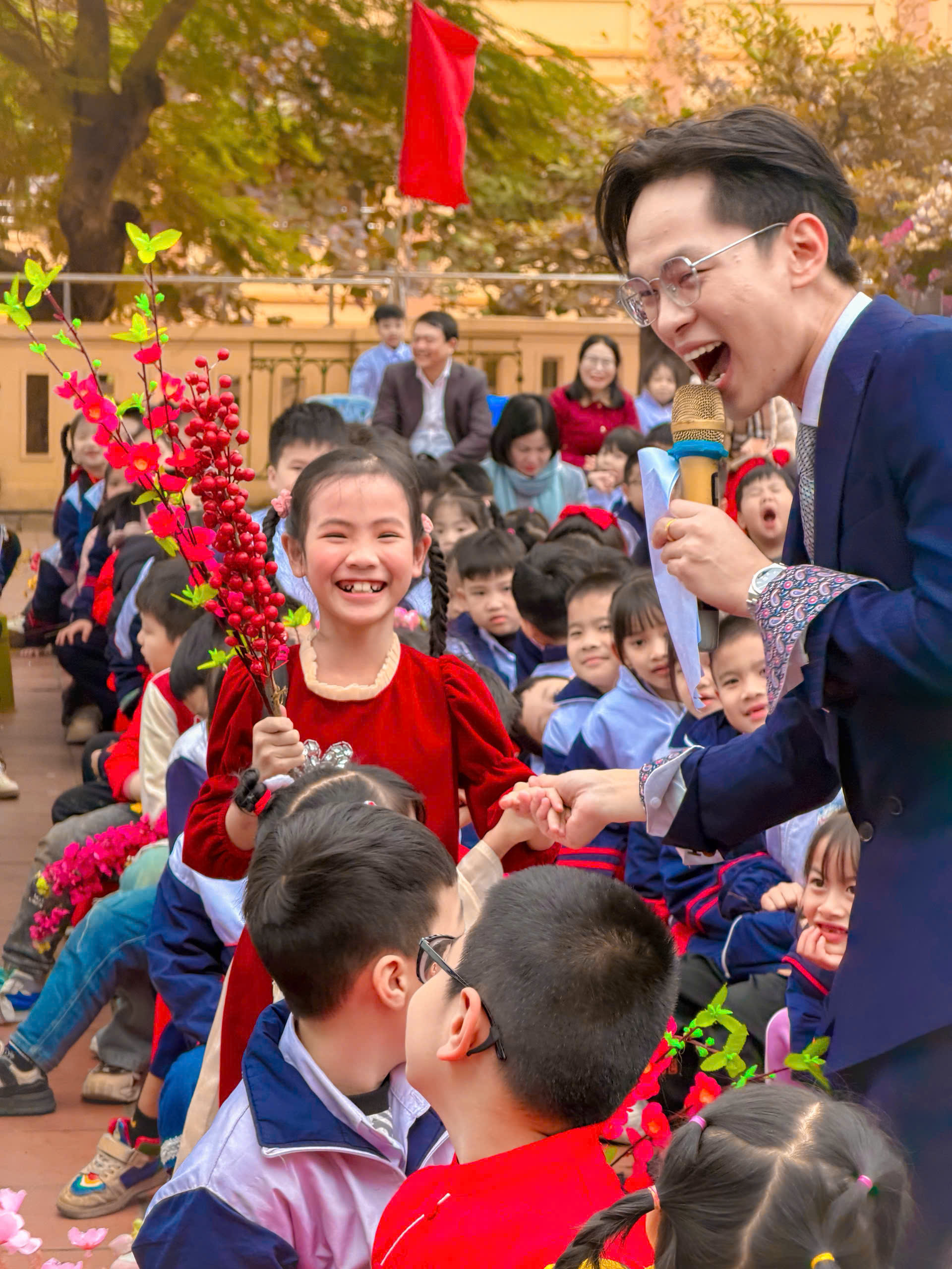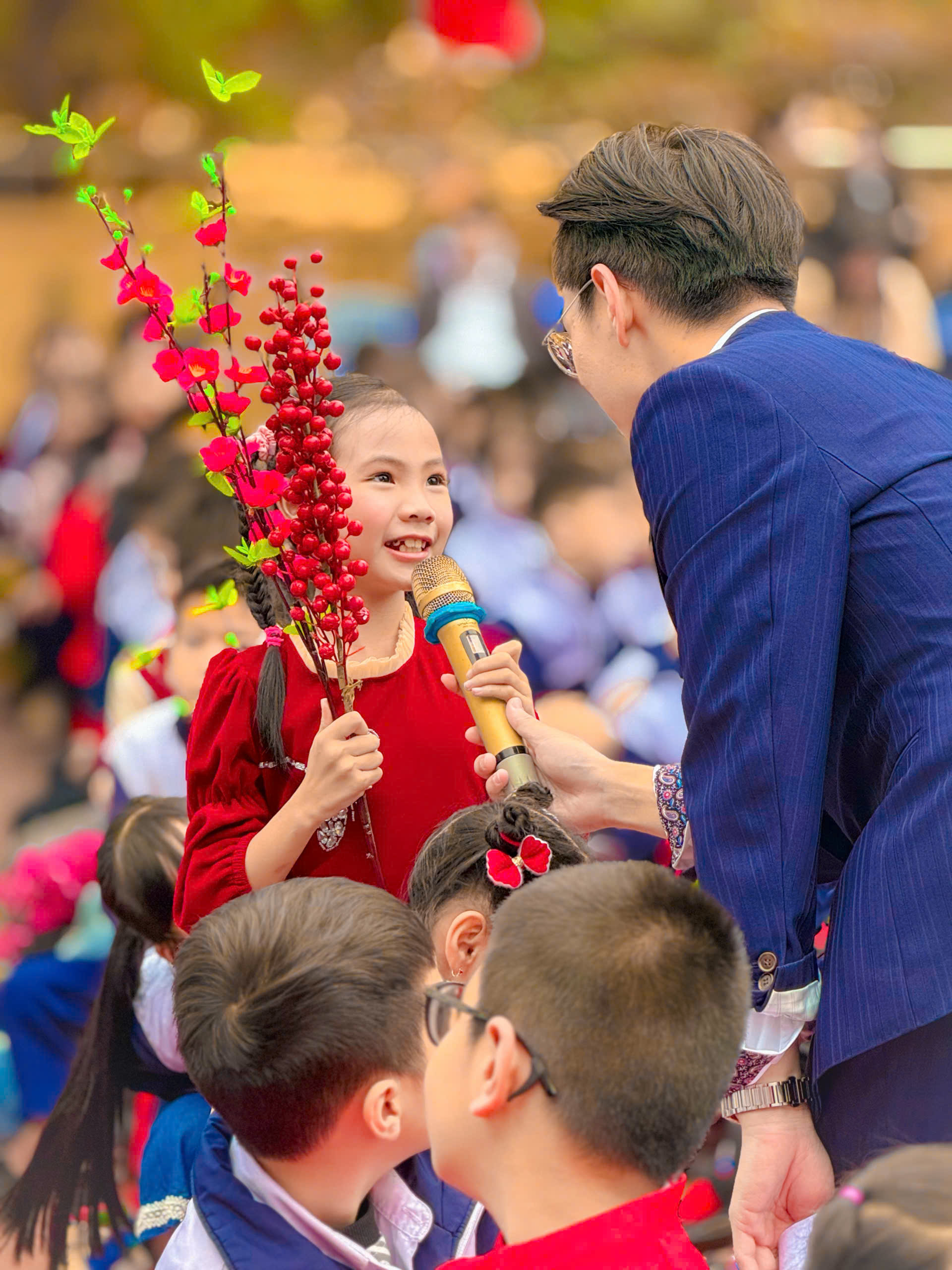 Ngay sau đó, không khí sân trường trở nên rộn ràng với các tiết mục văn nghệ chào xuân đặc sắc do chính các em học sinh biểu diễn. Những ca khúc tươi vui, những điệu múa tràn đầy năng lượng đã mang đến sắc xuân rực rỡ, lan tỏa niềm vui và sự hào hứng đến từng thầy cô, học sinh. Tiếng vỗ tay giòn giã, những nụ cười rạng rỡ chính là minh chứng rõ nét cho tinh thần phấn khởi khi năm mới gõ cửa.