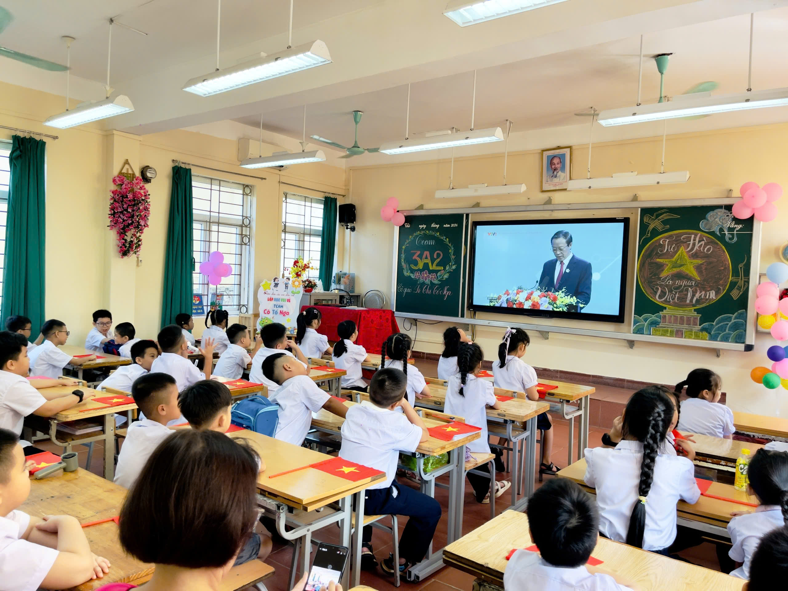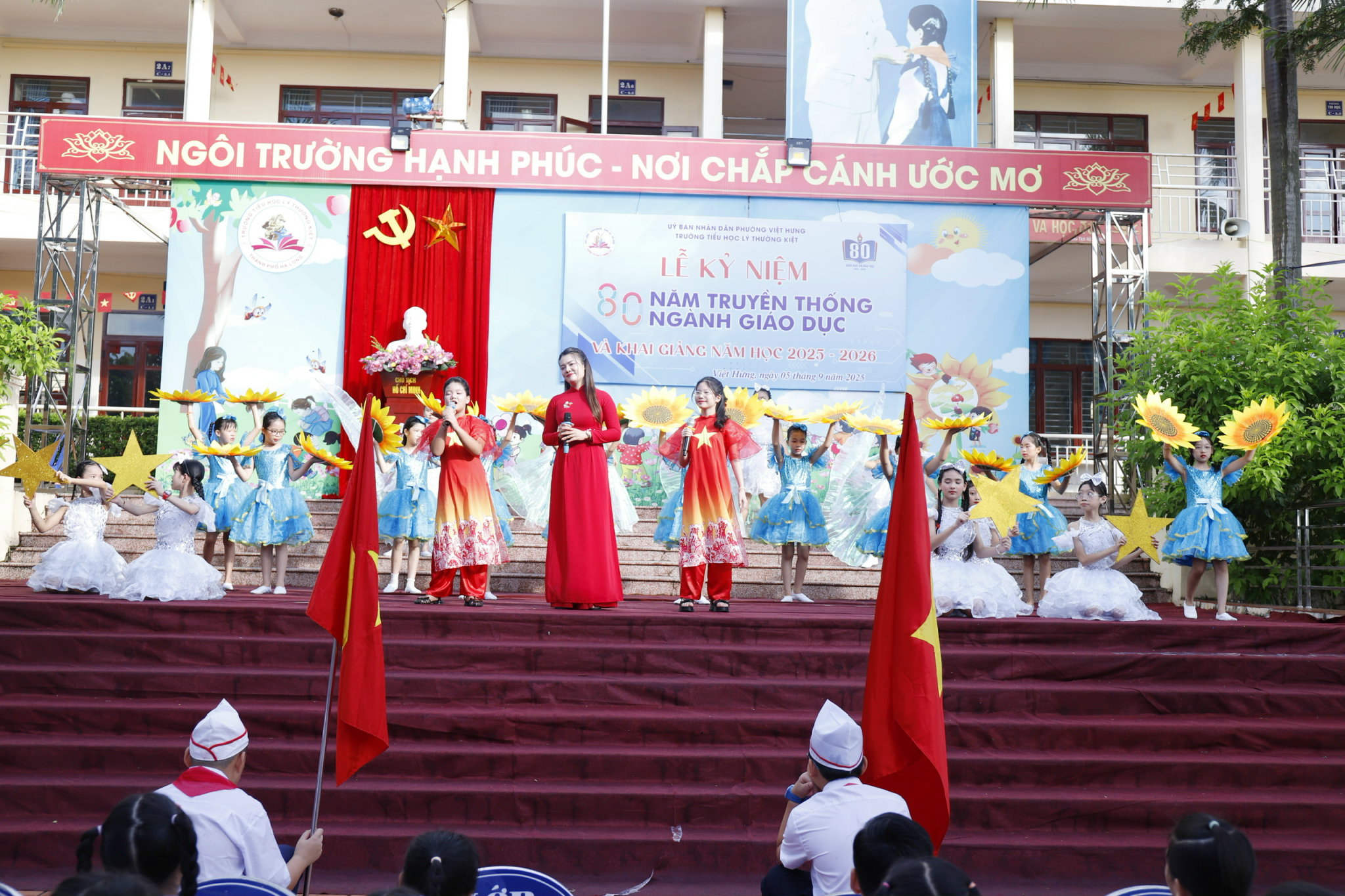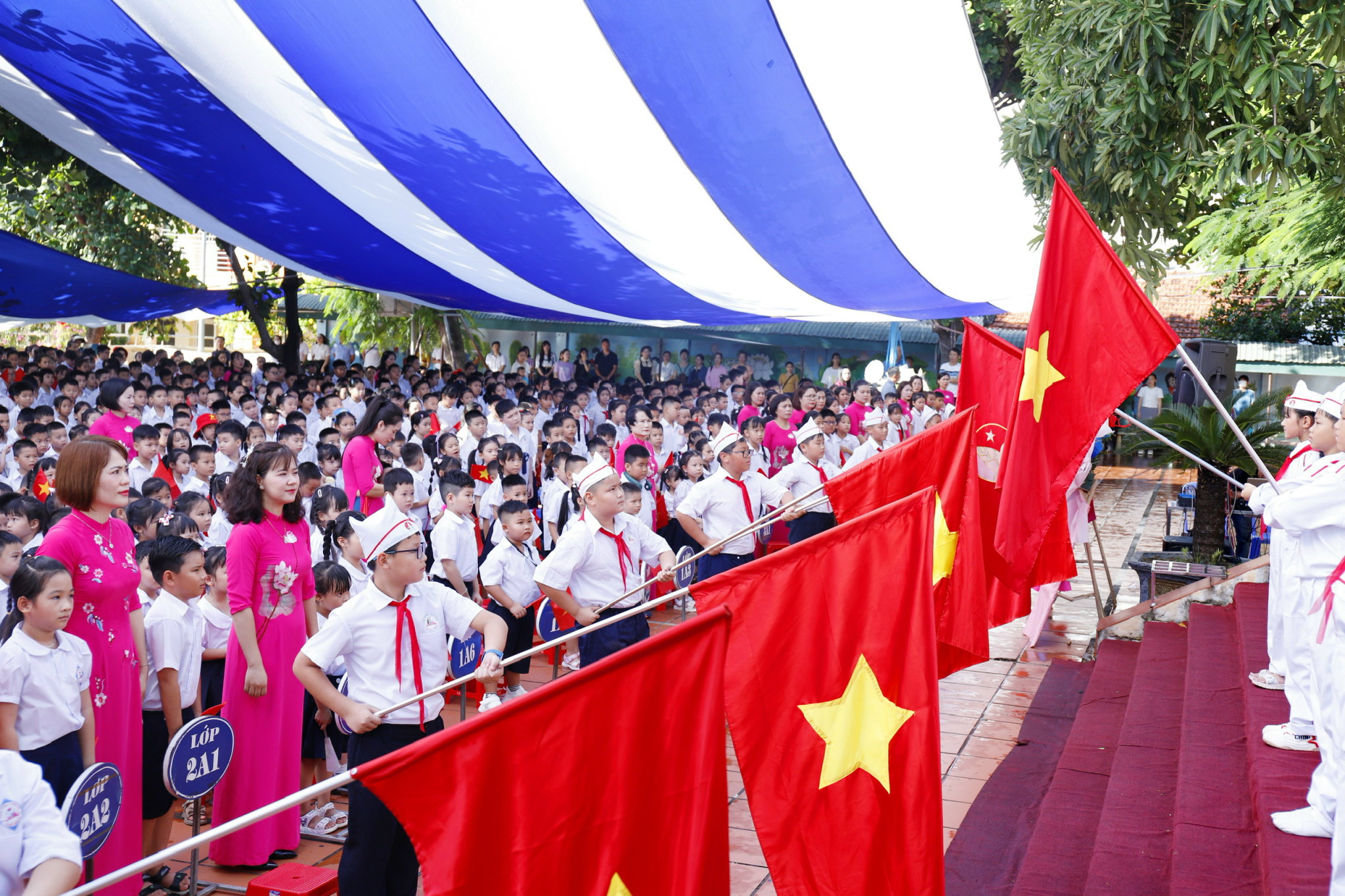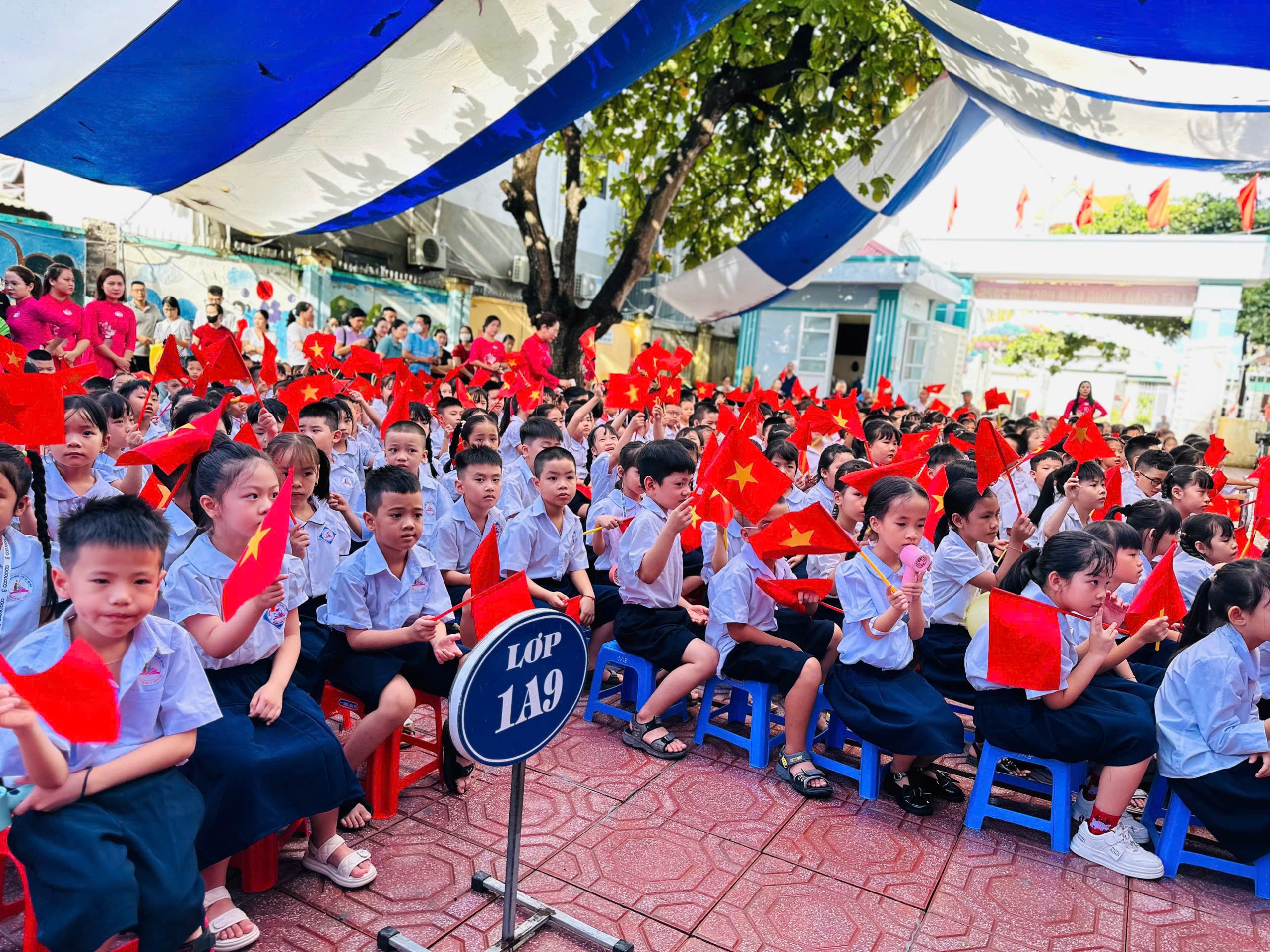 🌸 Các em học sinh hân hoan trong sắc cờ đỏ, nụ cười trong trẻo, ánh mắt đầy tin yêu.