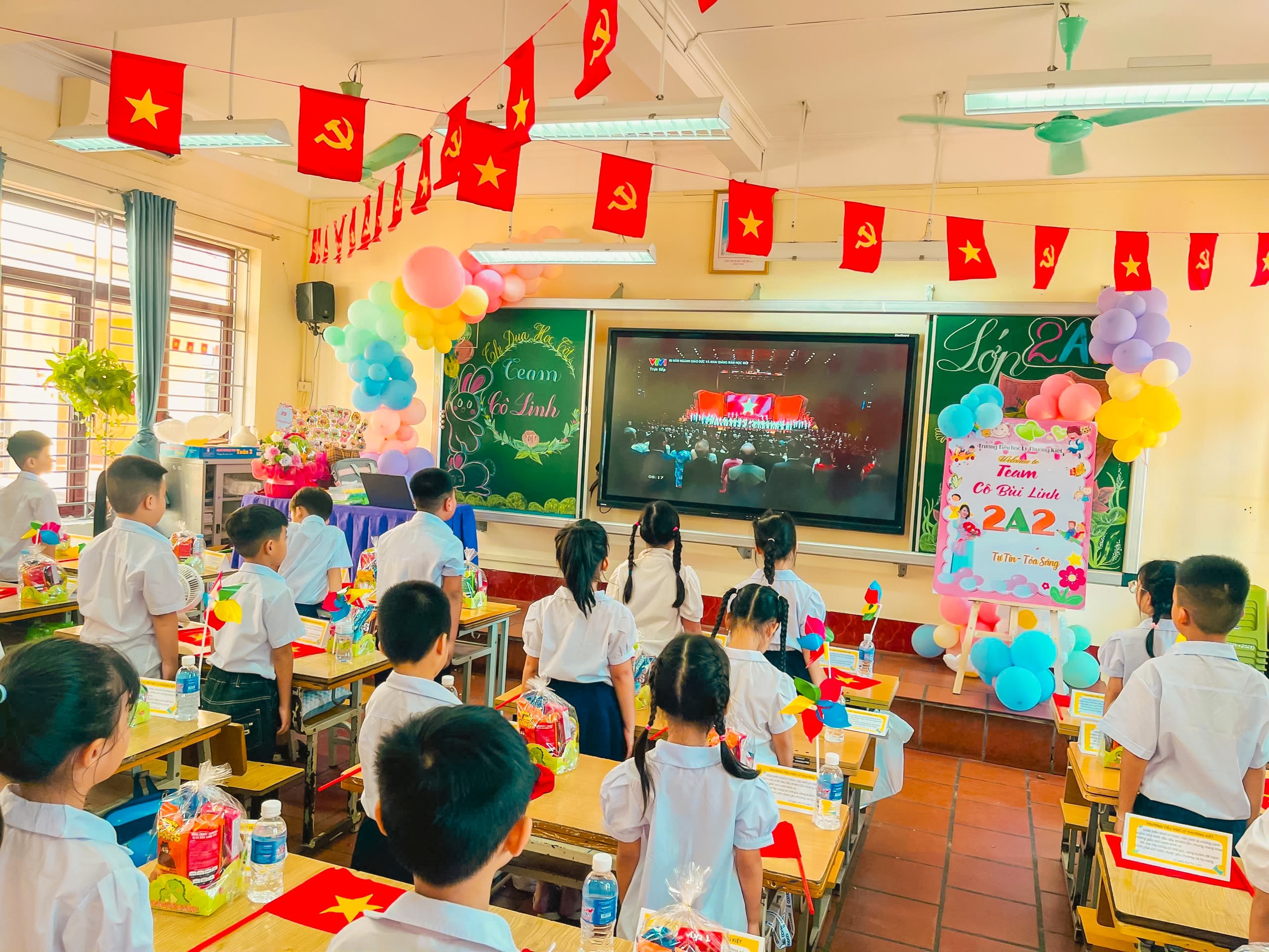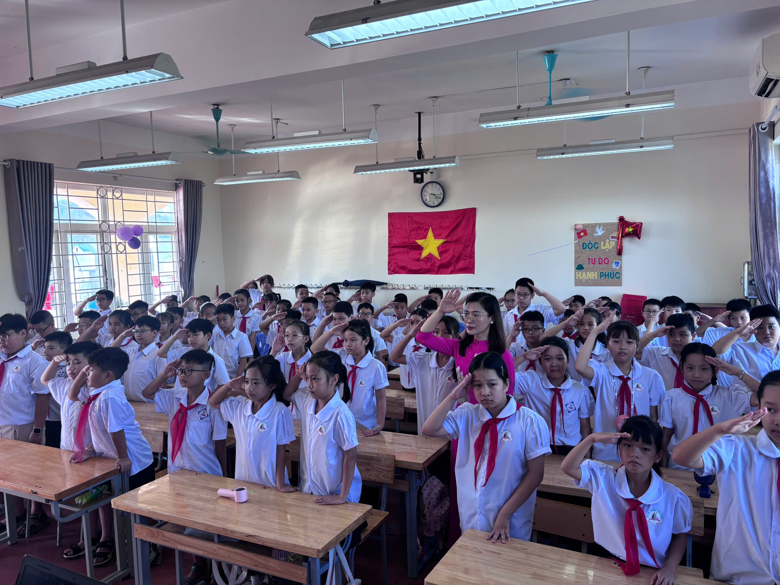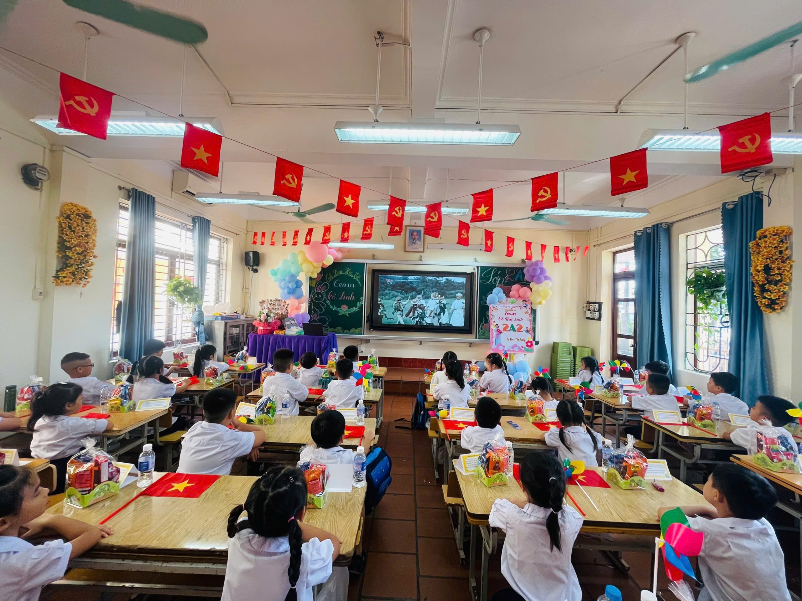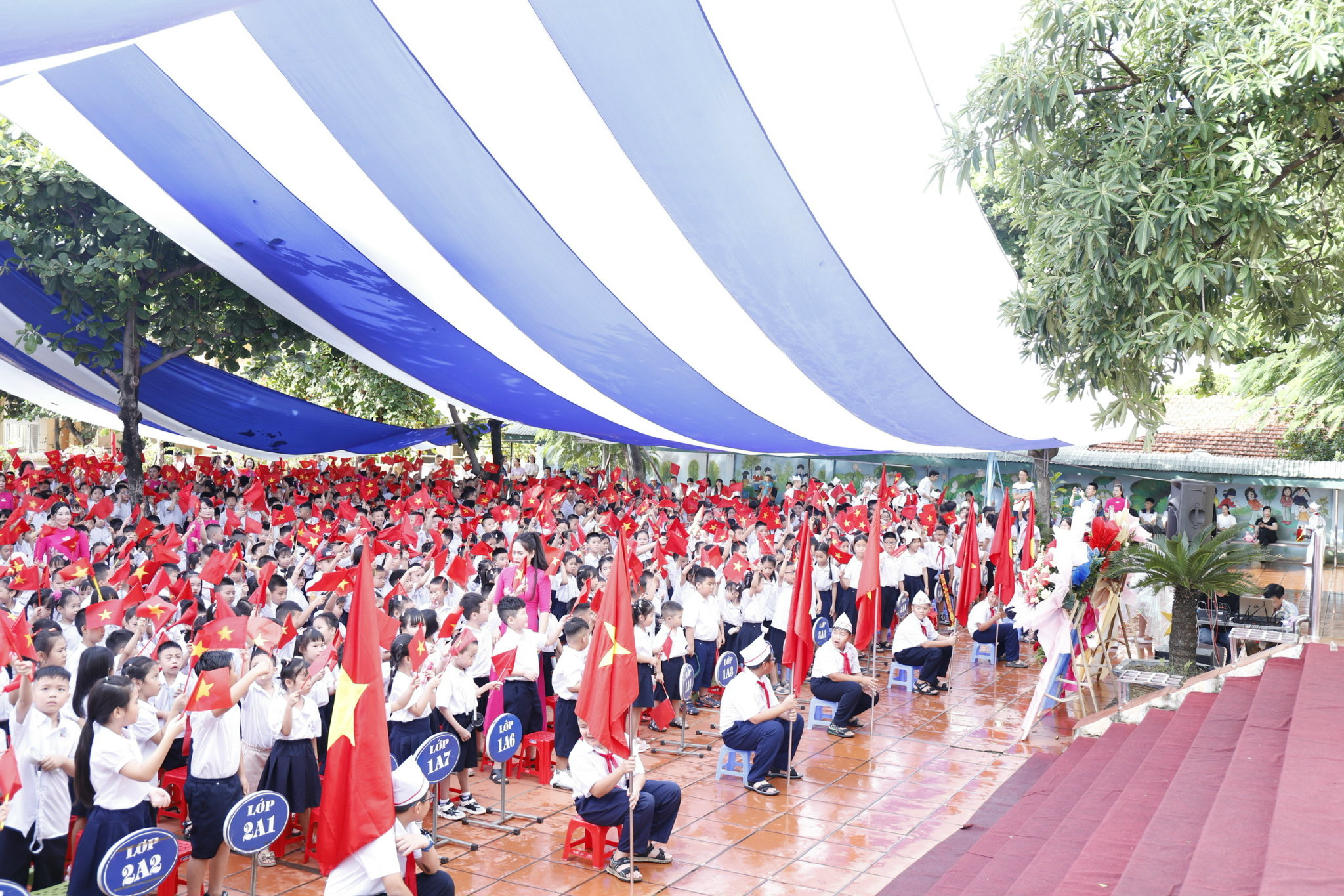 🌸 Các em học sinh hân hoan trong sắc cờ đỏ, nụ cười trong trẻo, ánh mắt đầy tin yêu.