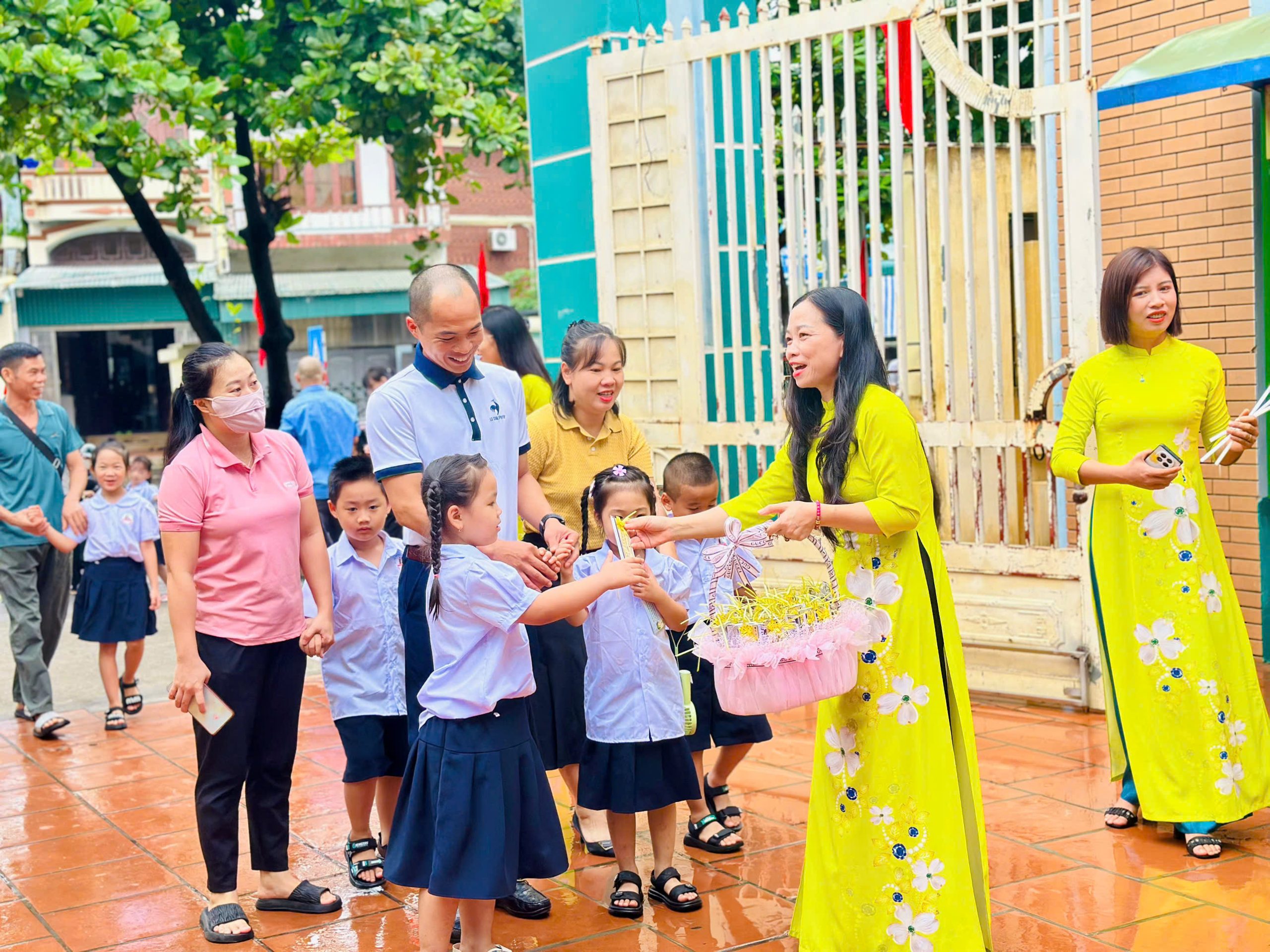 Trong niềm vui tươi phấn khởi, các em được bố mẹ ân cần đưa đến trường, được thầy cô giáo nồng nhiệt chào đón ngay từ cổng trường. Những món quà nhỏ xinh, dễ thương được trao tận tay như lời chúc may mắn, như tấm vé mở ra một hành trình học tập mới đầy ắp kỷ niệm.