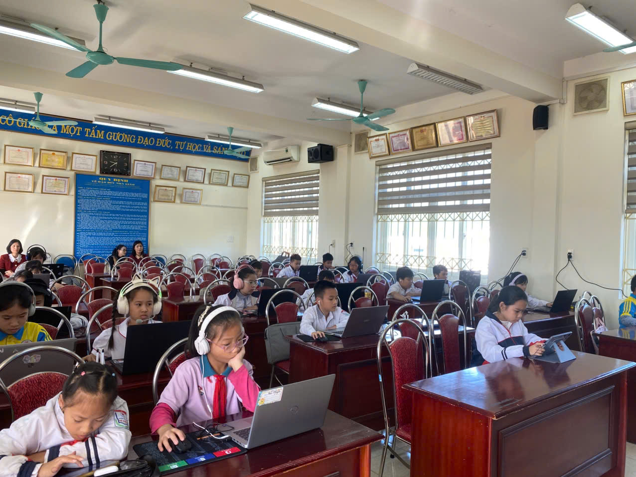 Kỳ thi diễn ra trong không khí sôi nổi, hào hứng. Các em không chỉ được rèn luyện kỹ năng Tiếng Anh mà còn được trau dồi bản lĩnh, sự tập trung và khả năng xử lý tình huống trong môi trường thi trực tuyến.