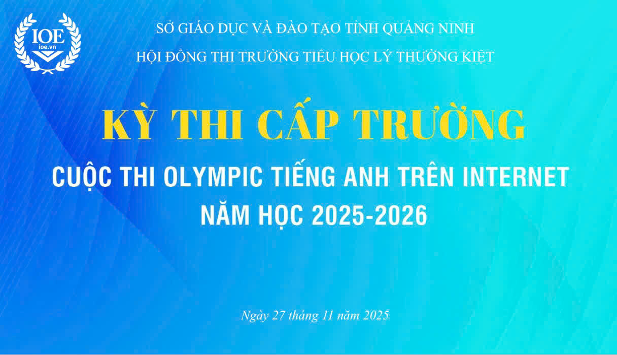 Sáng ngày 27/11/2025, Trường Tiểu học Lý Thường Kiệt đã tổ chức kỳ thi Olympic Tiếng Anh trên Internet (IOE) cấp trường năm học 2025–2026 tại cả hai cơ sở với 298 học sinh tham gia (Cơ sở 1: 210; Cơ sở 2: 88).
