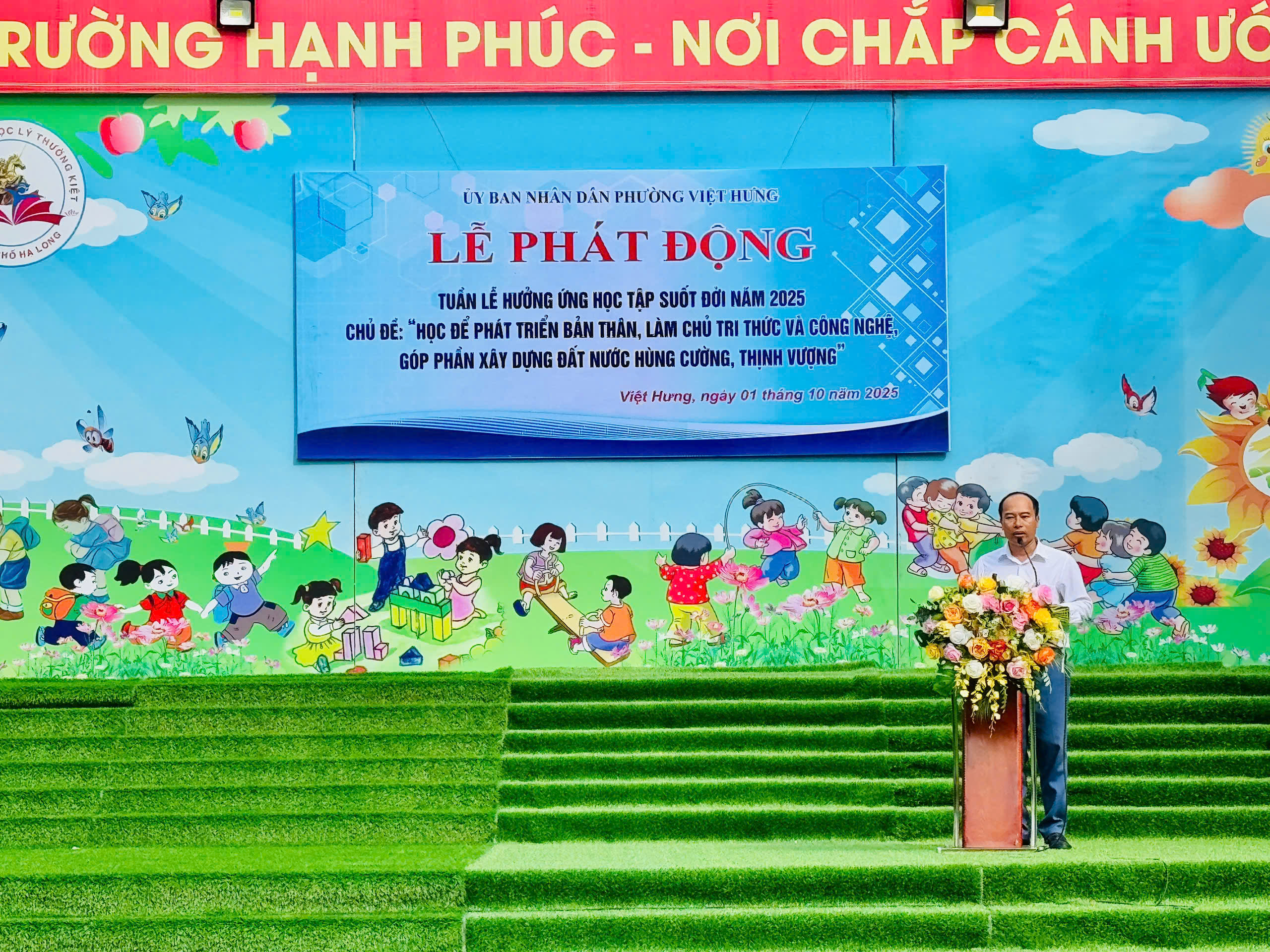 Thực hiện Kế hoạch của UBND phường Việt Hưng, từ ngày 01/10 đến 07/10/2025, Trường Tiểu học Lý Thường Kiệt tổ chức nhiều hoạt động sôi nổi, thiết thực nhằm lan tỏa tinh thần học tập suốt đời đến mỗi cán bộ, giáo viên, phụ huynh và học sinh.