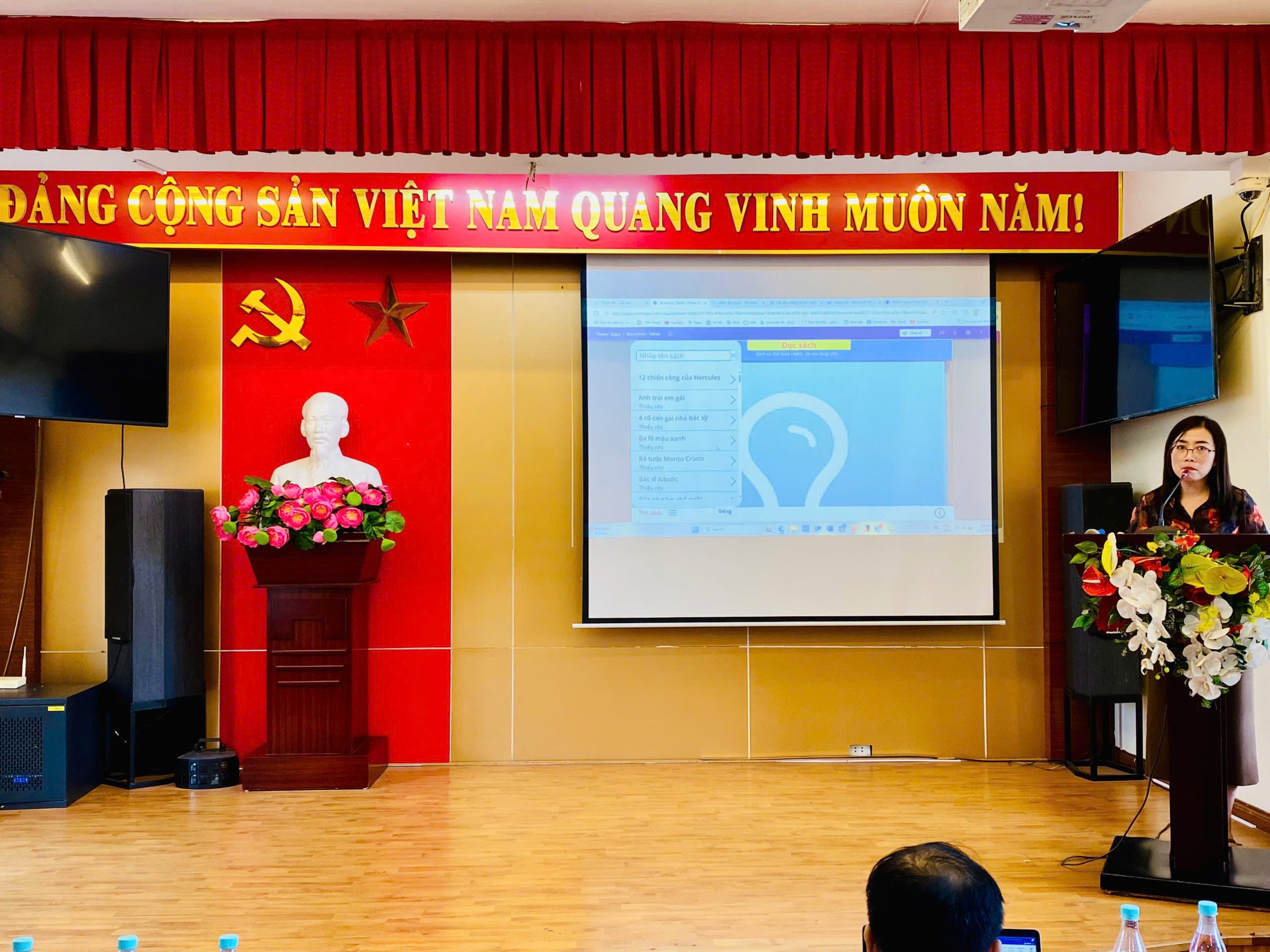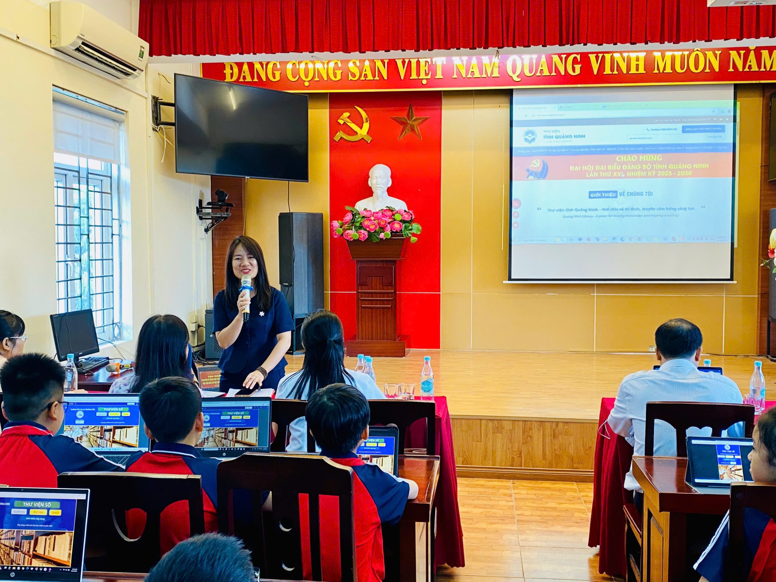 Cô Đào Thị Hoài Thu – Cán bộ Thư viện tỉnh Quảng Ninh chia sẻ về nội dung Ứng dụng kỹ năng số trong phát triển văn hóa đọc và học tập suốt