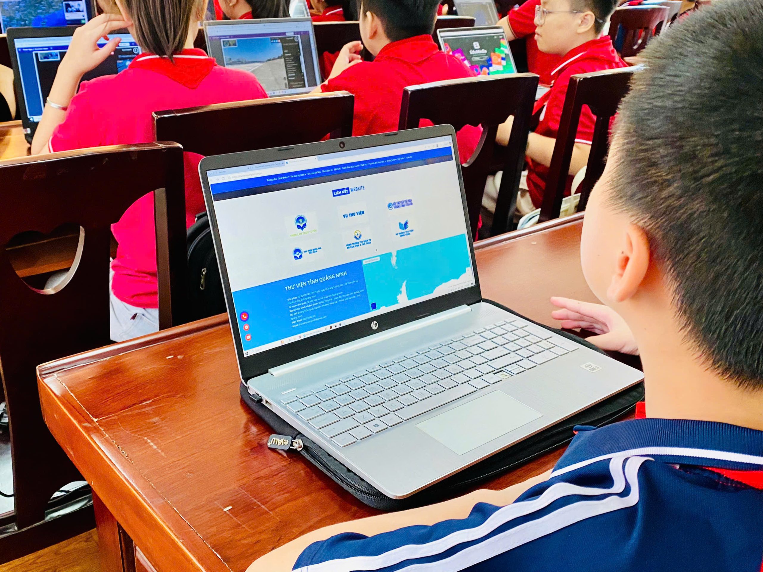 Học sinh khai thác Thư viện số, sôi nổi trao đổi với Thầy cô về cách sử dụng Thư viện số.