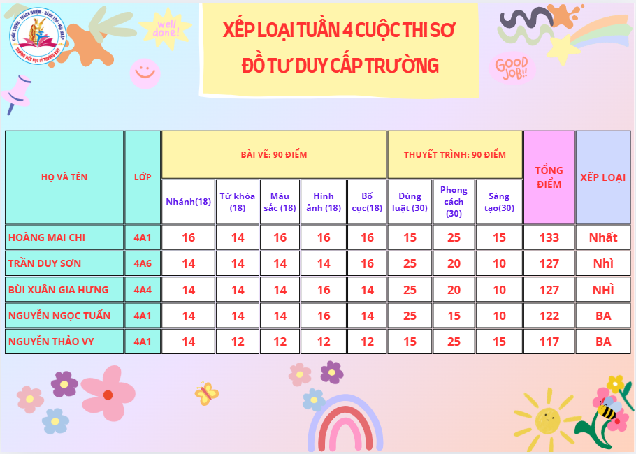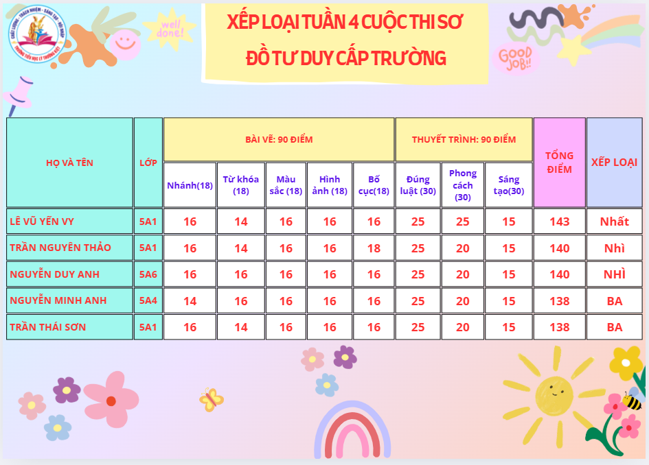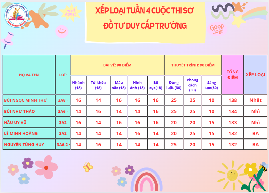Sau một tuần sôi nổi, cuộc thi “Sơ đồ tư duy cấp trường – Tuần 4” đã khép lại với thật nhiều tác phẩm đẹp mắt, đầy màu sắc và trí tuệ. 🌈
