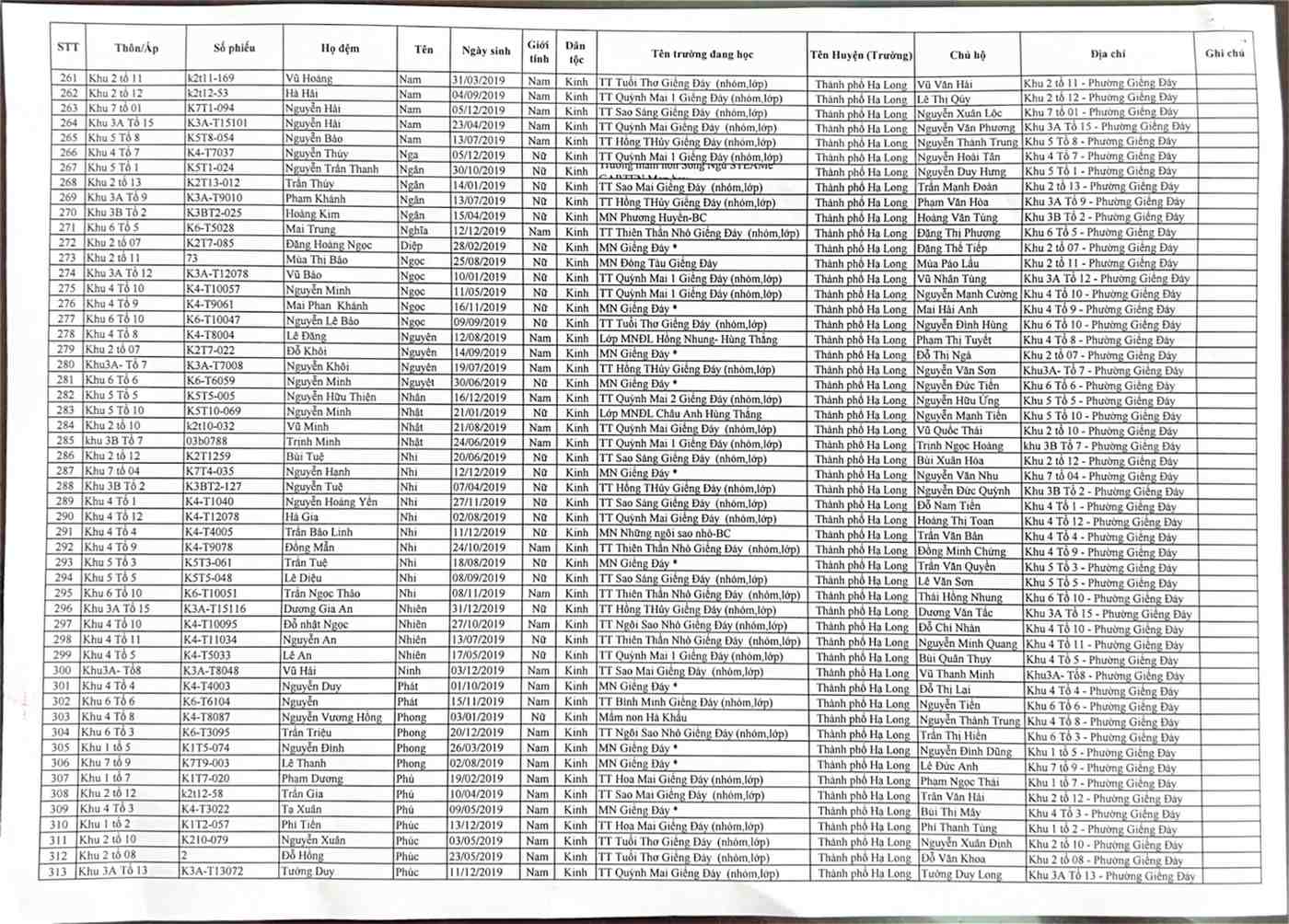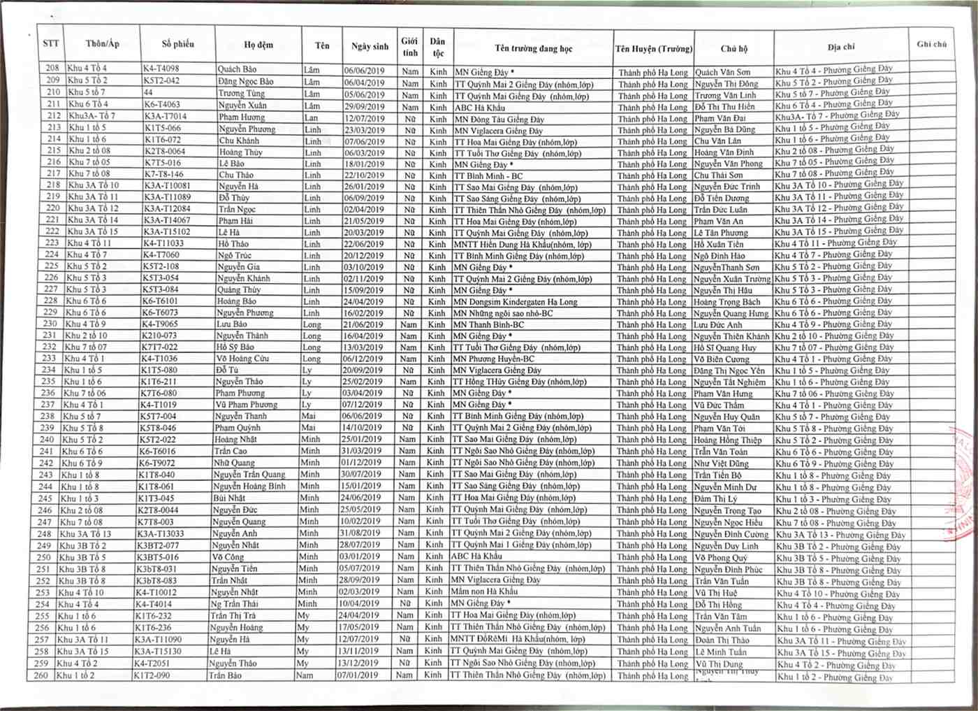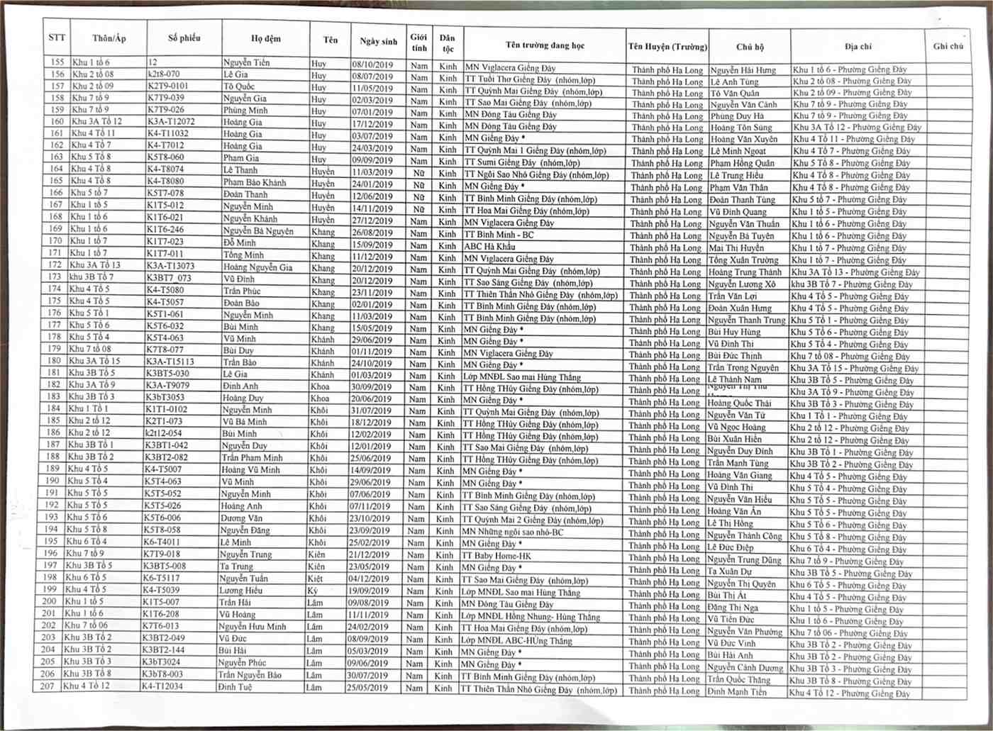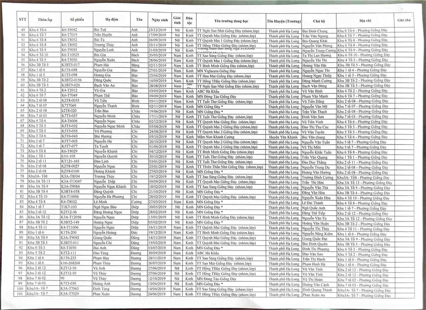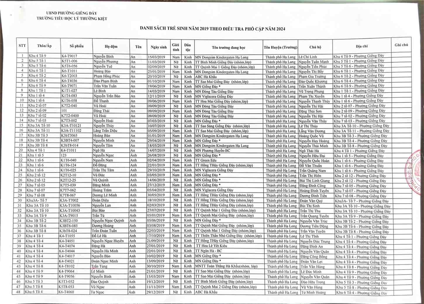 DANH SÁCH TRẺ SINH NĂM 2019 THEO SỐ LIỆU ĐIỀU TRA PHỔ CẬP NĂM 2024 ĐỦ ĐIỀU KIỆN THAM GIA TUYỂN SINH LỚP 1 NĂM HỌC 2025-2026 TẠI TRƯỜNG TH LÝ THƯỜNG KIỆT