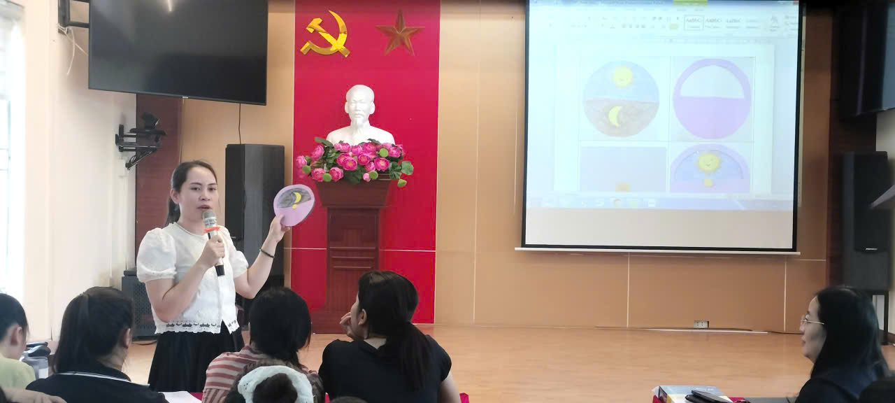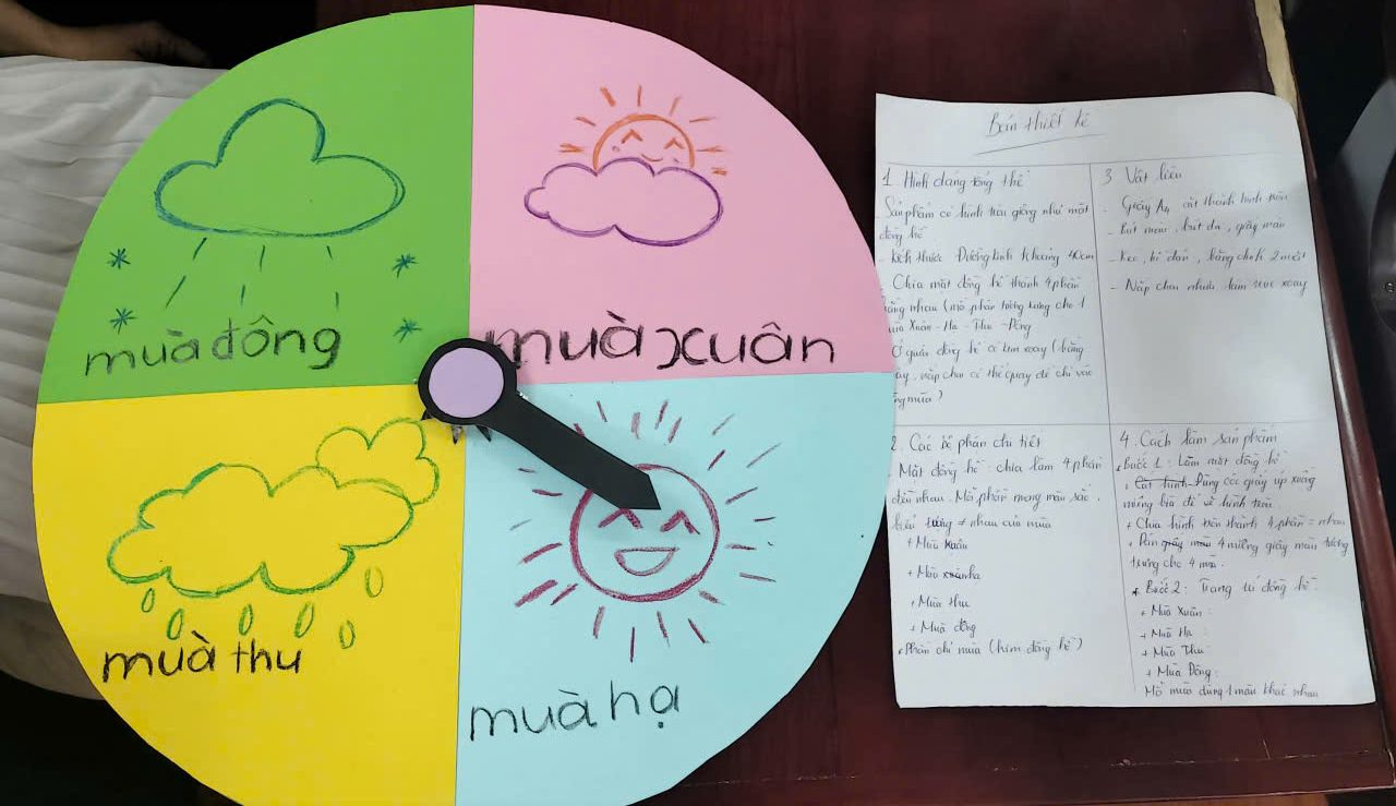 Phần thảo luận và thực hành nhóm đã diễn ra vô cùng sôi nổi và sáng tạo. Các thầy cô đã đưa ra nhiều ý tưởng tích hợp kiến thức các môn học như Khoa học, Toán, Công nghệ, Tin học… để giải quyết vấn đề thực tiễn gần gũi với học sinh như: mô hình ngày và đêm, mô hình bốn mùa trong năm, vòng tuần hoàn của nước trong tự nhiên, bản thiết kế xe ô tô cánh quạt chạy bằng pin v.v.