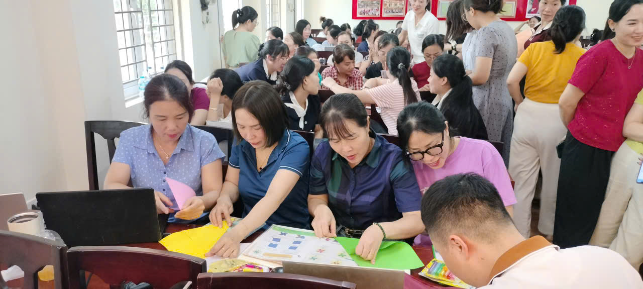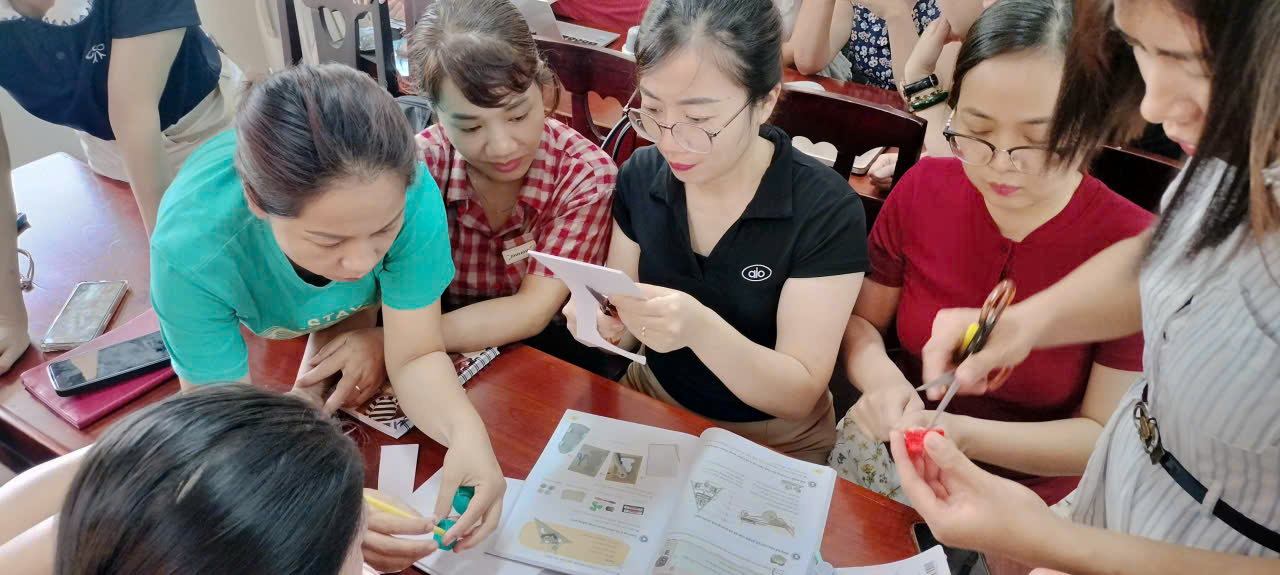 Giáo viên trường Tiểu học Lý Thường Kiệt tích cực làm việc nhóm để tạo ra những sản phẩm gắn liền với nội dung của bài dạy