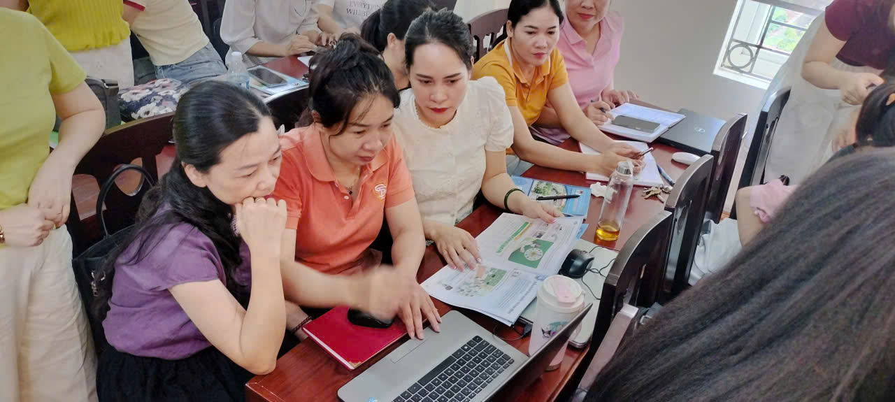 Thực hành nhóm: Giáo viên các khối lớp cùng nhau xây dựng ý tưởng, kế hoạch bài dạy STEM phù hợp với từng độ tuổi học sinh.