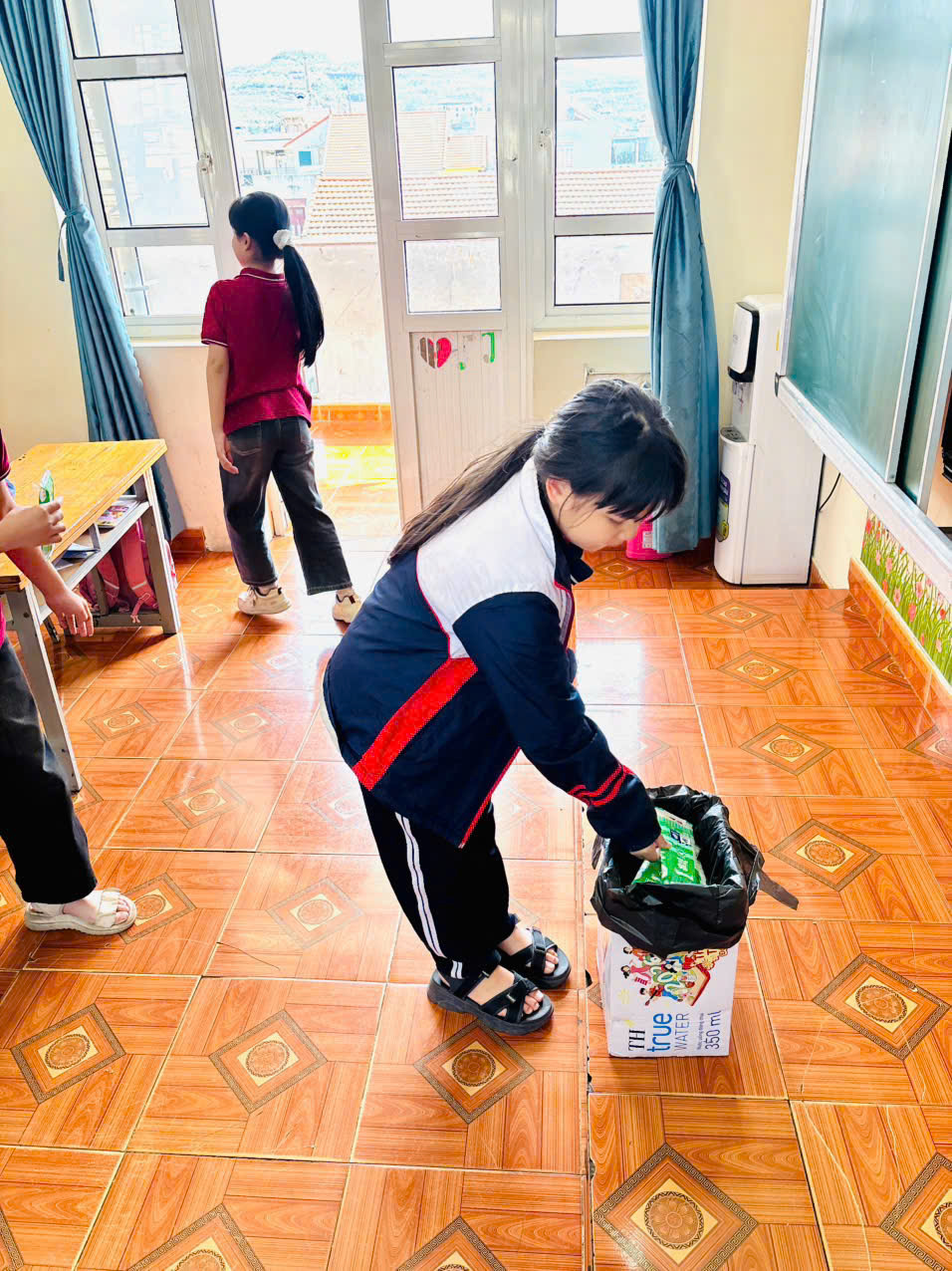 🔹 Ý thức tự giác và tinh thần trách nhiệm: Các thầy cô vô cùng tự hào khi thấy các em không chỉ tự giác thực hiện mà còn chủ động nhắc nhở bạn bè cùng tham gia. Hình ảnh những đôi bàn tay nhỏ nhắn cẩn thận gấp gọn từng chiếc vỏ hộp thực sự là một khoảnh khắc đẹp, minh chứng cho một thế hệ học sinh văn minh và yêu môi trường.