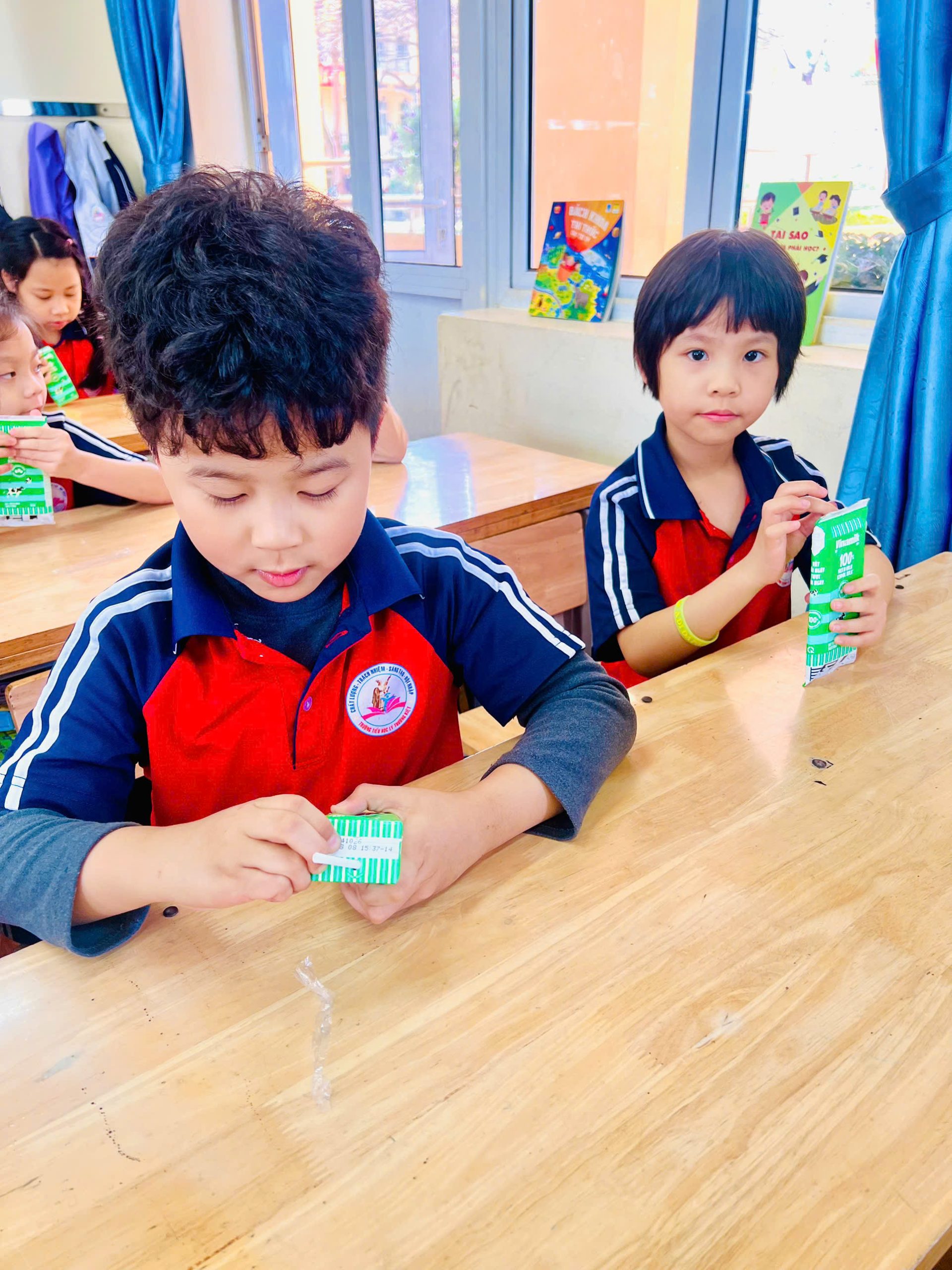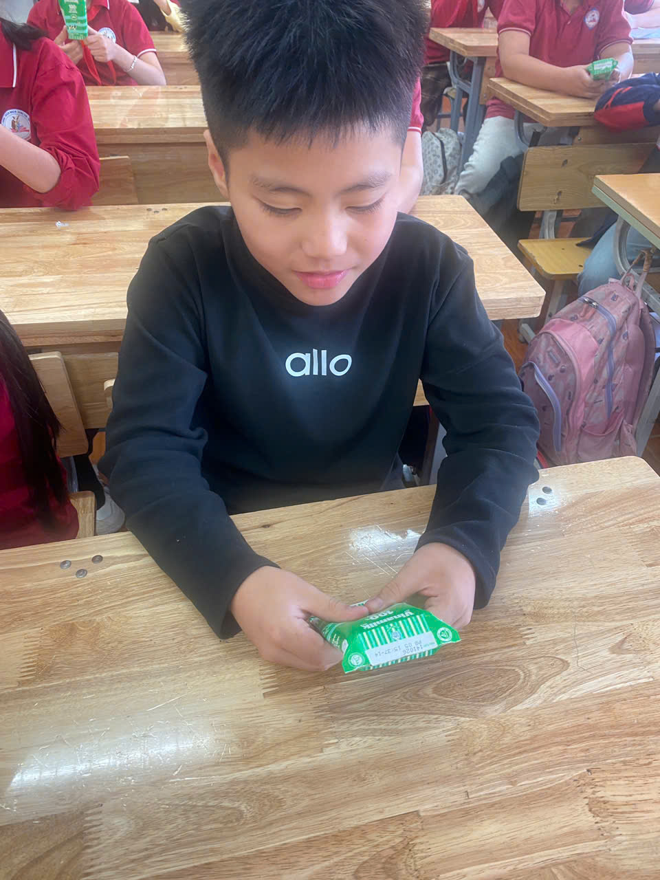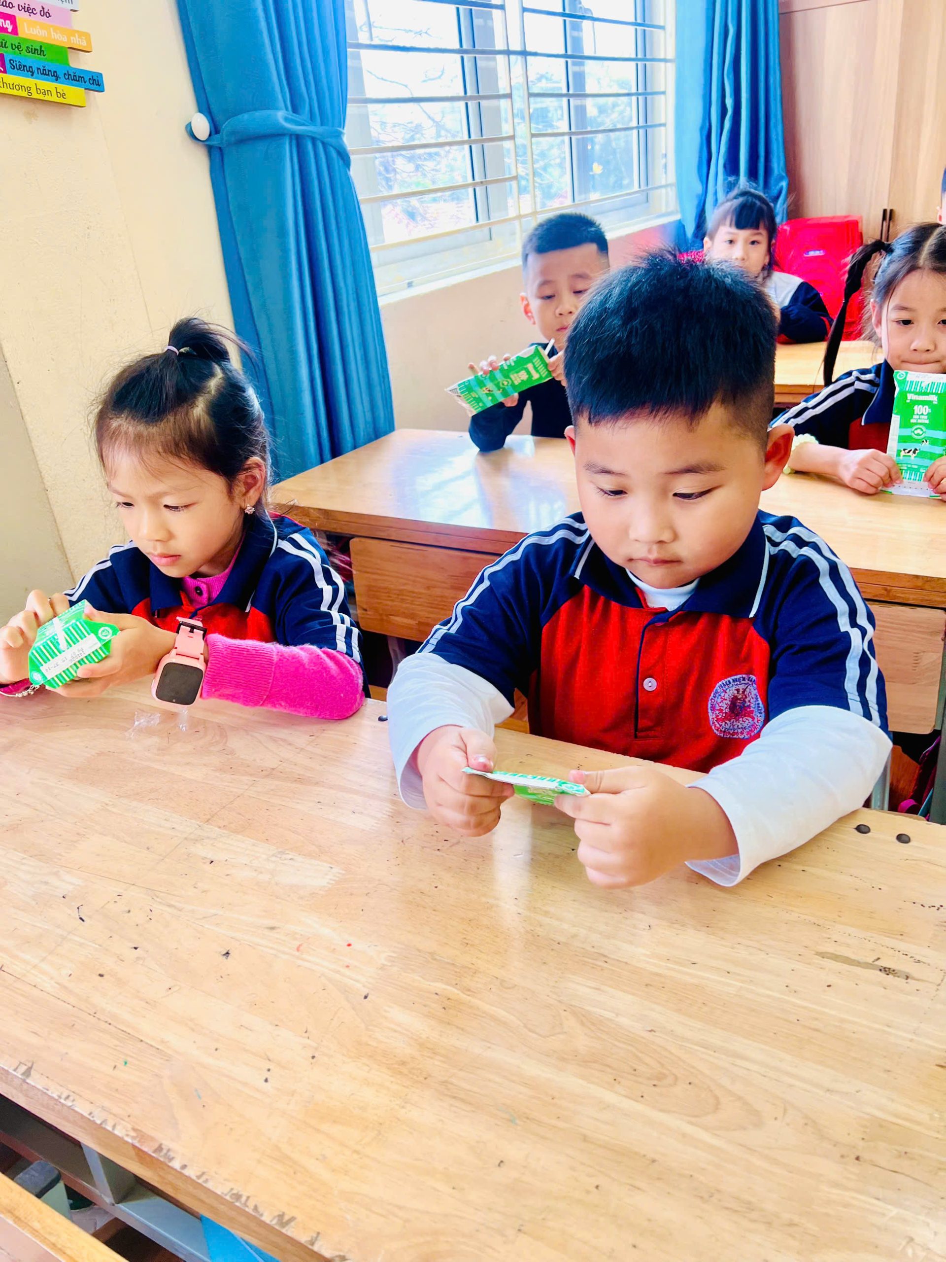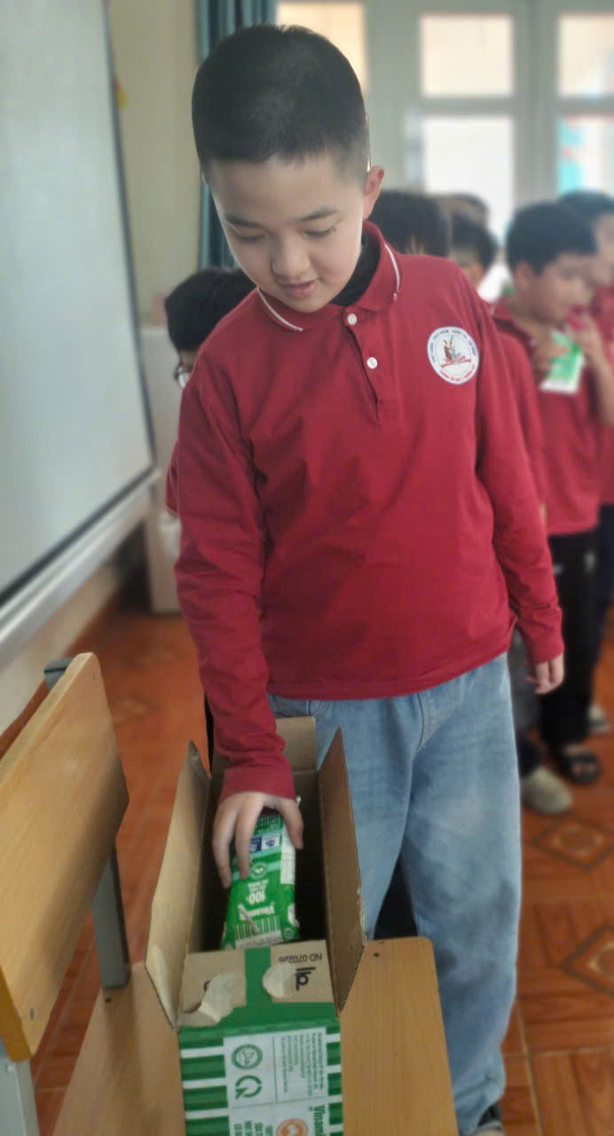 🔹 Hành động nhỏ, ý nghĩa lớn: Mỗi ngày, thay vì vứt bỏ trực tiếp vào thùng rác chung, những vỏ hộp sữa sau khi uống được các em học sinh cẩn thận làm dẹp và phân loại vào đúng khu vực quy định. Đây là một bước quan trọng giúp giảm thiểu rác thải khó phân hủy và tạo nguồn nguyên liệu để tái chế thành các vật dụng hữu ích.