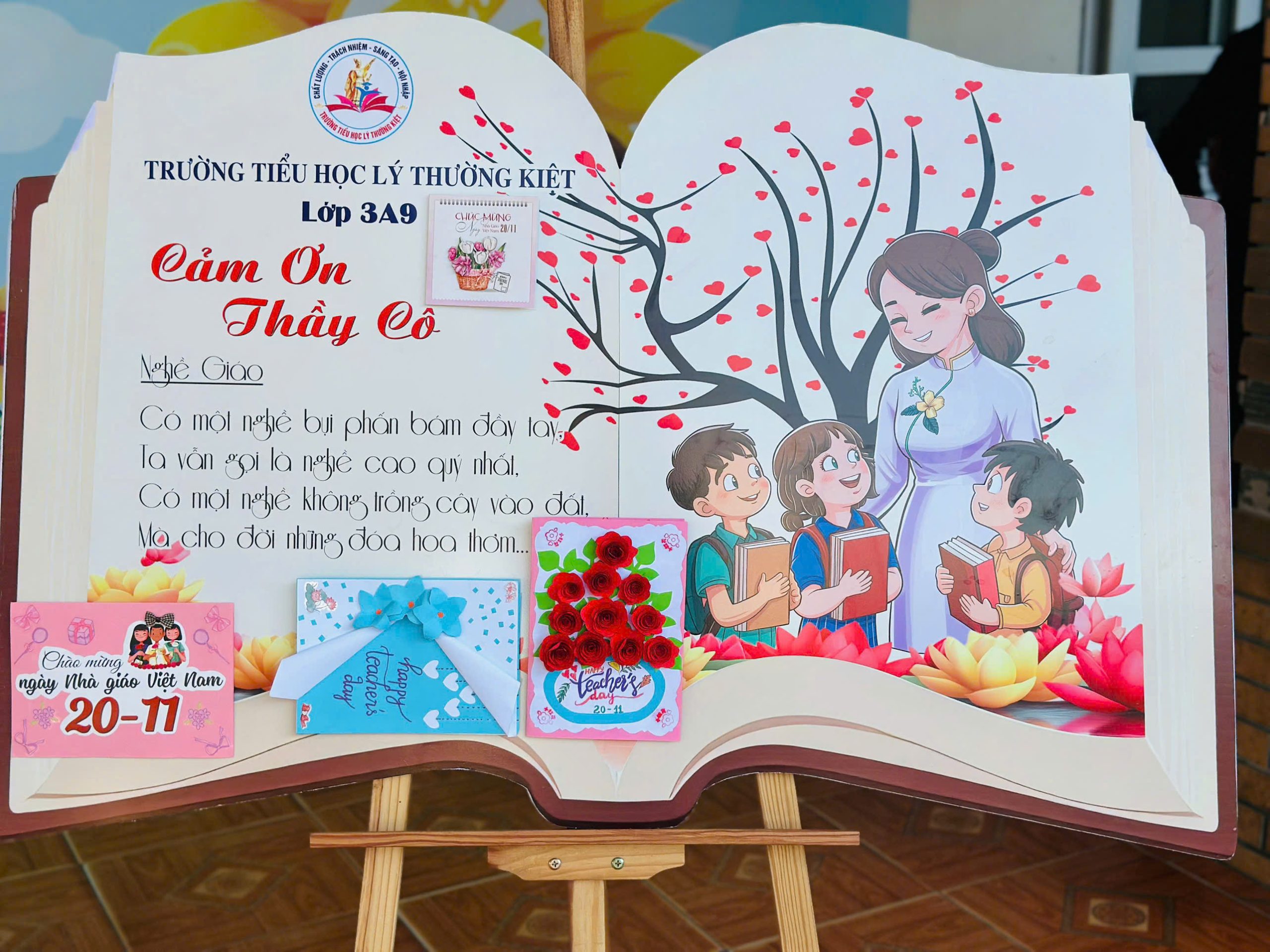 Hòa trong không khí tưng bừng, rộn ràng hướng về Ngày Nhà giáo Việt Nam 20/11, sáng ngày 13 tháng 11 năm 2025, học sinh khối 3 – Trường Tiểu học Lý Thường Kiệt đã tham gia hoạt động trải nghiệm đầy ý nghĩa với chủ đề “Làm bưu thiếp chúc mừng thầy cô giáo”. Đây là một hoạt động thiết thực nhằm bồi dưỡng cho các em lòng biết ơn, tình cảm yêu quý và sự trân trọng đối với những người thầy, người cô đã tận tâm dạy dỗ, dìu dắt các em trong học tập và rèn luyện. Buổi trải nghiệm được tổ chức tại sân trường Tiểu học Lý Thường Kiệt, trong không khí trong lành và đầy phấn khởi. Ngay từ đầu buổi sáng, sân trường đã trở nên rộn ràng, tươi vui với sắc màu rực rỡ của giấy, bút màu, kéo, hồ dán và những vật liệu trang trí. Dưới sự hướng dẫn tận tình của các thầy cô giáo, từng nhóm học sinh khối 3 đã cùng nhau say mê sáng tạo, khéo léo cắt dán, tô vẽ và viết nên những tấm bưu thiếp xinh xắn, tràn đầy tình cảm. Mỗi tấm bưu thiếp là một thông điệp yêu thương, là lời tri ân sâu sắc mà các em muốn gửi đến thầy cô – những người luôn tận tụy, kiên nhẫn và hết lòng vì học sinh thân yêu. Có em gửi gắm lời chúc giản dị mà ấm áp: “Em chúc cô luôn mạnh khỏe, vui vẻ và mãi yêu thương chúng em!”; có em lại thể hiện sự sáng tạo qua hình ảnh ngộ nghĩnh, màu sắc tươi sáng, thể hiện niềm vui và lòng kính trọng đối với thầy cô giáo. Hoạt động trải nghiệm không chỉ giúp các em rèn luyện sự khéo léo, khả năng thẩm mỹ và tư duy sáng tạo, mà quan trọng hơn là bồi dưỡng cho các em tình cảm biết ơn, lòng nhân ái và ý thức “Tôn sư trọng đạo” – một truyền thống quý báu của dân tộc Việt Nam. Thông qua hoạt động này, học sinh khối 3 đã có cơ hội thể hiện tình cảm yêu thương, sự tri ân bằng những việc làm nhỏ bé nhưng chan chứa ý nghĩa. Kết thúc buổi trải nghiệm, những tấm bưu thiếp rực rỡ sắc màu đã hoàn thành, mang theo niềm vui, sự tự hào và lòng kính yêu thầy cô của các em học sinh. Hoạt động “Làm bưu thiếp tri ân thầy cô” đã mang đến cho các em một buổi sáng thật bổ ích, góp phần tạo nên không khí ấm áp, tươi vui trong những ngày tháng 11 tri ân đầy ý nghĩa.