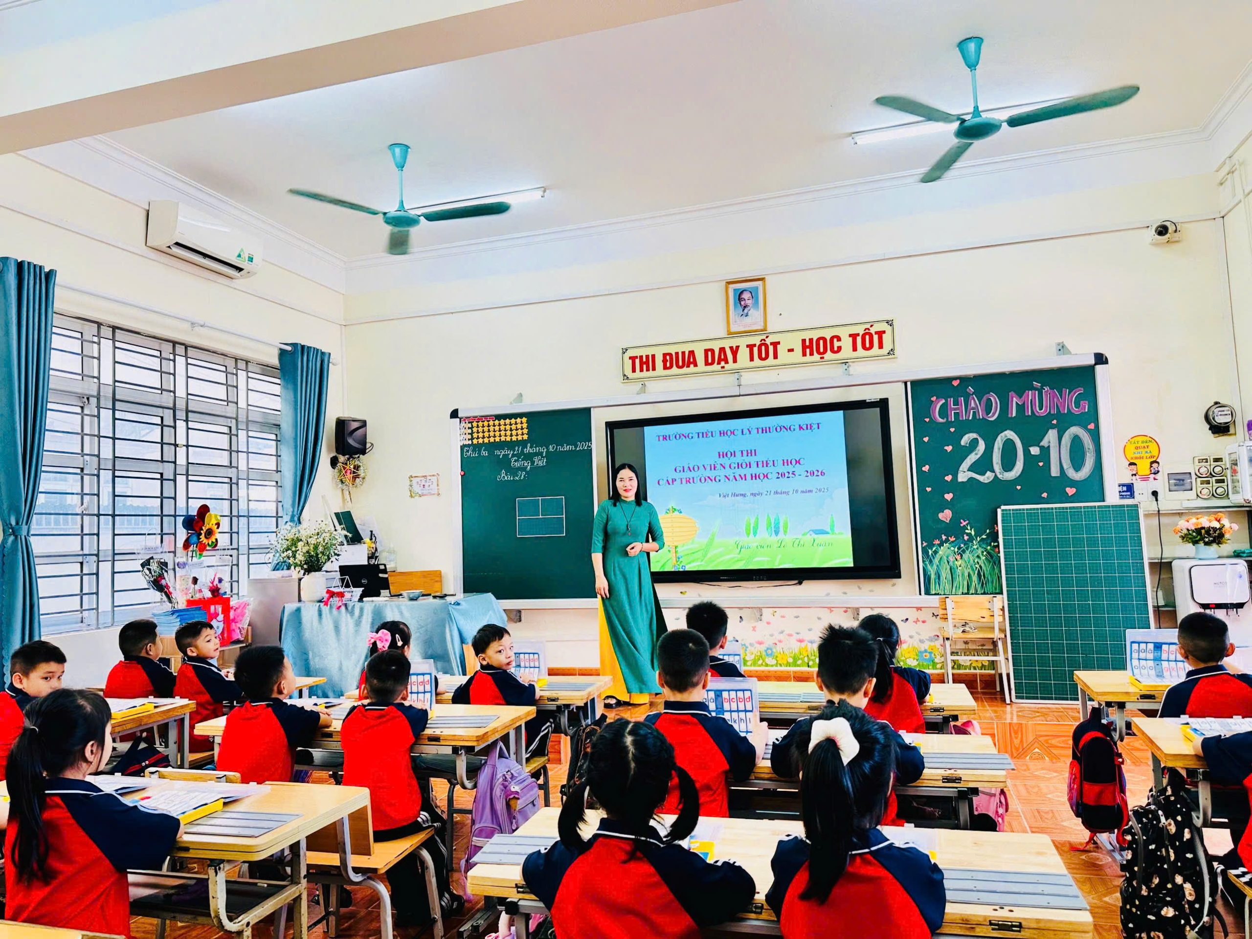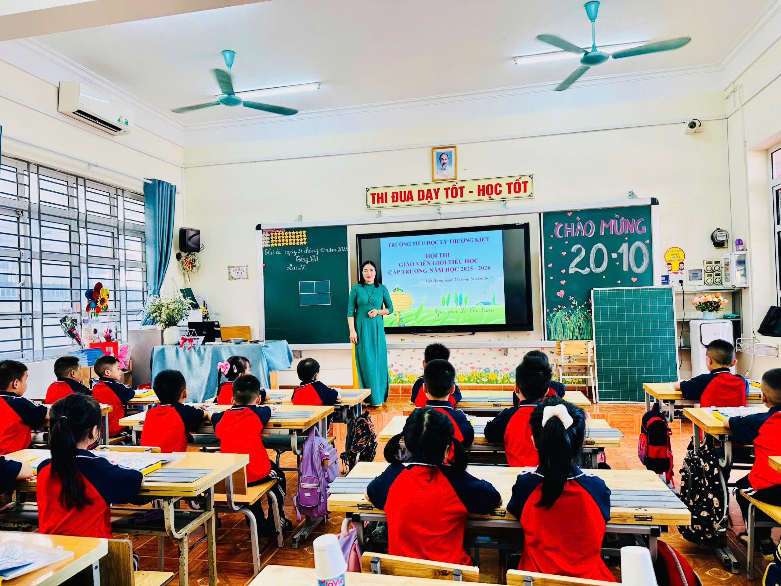 Trong không khí thi đua sôi nổi chào mừng ngày Nhà giáo Việt Nam 20/11, Trường Tiểu học Lý Thường Kiệt đã long trọng tổ chức Hội thi Giáo viên dạy giỏi cấp trường năm học 2025–2026. Hội thi nhằm tôn vinh năng lực sư phạm, khuyến khích tinh thần tự học – tự bồi dưỡng và lan tỏa tình yêu nghề của đội ngũ giáo viên trong toàn trường. Hội thi diễn ra sôi nổi với phần dự thi của 29 giáo viên qua hai nội dung: (1) Trình bày biện pháp (2) Giảng dạy một tiết học Ở phần Trình bày biện pháp, các cô giáo đã thể hiện sự đầu tư nghiêm túc, trình bày những giải pháp sáng tạo và thiết thực hướng tới nâng cao chất lượng giảng dạy. Nhiều biện pháp mang tính khoa học, khả thi cao, phản ánh tinh thần đổi mới và nỗ lực nghiên cứu của mỗi giáo viên. Phần Giảng dạy diễn ra sôi nổi với những tiết học được chuẩn bị chu đáo, sinh động và phù hợp đặc điểm lứa tuổi học sinh. Các cô giáo đã vận dụng linh hoạt phương pháp dạy học hiện đại, phát huy tính tích cực của học sinh, tạo không khí học tập hứng khởi và hiệu quả. Mỗi tiết dạy đều thể hiện sự tận tâm, trách nhiệm và lòng yêu nghề của đội ngũ giáo viên nhà trường. Ban giám khảo ghi nhận sự cố gắng đáng trân trọng của 29 giáo viên tham dự, đánh giá hội thi có chất lượng chuyên môn đồng đều, minh chứng cho quá trình nỗ lực bồi dưỡng nghiệp vụ của tập thể sư phạm nhà trường. Hội thi đã khép lại, nhưng tinh thần học hỏi, đổi mới và tình yêu nghề của các cô giáo tiếp tục lan tỏa, góp phần nâng cao chất lượng giáo dục và xây dựng Trường Tiểu học Lý Thường Kiệt ngày càng phát triển vững mạnh.