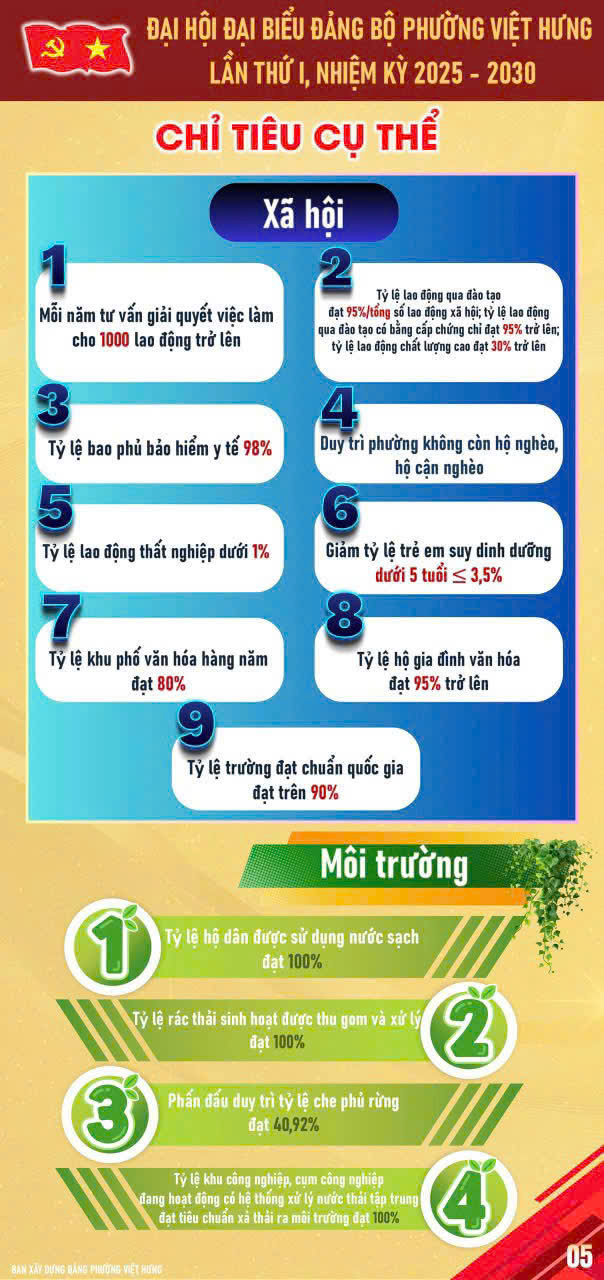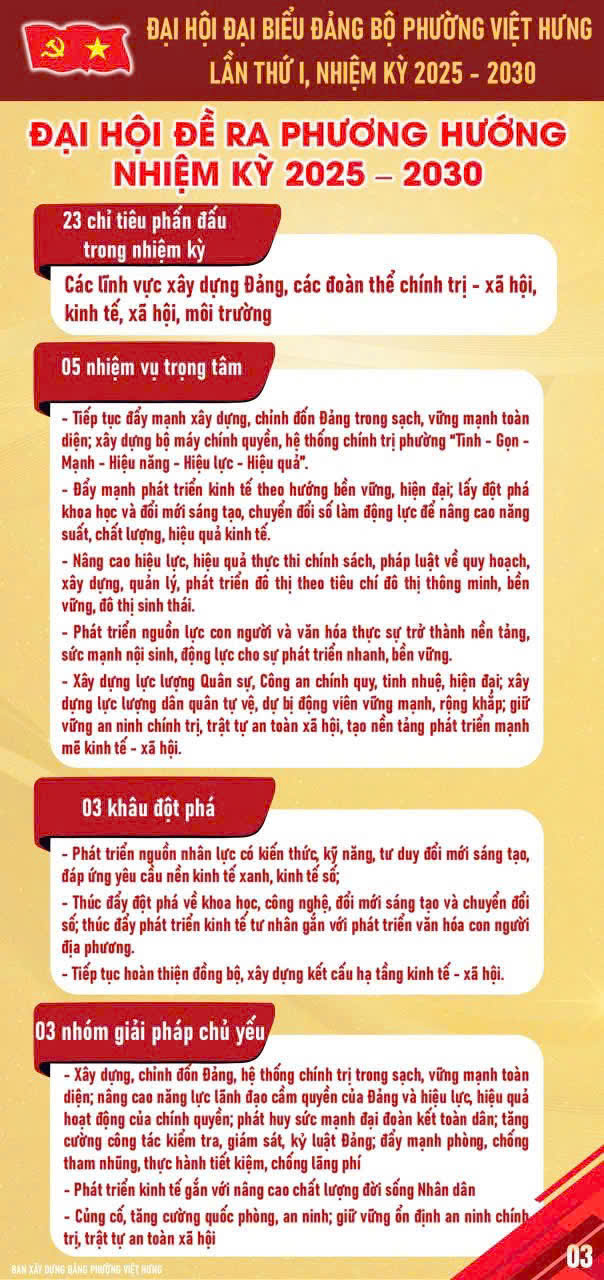 ✅ Đề ra phương hướng, mục tiêu, nhiệm vụ nhiệm kỳ 2025 – 2030, nhằm xây dựng phường Việt Hưng phát triển đồng bộ, hiện đại, văn minh và bền vững.
