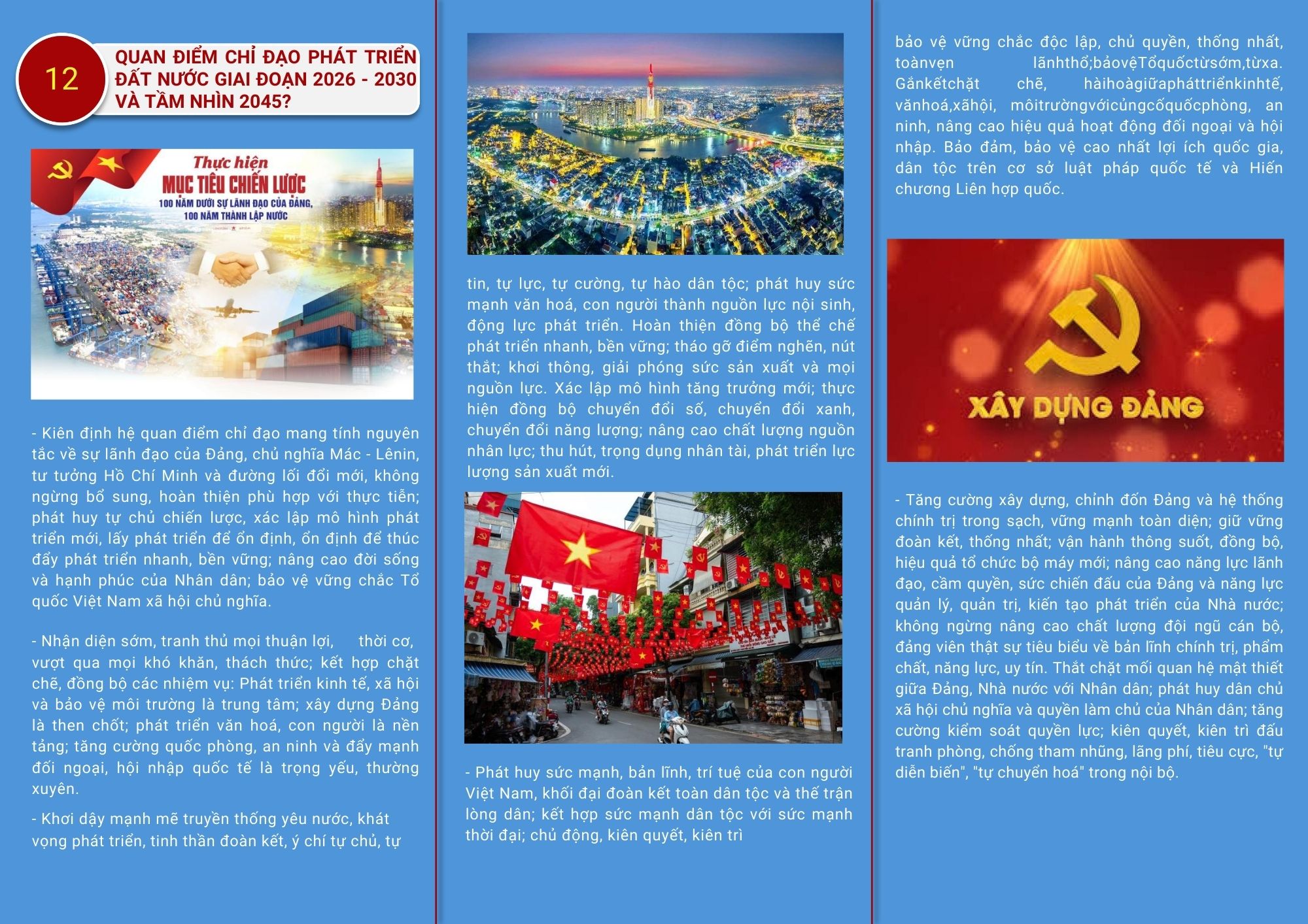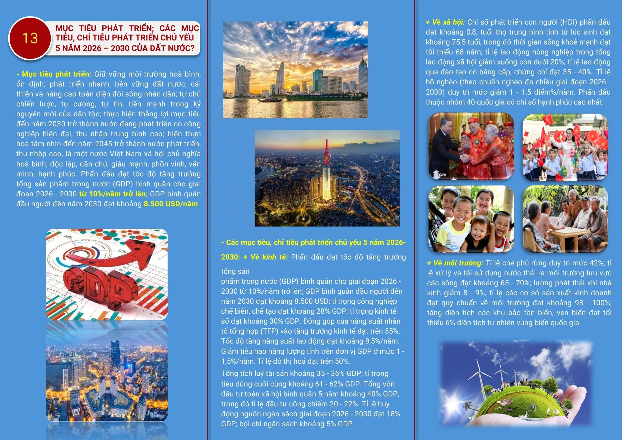 📌 Mục tiêu vươn tầm thế giới: * Đại hội hướng tới mục tiêu năm 2030, nước ta sẽ là nước đang phát triển có công nghiệp hiện đại, thu nhập trung bình cao.