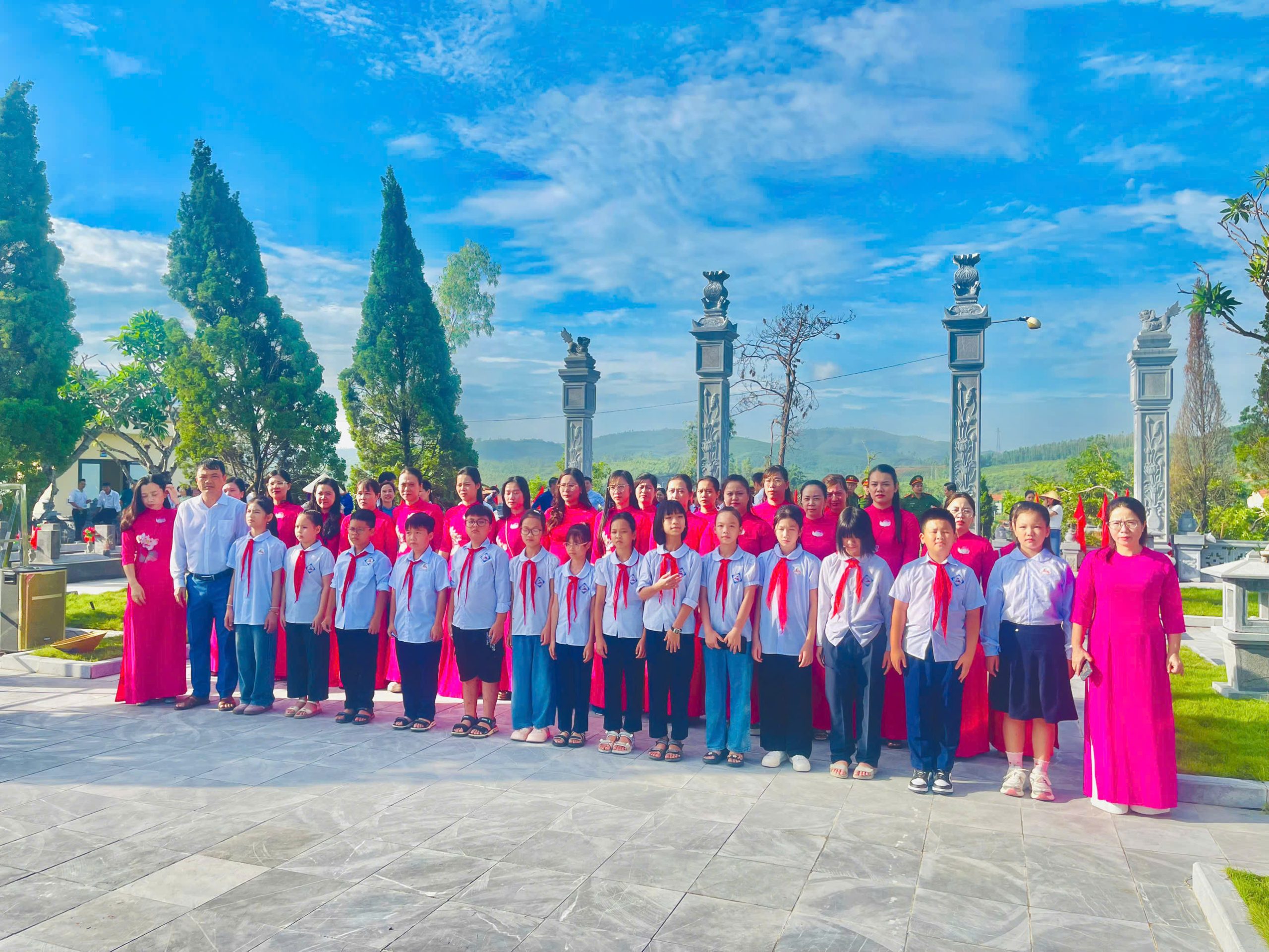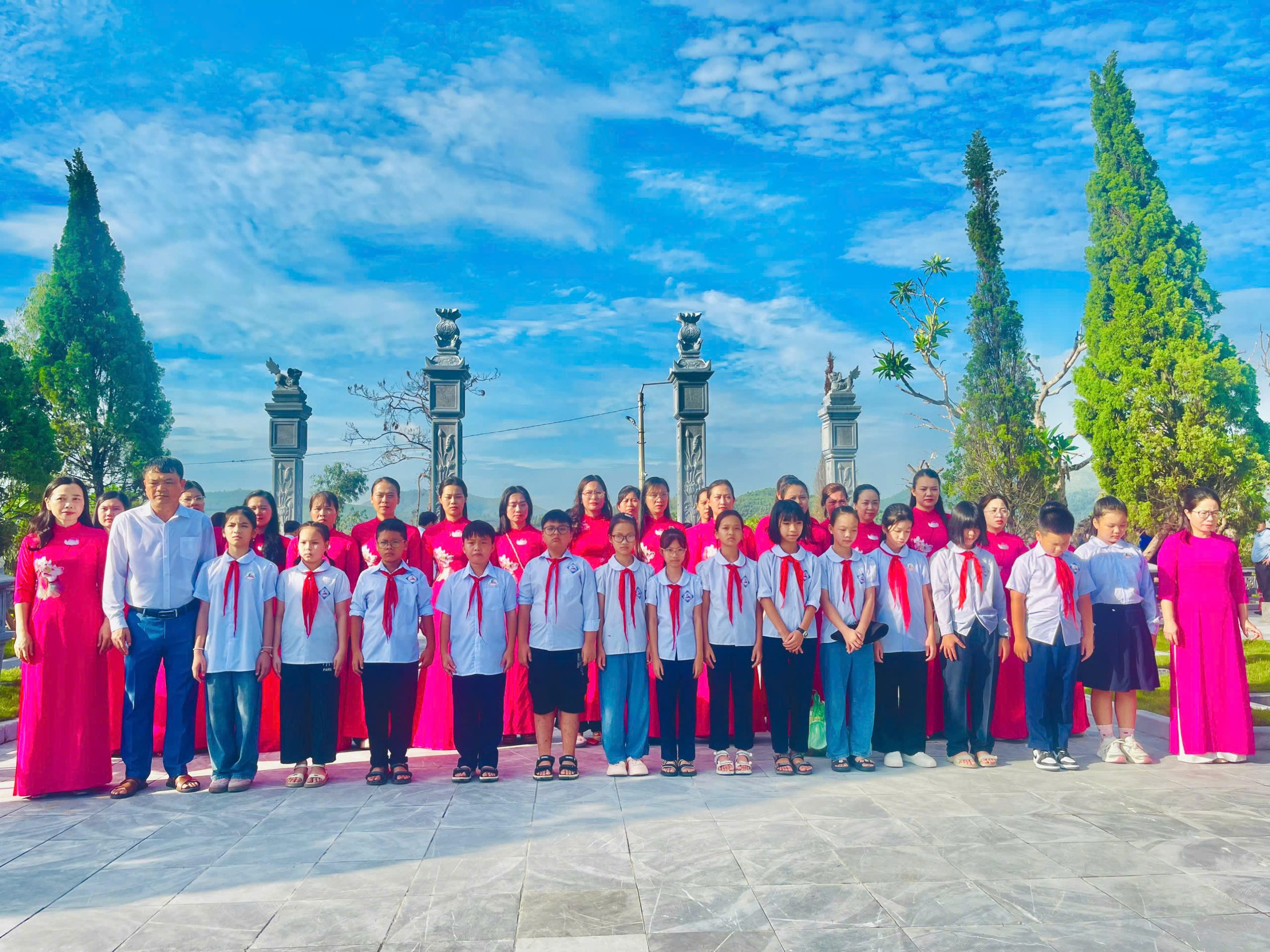 Buổi lễ có sự tham dự của thầy Phạm Ngọc Quang – Hiệu trưởng nhà trường, cùng toàn thể các thầy cô giáo và các em học sinh đại diện cho các lớp. Trong không khí trang nghiêm và thành kính, đoàn đã kính cẩn dâng những nén hương thơm, những đóa hoa tươi thắm để tưởng nhớ, tri ân công lao to lớn của các anh hùng liệt sĩ – những người con ưu tú đã anh dũng hy sinh vì độc lập, tự do của Tổ quốc.