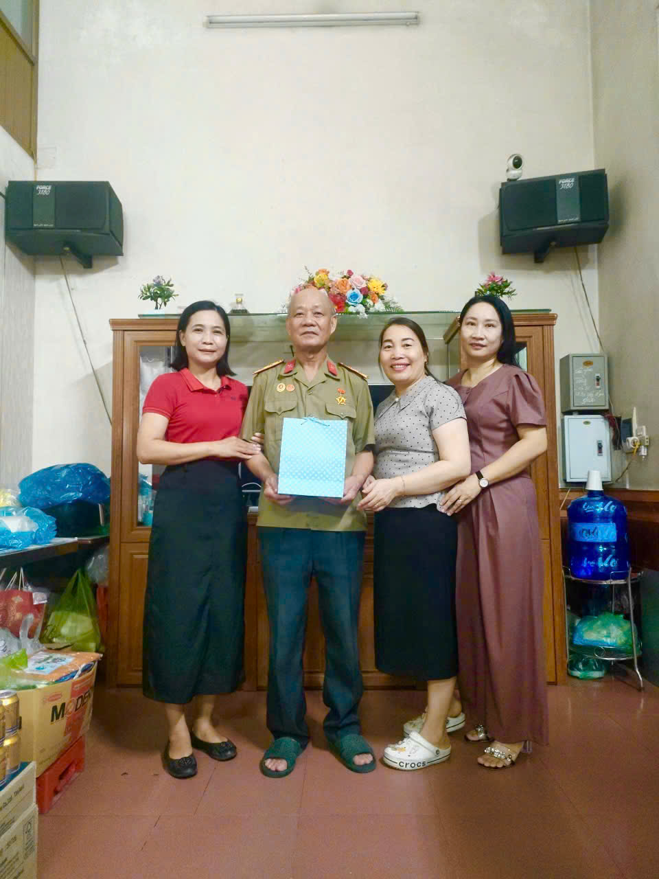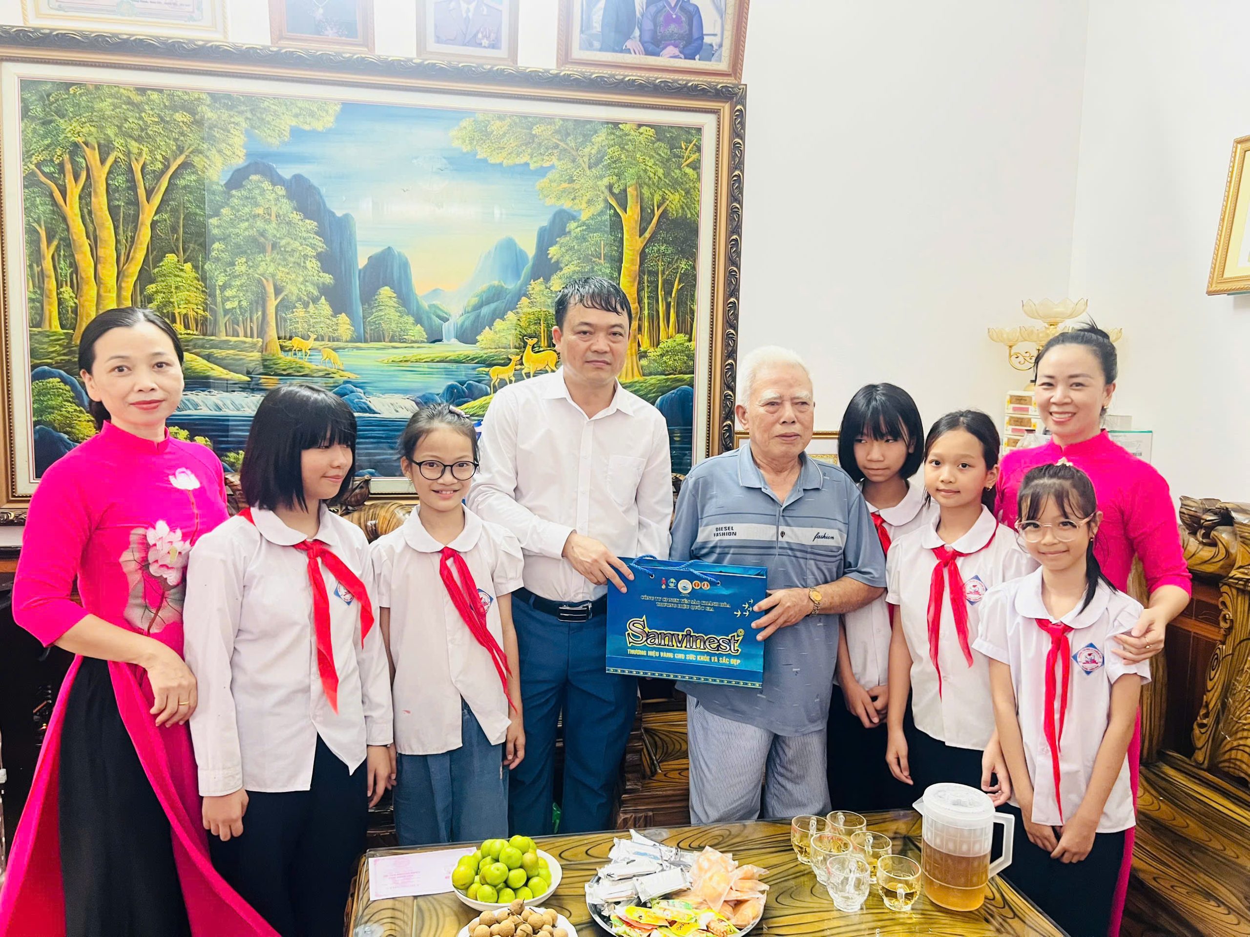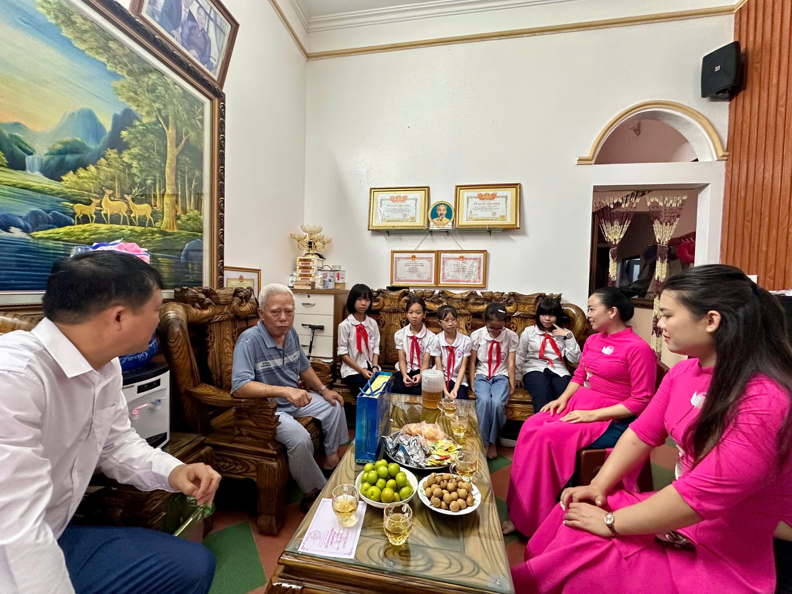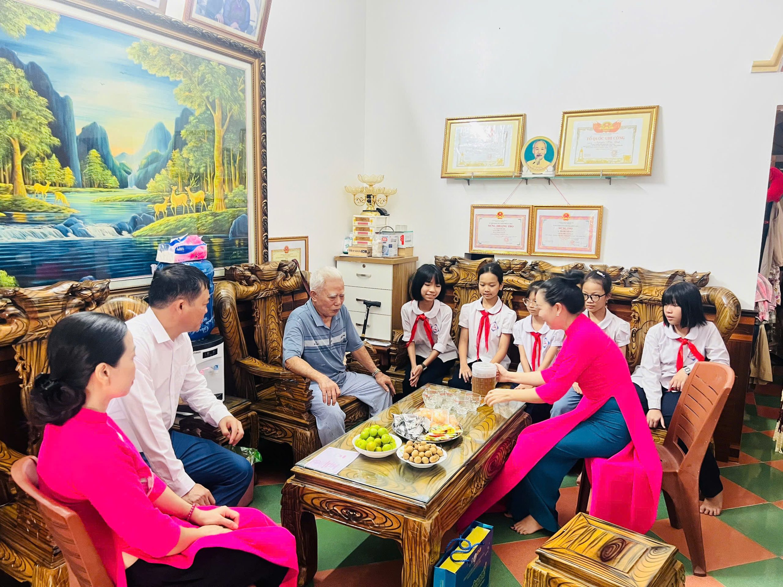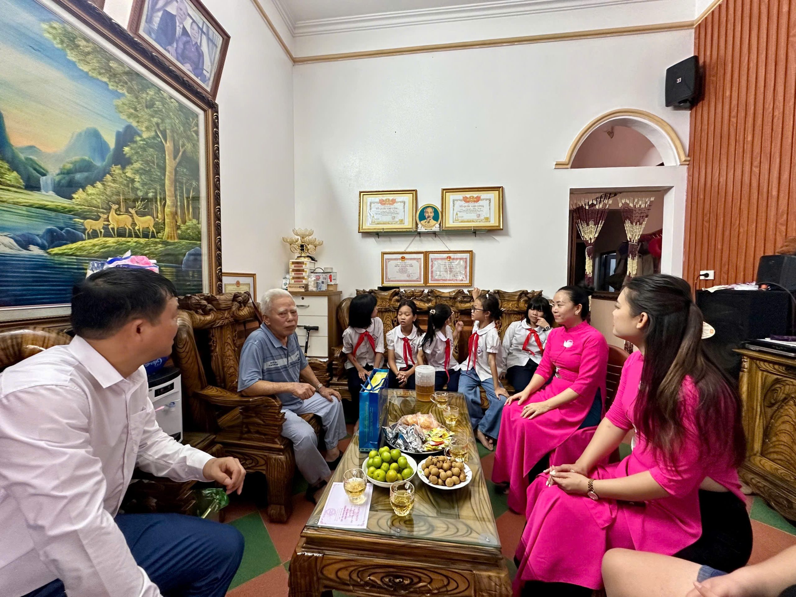 Cũng trong ngày 27/7, nhà trường đã tổ chức đoàn thăm hỏi và tri ân các gia đình giáo viên có bố mẹ là thương binh, bệnh binh. Dẫn đầu đoàn là thầy Hiệu trưởng Phạm Ngọc Quang, cùng toàn bộ giáo viên và các em học sinh.