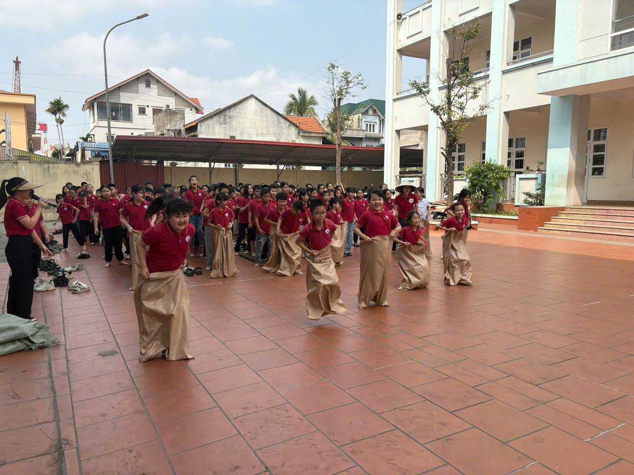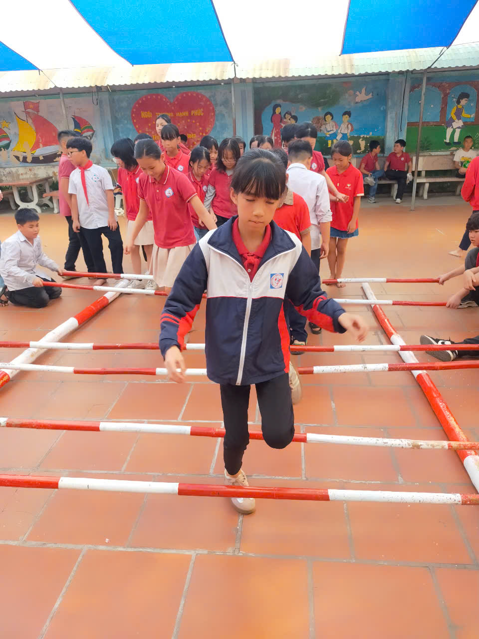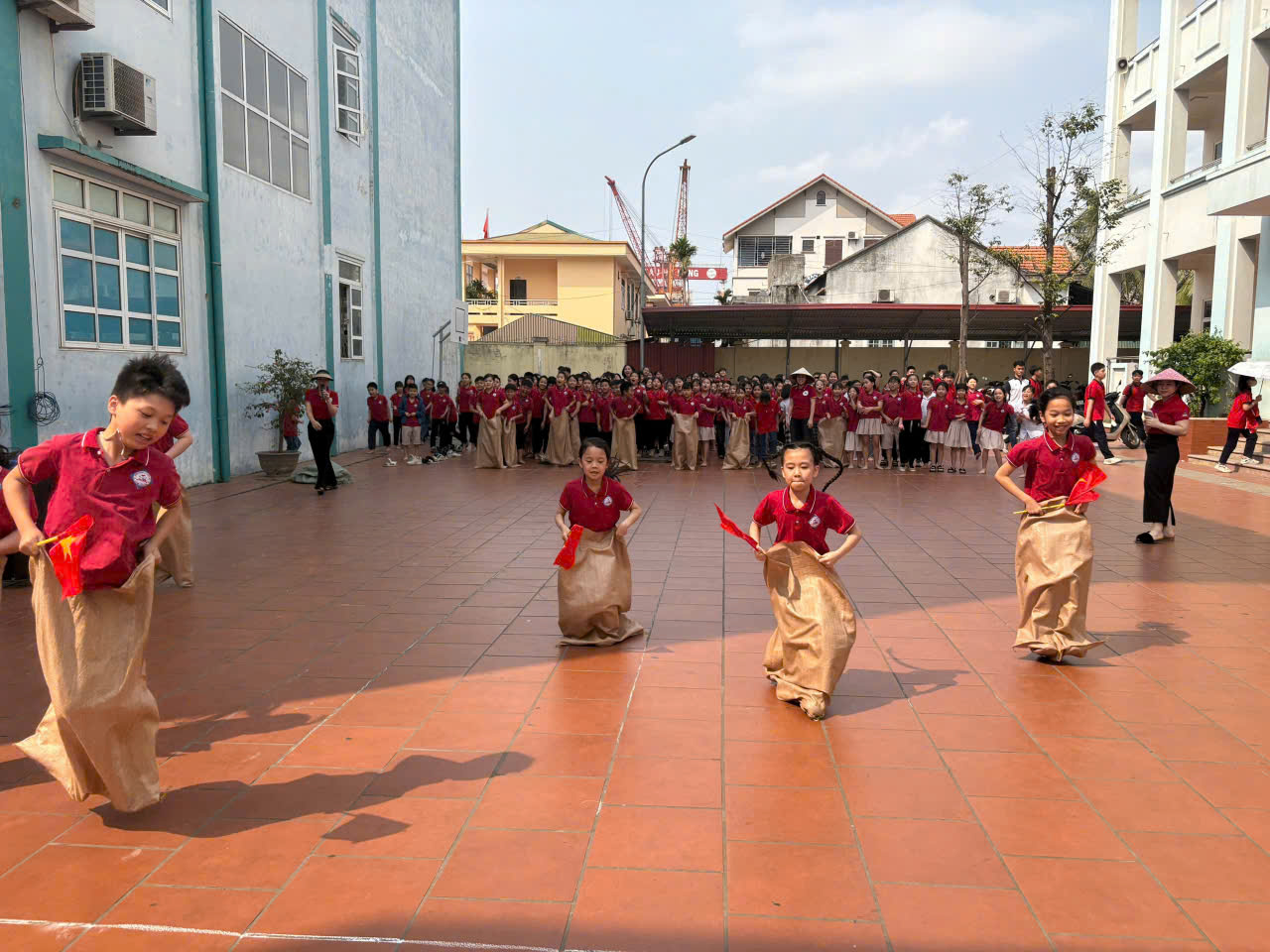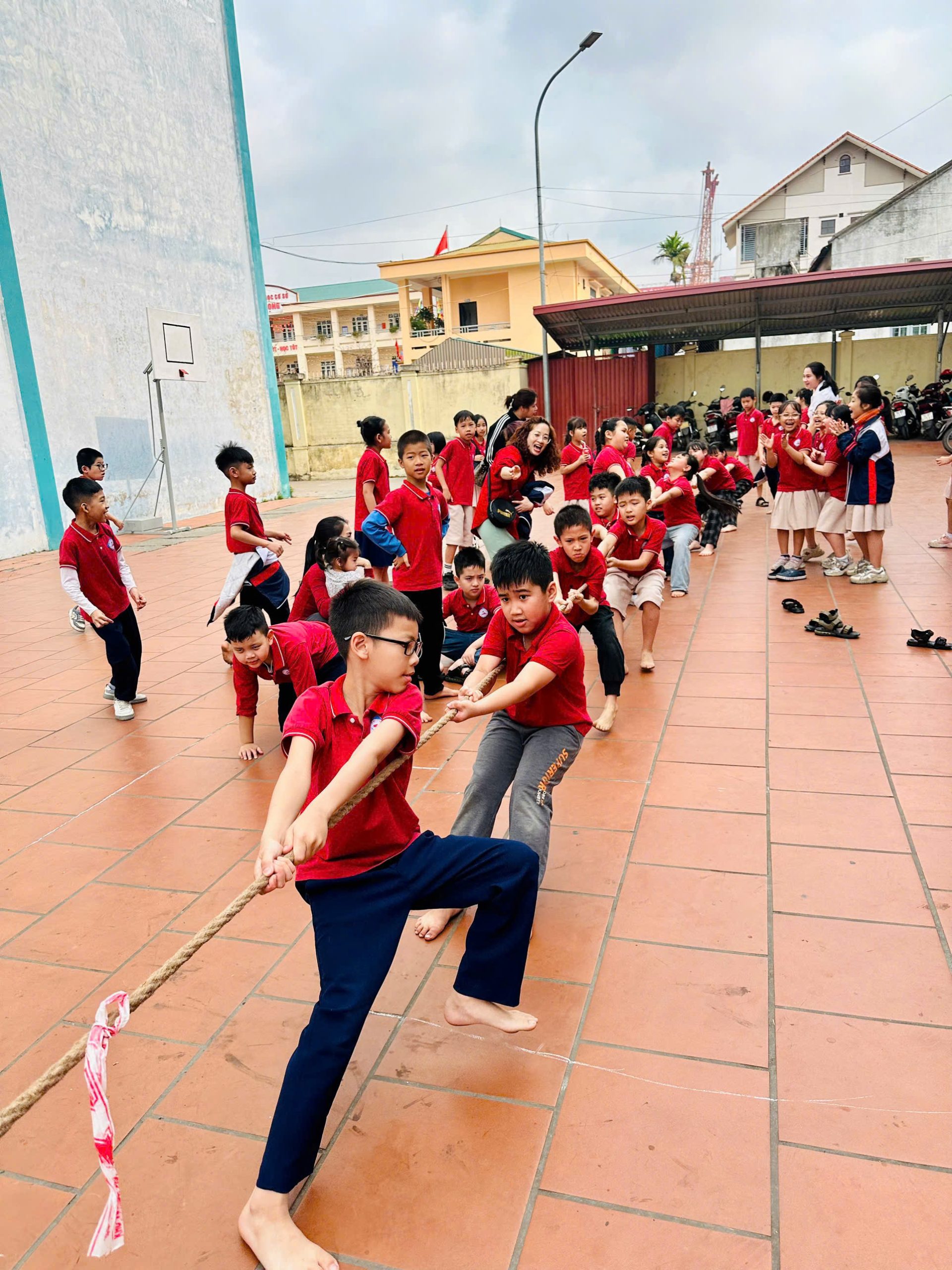 Ngay từ sáng sớm, sân trường đã rộn ràng sắc màu với những gian chơi được trang trí bắt mắt. Các trò chơi như ô ăn quan, kéo co, nhảy bao bố, bịt mắt bắt dê,… lần lượt diễn ra trong sự hào hứng của các em học sinh. Những tràng cười giòn giã, những tiếng reo hò cổ vũ vang lên không ngớt, làm bừng lên bầu không khí sôi động và ấm áp của ngày hội.