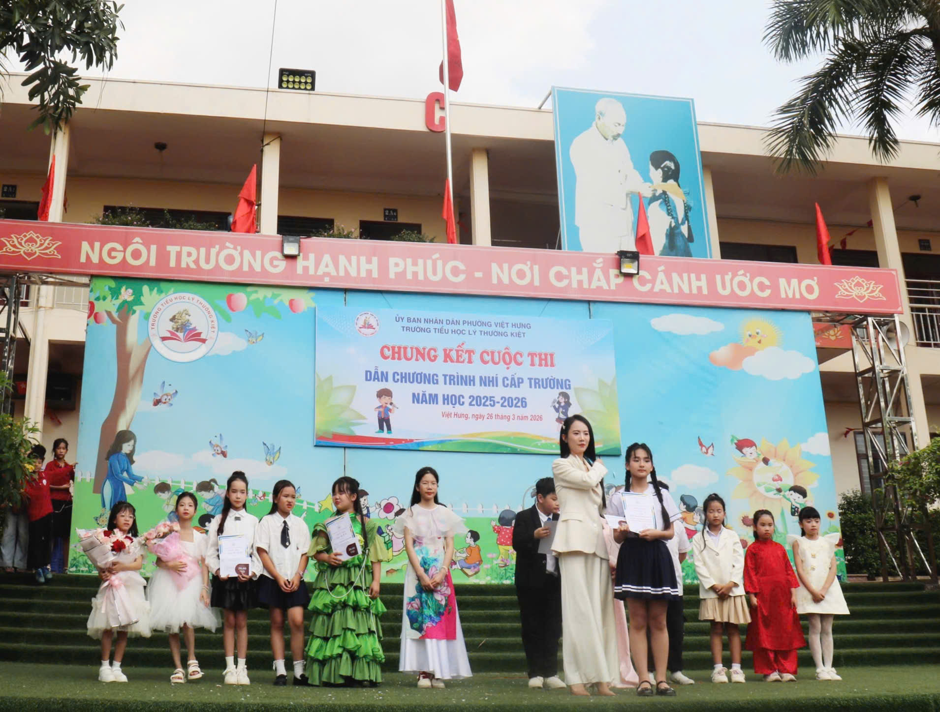 Sáng ngày 26/03/2026, Vòng Chung kết cuộc thi “Dẫn chương trình nhí” cấp trường năm học 2025 – 2026 của trường Tiểu học Lý Thường Kiệt đã diễn ra thành công rực rỡ. Sân chơi không chỉ là nơi các em rèn luyện sự tự tin, bản lĩnh sân khấu mà còn là bệ phóng cho những ước mơ được bay cao, bay xa.